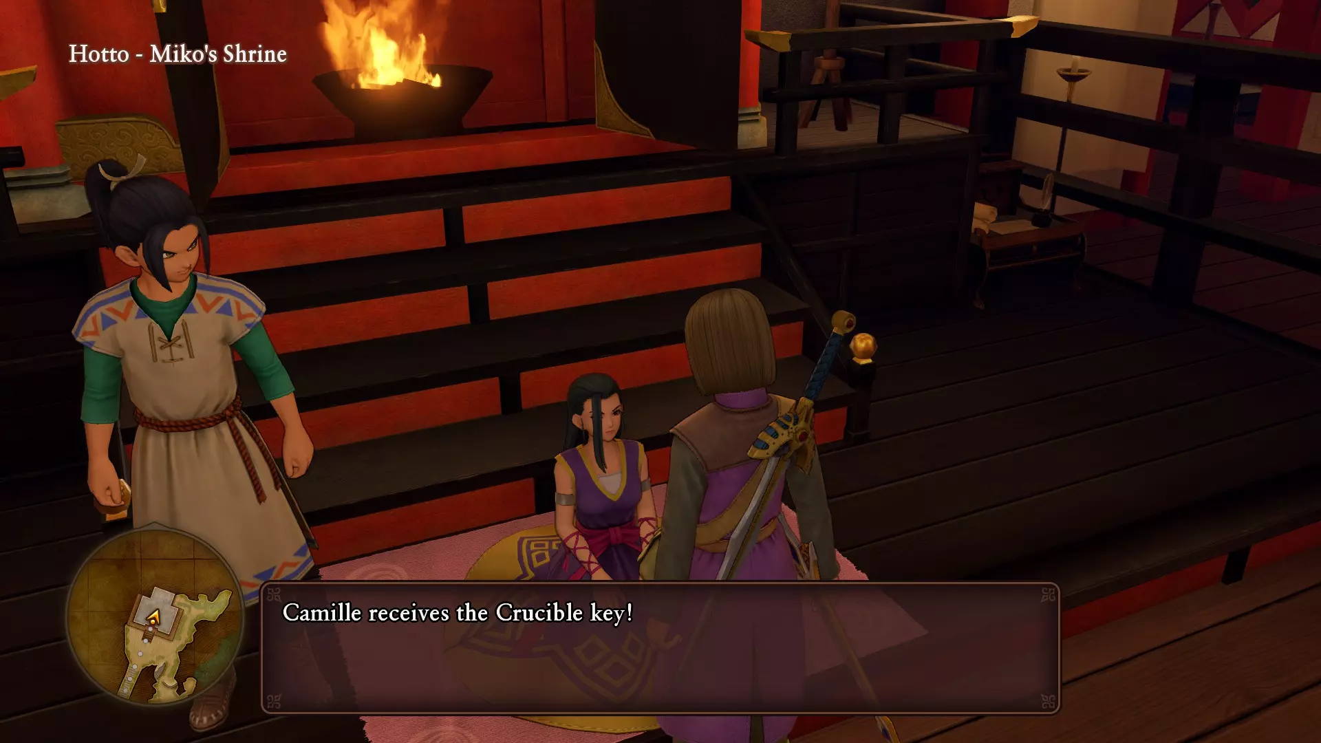 既然我们已经获得了 lumen essence,巫女就会给你熔炉钥匙,这是锻造光剑所必需的物品。