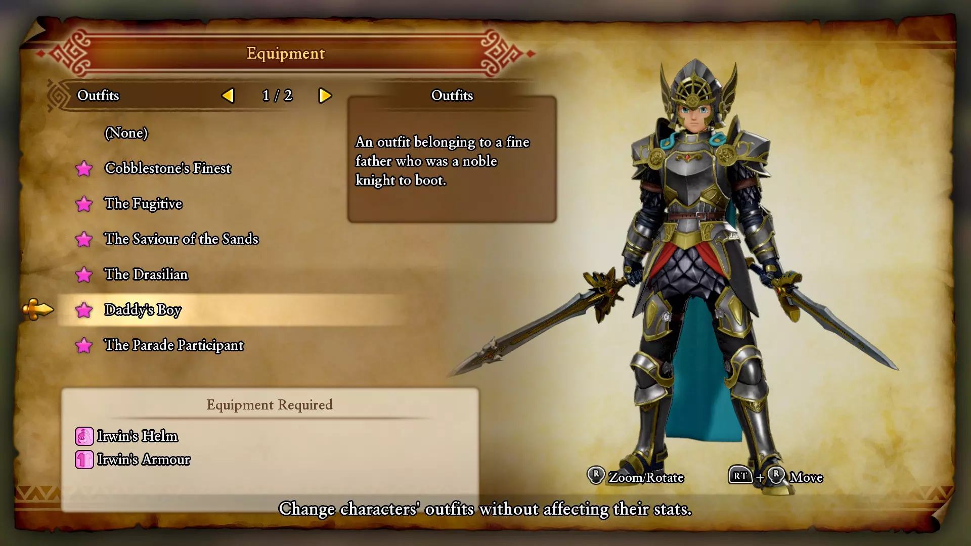 欧文的头盔与铠甲:通过完成 Dundrasil 遗迹的游戏后期事件获得。 The Parade Participant