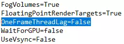 找到如下行: OneFrameThreadLag=True 将设置更改为: OneFrameThreadLag=False