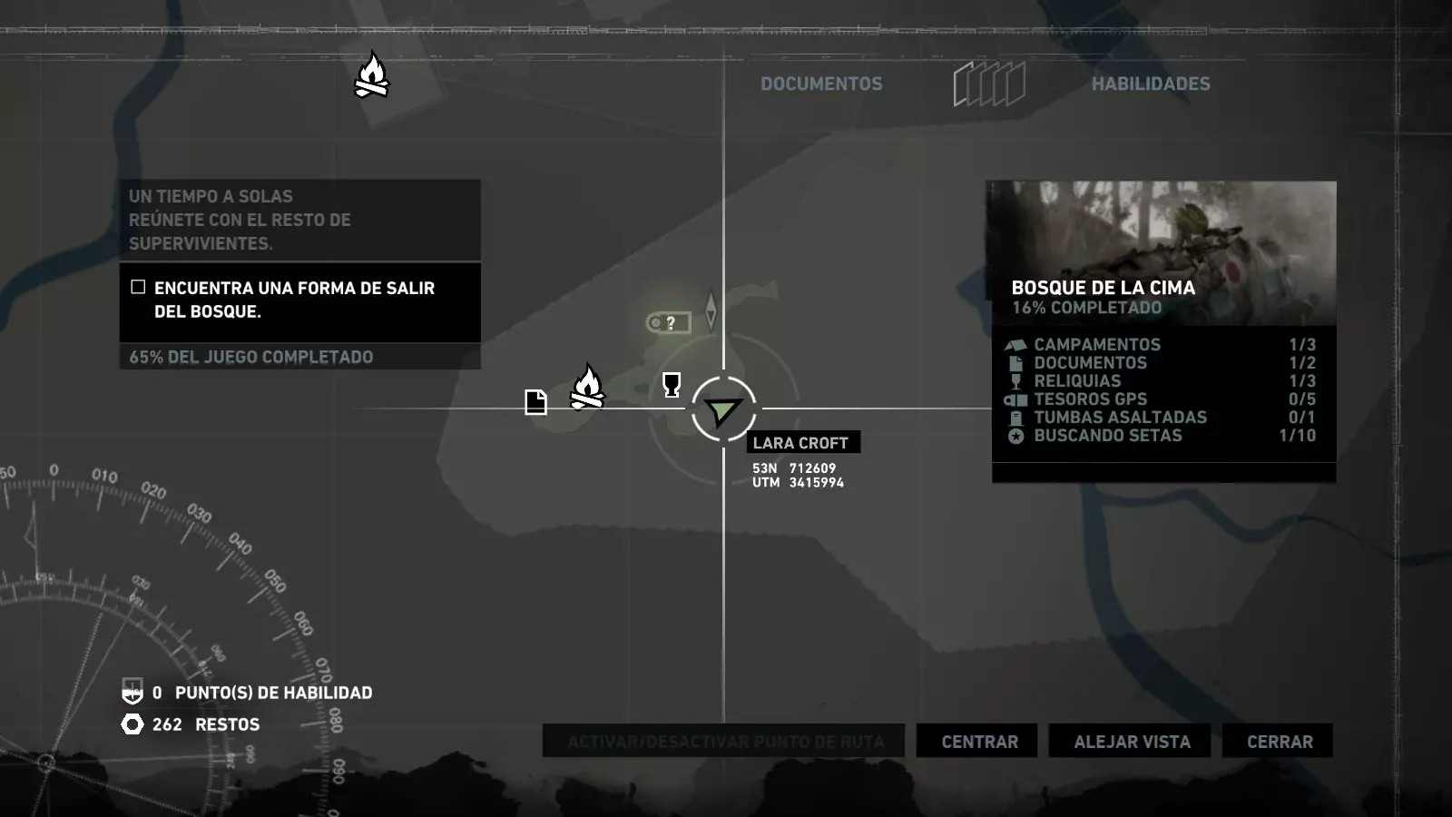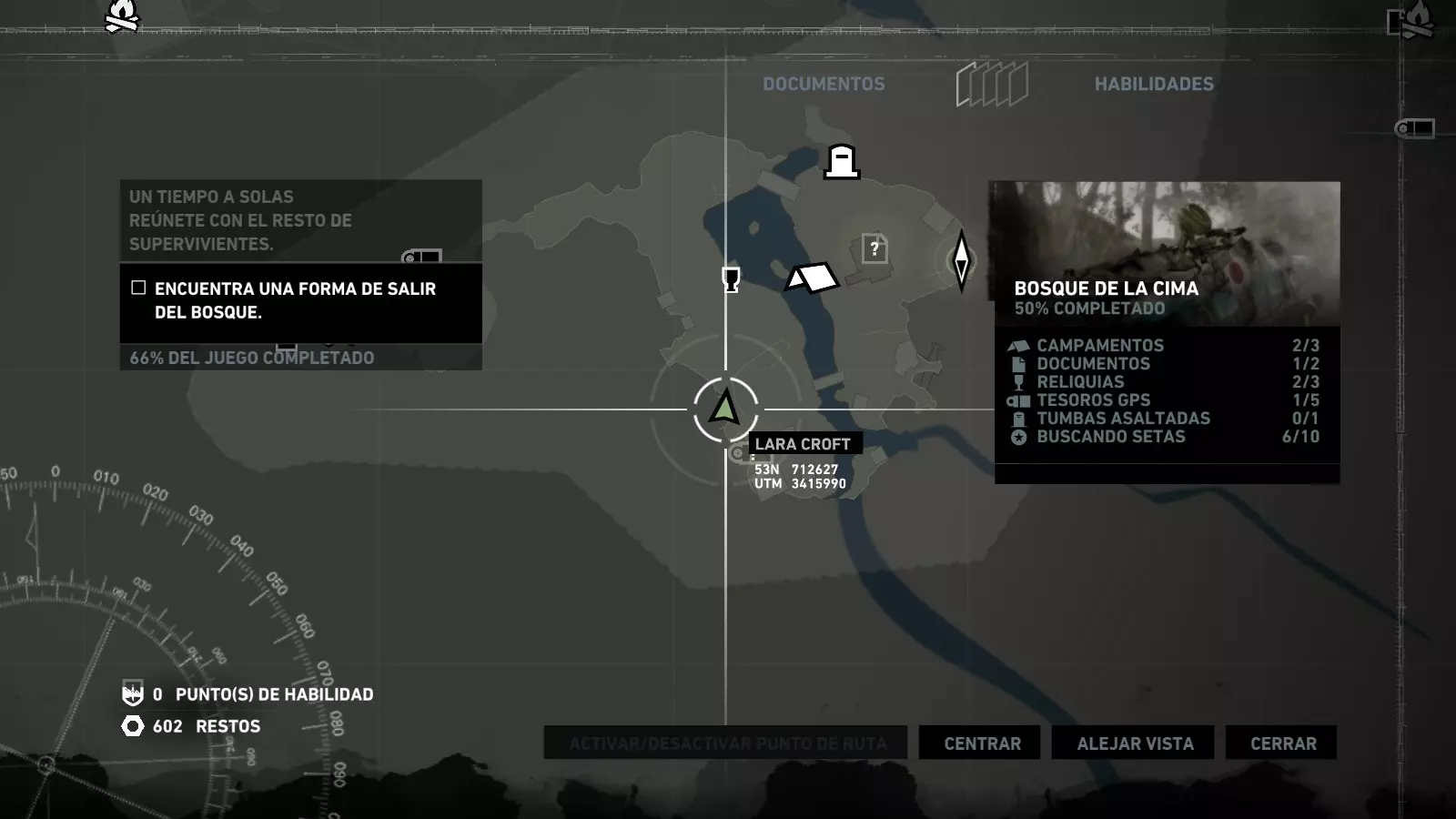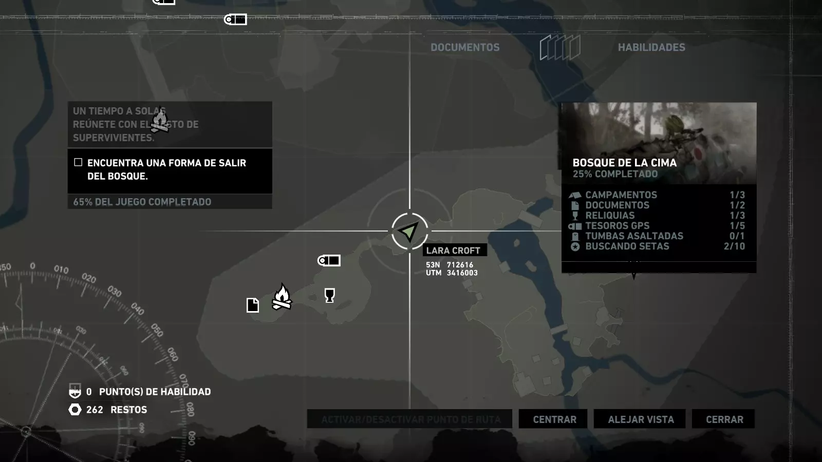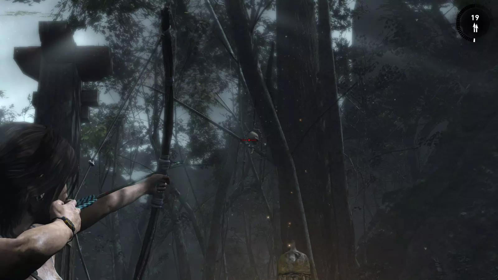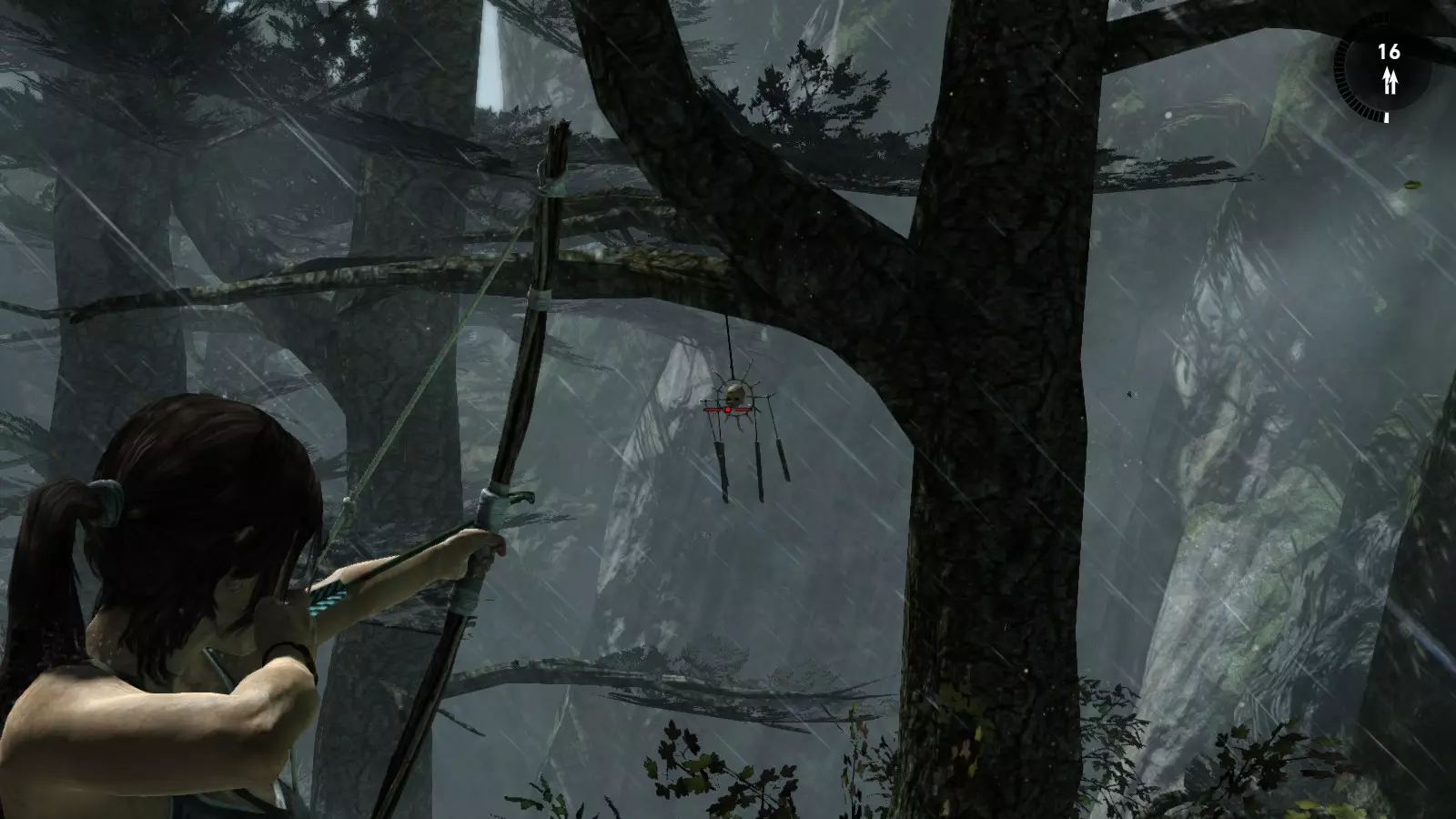 以下指南旨在帮助玩家轻松完成《古墓丽影》游戏中出现的各种挑战。每个挑战内容都配有地图图片以显示其位置,以及游戏内该位置的视角图,并附带文字说明如何到达该地点以及在游戏的哪个阶段进行。《古墓丽影》允许玩家随时返回之前的地点完成挑战,但本指南旨在让玩家在推进游戏进程的同时完成这些挑战。 简介 欢迎阅读我的《古墓丽影》挑战指南!本指南将指导你完成游戏中的各种挑战,帮助你找到或摧毁完成挑战所需的所有物品。 游戏中共有13个不同的挑战需要完成,包括收集蘑菇或鸡蛋、点燃雕像、摧毁海报或恐怖装饰品等。尽管游戏允许你在正常流程中未完成挑战时返回继续,但本指南旨在让你在游戏进程中直接达成100%完成度。因此,本指南将为岛屿的每个区域单独设立一个章节,说明需要完成的挑战以及它们的获取顺序;最后一个章节将按“时间顺序”整理各个元素,因为在某些情况下,由于我们没有必要的武器或工具,若不先经过其他区域,就无法完成某个区域的所有挑战。 每个元素将至少配有两张图片:其中一张是地图图片,根据劳拉·克劳馥的位置大致显示该元素所在的地点。在某些情况下,当挑战是收集或点燃附近的某个物品时,雷达的位置将指示离该物品最近的地方。在其他需要摧毁玩家位置远处物体的情况下,地图会通过绿色箭头显示劳拉的位置,而物体的位置则会用白色定位十字标记。 第二张图片会展示游戏中挑战所在位置的视角。需要说明的是,这两张图片是相关联的,也就是说,游戏内的视角与地图图片中显示的方向相对应。在某些情况下,如果相关物体难以看清,会有第三张图片,通过武器的缩放来更清晰地显示其位置。除了图片外,每个元素还会配有一段简短但清晰的说明,用于解释如何到达地图上指示的位置。 海岸森林 - 幽灵猎人 刚逃离食腐者巢穴,劳拉受伤又饥饿,她在森林中寻找避难所,同时继续追踪“坚忍号”同伴的踪迹。 在游戏的第一个区域,你的目标是找到并摧毁10个悬挂的图腾,这些图腾的中心有一个骷髅头。由于我们处于森林区域,且行动发生在暴风雨中或夜晚,有些图腾乍一看可能很难找到。 幽灵猎人1