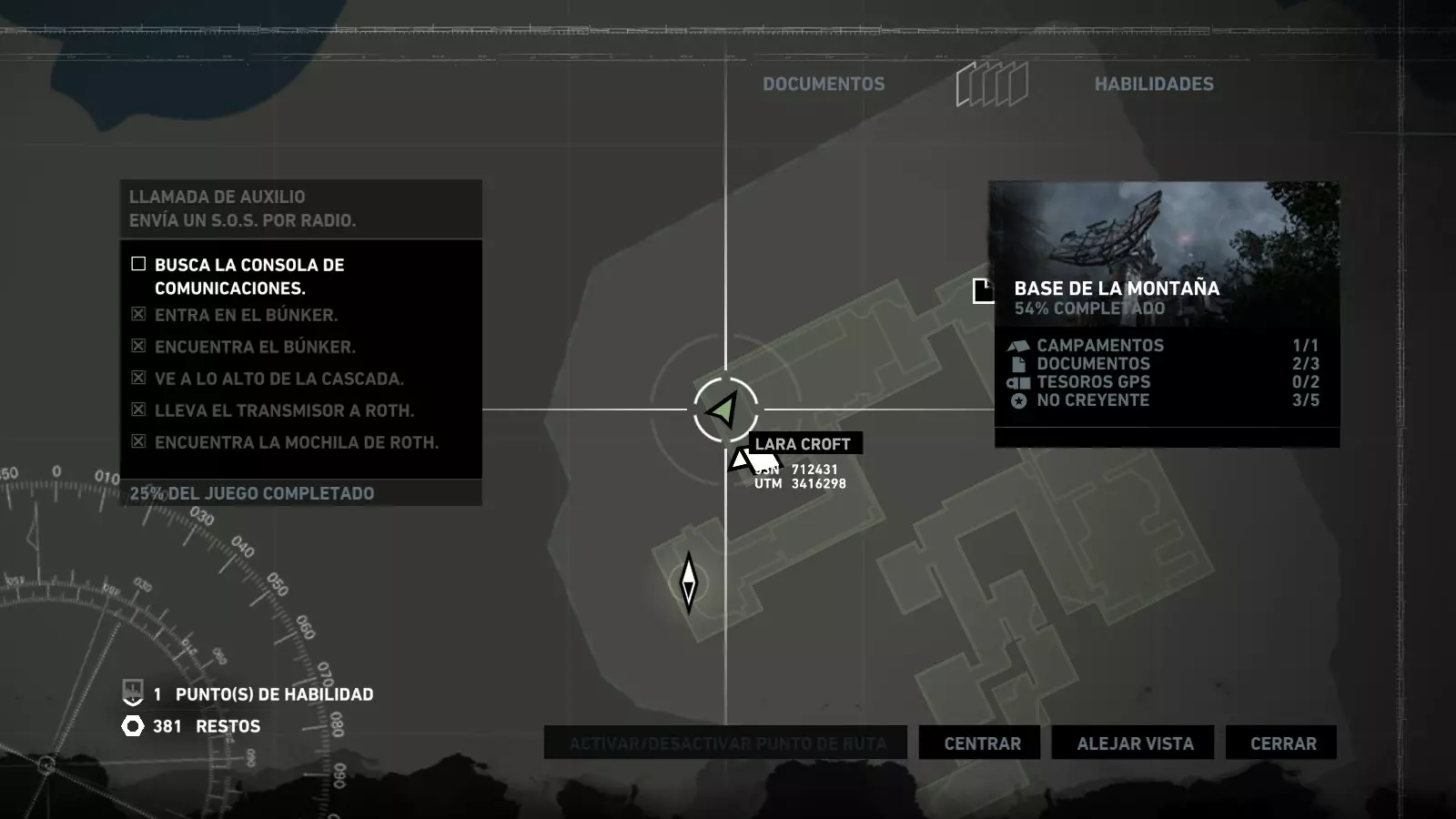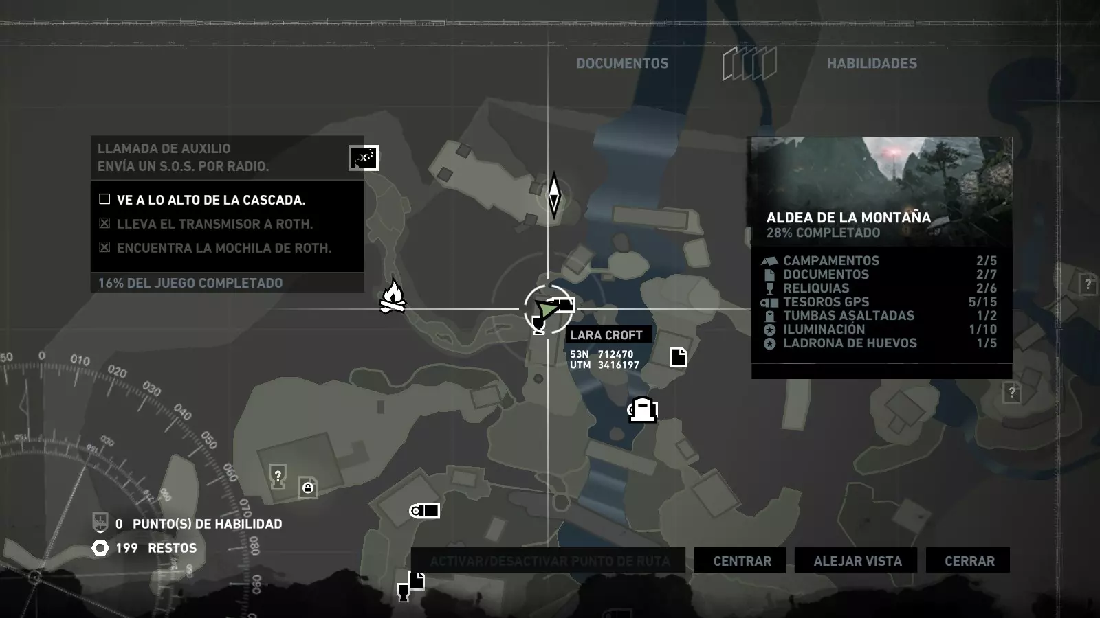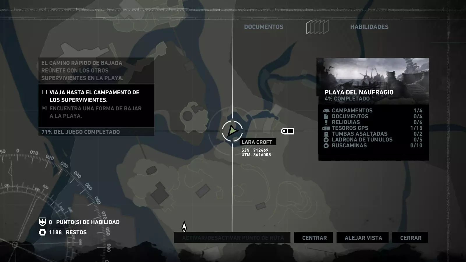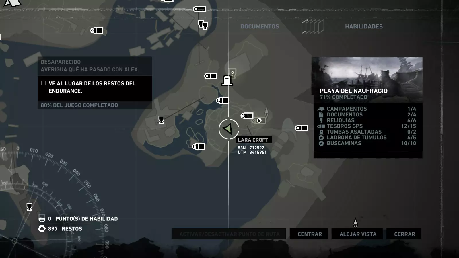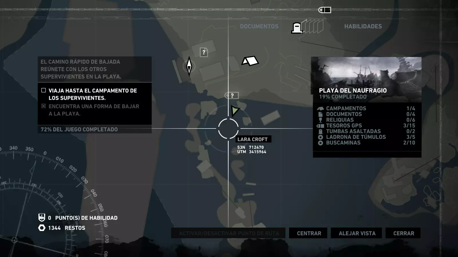 以下指南旨在帮助玩家轻松完成《古墓丽影》游戏中出现的各种挑战。每个挑战内容都配有地图图片以显示其位置,以及游戏内该位置的视角图,并附带文字说明如何到达该地点以及在游戏的哪个阶段进行。《古墓丽影》允许玩家随时返回之前的地点完成挑战,但本指南旨在让玩家在推进游戏进程的同时完成这些挑战。 简介 欢迎阅读我的《古墓丽影》挑战指南!本指南将指导你完成游戏中的各种挑战,帮助你找到或摧毁完成挑战所需的所有物品。 游戏中共有13个不同的挑战需要完成,包括收集蘑菇或鸡蛋、点燃雕像、摧毁海报或恐怖装饰品等。尽管游戏允许你在正常流程中未完成挑战时返回继续,但本指南旨在让你在游戏进程中直接达成100%完成度。因此,本指南将为岛屿的每个区域单独设立一个章节,说明需要完成的挑战以及它们的获取顺序;最后一个章节将按“时间顺序”整理各个元素,因为在某些情况下,由于我们没有必要的武器或工具,若不先经过其他区域,就无法完成某个区域的所有挑战。 每个元素将至少配有两张图片:其中一张是地图图片,根据劳拉·克劳馥的位置大致显示该元素所在的地点。在某些情况下,当挑战是收集或点燃附近的某个物品时,雷达的位置将指示离该物品最近的地方。在其他需要摧毁玩家位置远处物体的情况下,地图会通过绿色箭头显示劳拉的位置,而物体的位置则会用白色定位十字标记。 第二张图片会展示游戏中挑战所在位置的视角。需要说明的是,这两张图片是相关联的,也就是说,游戏内的视角与地图图片中显示的方向相对应。在某些情况下,如果相关物体难以看清,会有第三张图片,通过武器的缩放来更清晰地显示其位置。除了图片外,每个元素还会配有一段简短但清晰的说明,用于解释如何到达地图上指示的位置。 海岸森林 - 幽灵猎人 刚逃离食腐者巢穴,劳拉受伤又饥饿,她在森林中寻找避难所,同时继续追踪“坚忍号”同伴的踪迹。 在游戏的第一个区域,你的目标是找到并摧毁10个悬挂的图腾,这些图腾的中心有一个骷髅头。由于我们处于森林区域,且行动发生在暴风雨中或夜晚,有些图腾乍一看可能很难找到。 幽灵猎人1