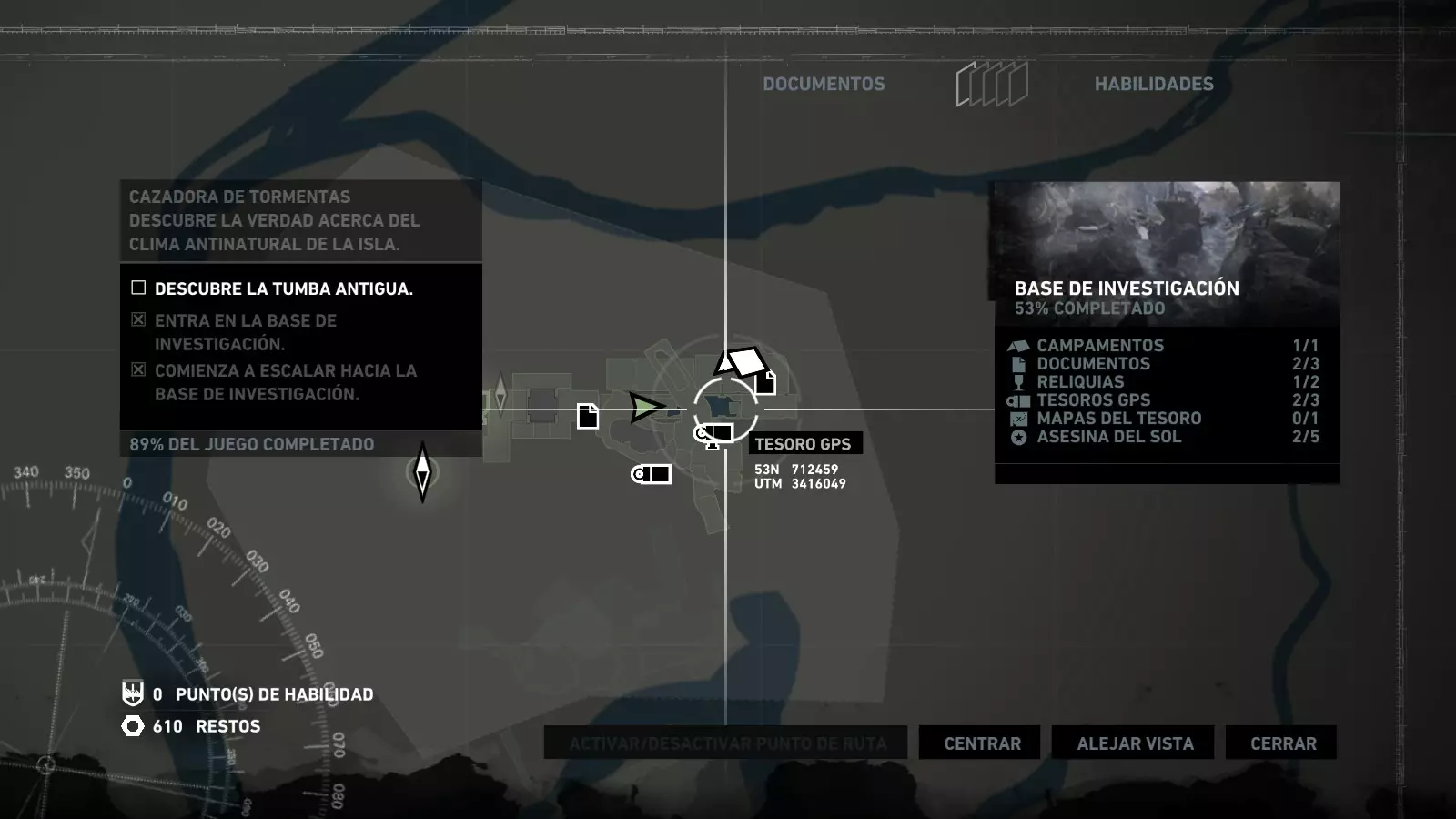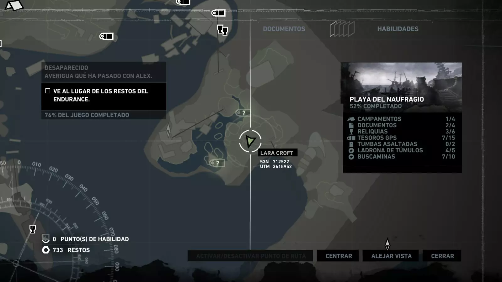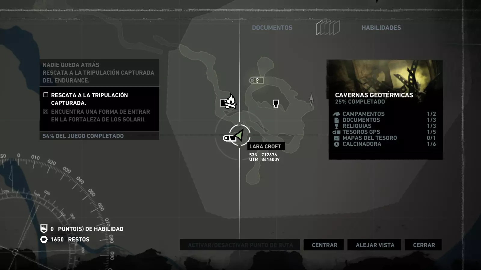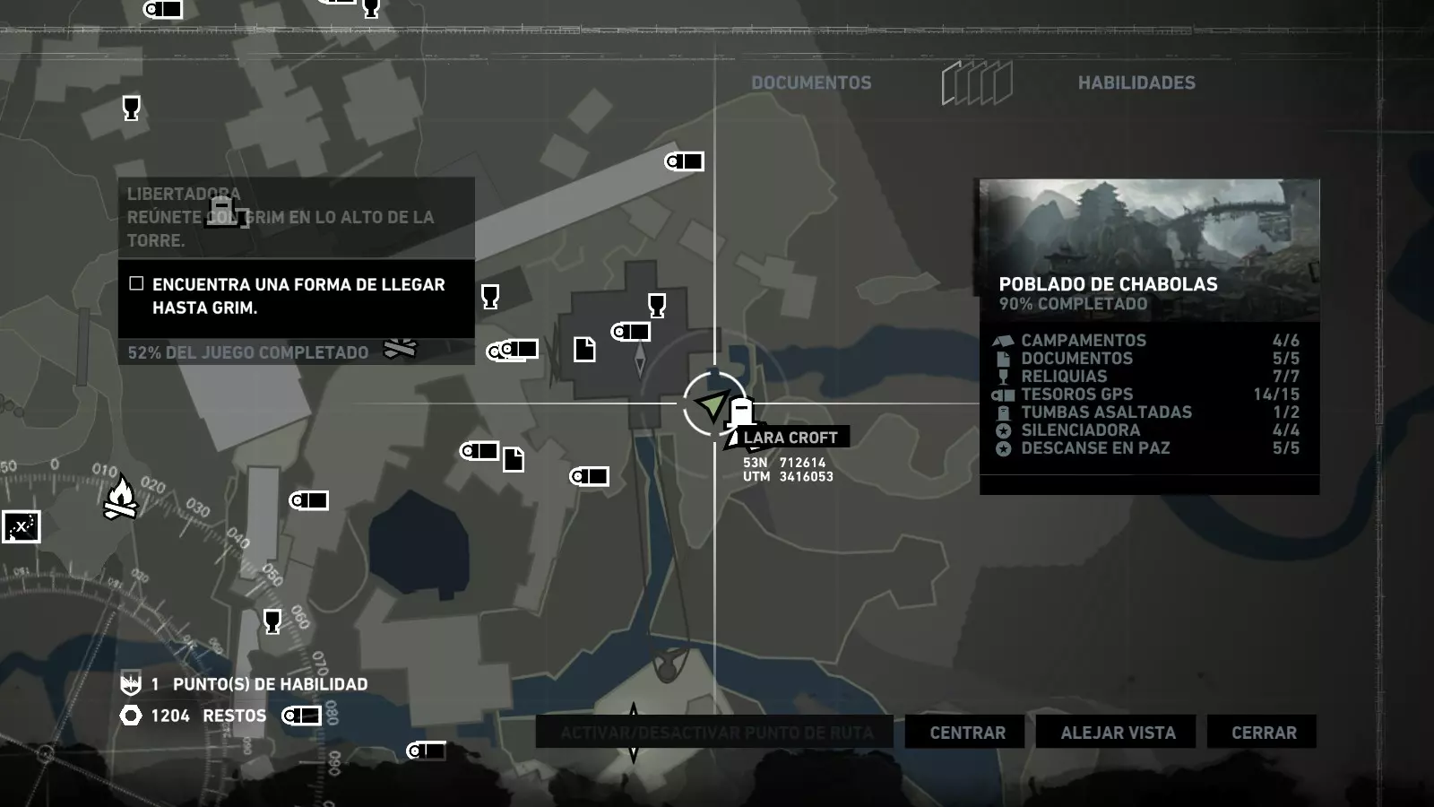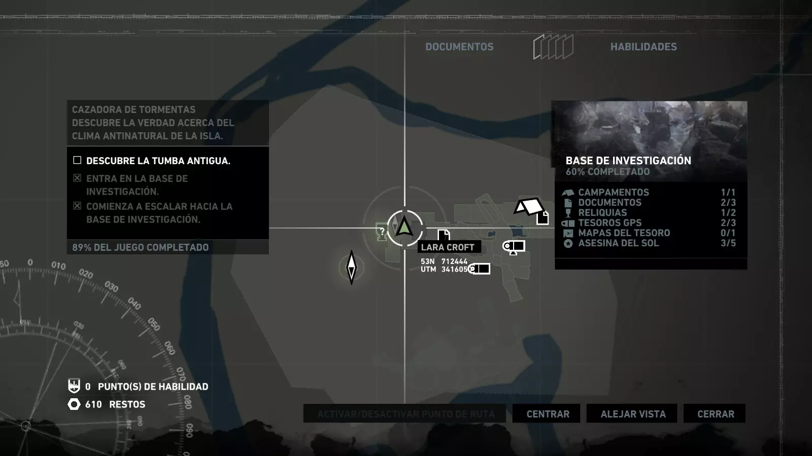 以下指南旨在帮助玩家轻松完成《古墓丽影》游戏中出现的各种挑战。每个挑战内容都配有地图图片以显示其位置,以及游戏内该位置的视角图,并附带文字说明如何到达该地点以及在游戏的哪个阶段进行。《古墓丽影》允许玩家随时返回之前的地点完成挑战,但本指南旨在让玩家在推进游戏进程的同时完成这些挑战。 简介 欢迎阅读我的《古墓丽影》挑战指南!本指南将指导你完成游戏中的各种挑战,帮助你找到或摧毁完成挑战所需的所有物品。 游戏中共有13个不同的挑战需要完成,包括收集蘑菇或鸡蛋、点燃雕像、摧毁海报或恐怖装饰品等。尽管游戏允许你在正常流程中未完成挑战时返回继续,但本指南旨在让你在游戏进程中直接达成100%完成度。因此,本指南将为岛屿的每个区域单独设立一个章节,说明需要完成的挑战以及它们的获取顺序;最后一个章节将按“时间顺序”整理各个元素,因为在某些情况下,由于我们没有必要的武器或工具,若不先经过其他区域,就无法完成某个区域的所有挑战。 每个元素将至少配有两张图片:其中一张是地图图片,根据劳拉·克劳馥的位置大致显示该元素所在的地点。在某些情况下,当挑战是收集或点燃附近的某个物品时,雷达的位置将指示离该物品最近的地方。在其他需要摧毁玩家位置远处物体的情况下,地图会通过绿色箭头显示劳拉的位置,而物体的位置则会用白色定位十字标记。 第二张图片会展示游戏中挑战所在位置的视角。需要说明的是,这两张图片是相关联的,也就是说,游戏内的视角与地图图片中显示的方向相对应。在某些情况下,如果相关物体难以看清,会有第三张图片,通过武器的缩放来更清晰地显示其位置。除了图片外,每个元素还会配有一段简短但清晰的说明,用于解释如何到达地图上指示的位置。 海岸森林 - 幽灵猎人 刚逃离食腐者巢穴,劳拉受伤又饥饿,她在森林中寻找避难所,同时继续追踪“坚忍号”同伴的踪迹。 在游戏的第一个区域,你的目标是找到并摧毁10个悬挂的图腾,这些图腾的中心有一个骷髅头。由于我们处于森林区域,且行动发生在暴风雨中或夜晚,有些图腾乍一看可能很难找到。 幽灵猎人1