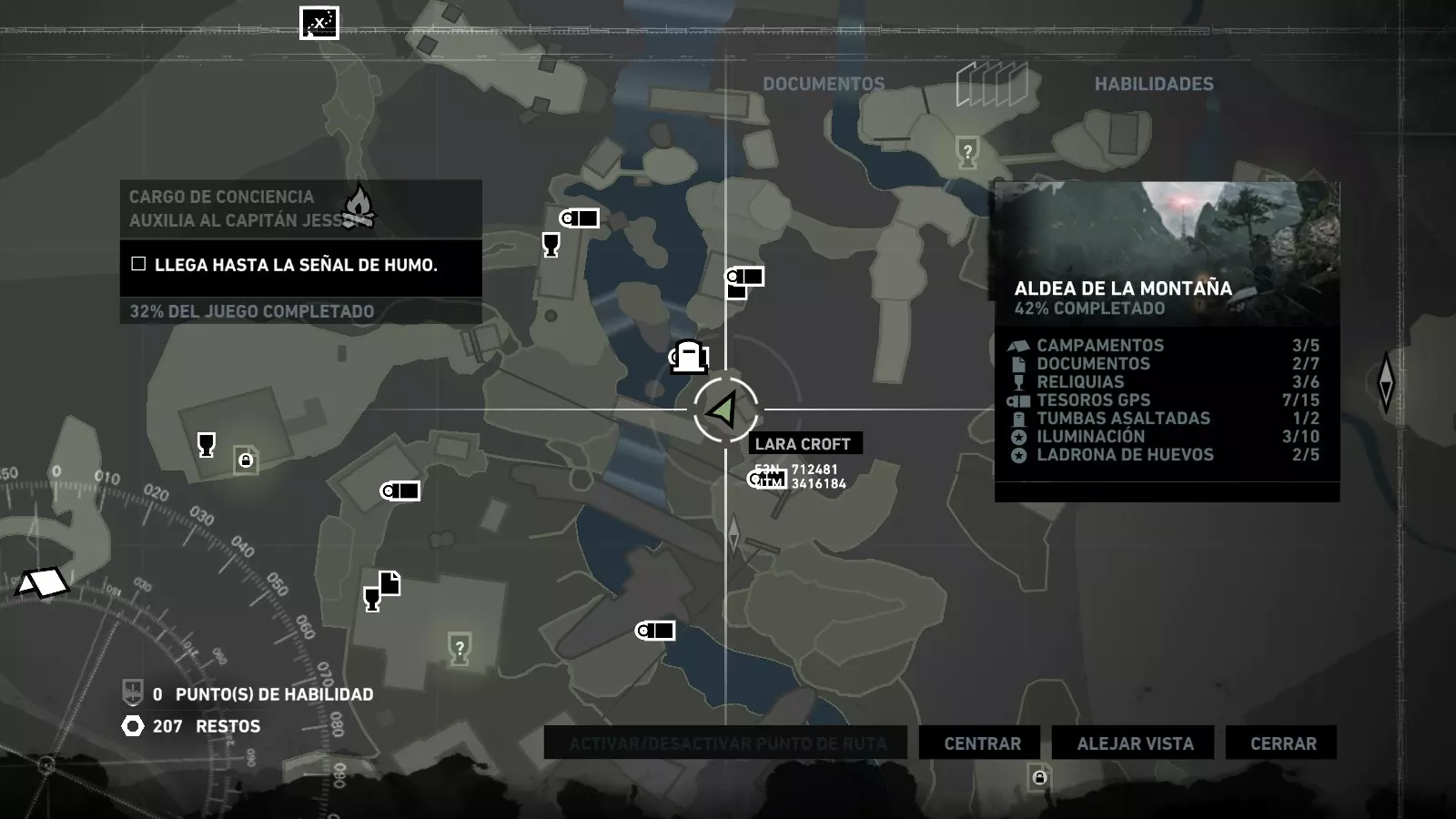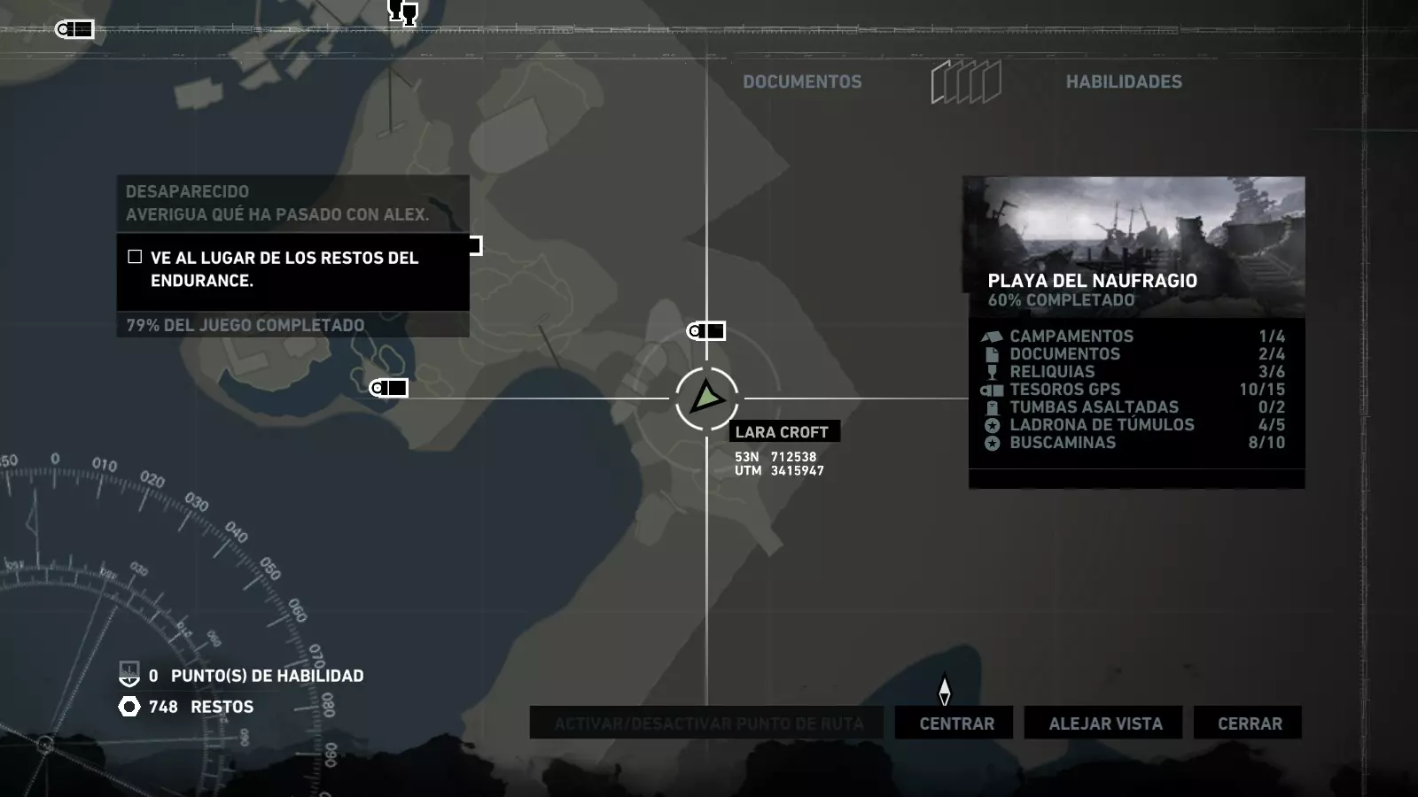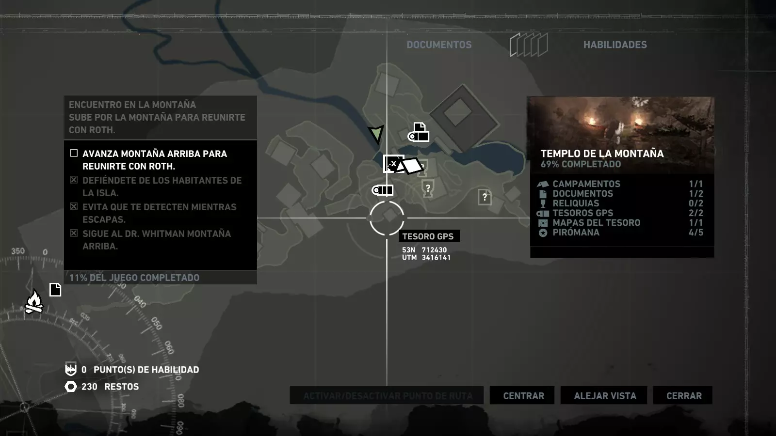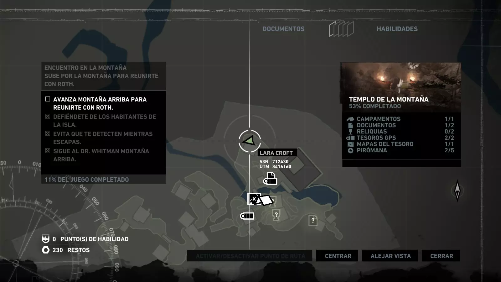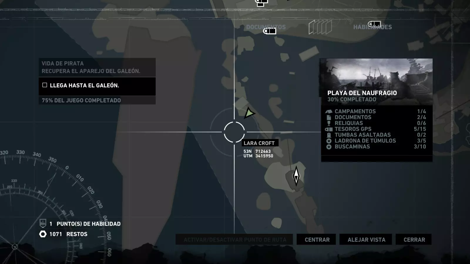 以下指南旨在帮助玩家轻松完成《古墓丽影》游戏中出现的各种挑战。每个挑战内容都配有地图图片以显示其位置,以及游戏内该位置的视角图,并附带文字说明如何到达该地点以及在游戏的哪个阶段进行。《古墓丽影》允许玩家随时返回之前的地点完成挑战,但本指南旨在让玩家在推进游戏进程的同时完成这些挑战。 简介 欢迎阅读我的《古墓丽影》挑战指南!本指南将指导你完成游戏中的各种挑战,帮助你找到或摧毁完成挑战所需的所有物品。 游戏中共有13个不同的挑战需要完成,包括收集蘑菇或鸡蛋、点燃雕像、摧毁海报或恐怖装饰品等。尽管游戏允许你在正常流程中未完成挑战时返回继续,但本指南旨在让你在游戏进程中直接达成100%完成度。因此,本指南将为岛屿的每个区域单独设立一个章节,说明需要完成的挑战以及它们的获取顺序;最后一个章节将按“时间顺序”整理各个元素,因为在某些情况下,由于我们没有必要的武器或工具,若不先经过其他区域,就无法完成某个区域的所有挑战。 每个元素将至少配有两张图片:其中一张是地图图片,根据劳拉·克劳馥的位置大致显示该元素所在的地点。在某些情况下,当挑战是收集或点燃附近的某个物品时,雷达的位置将指示离该物品最近的地方。在其他需要摧毁玩家位置远处物体的情况下,地图会通过绿色箭头显示劳拉的位置,而物体的位置则会用白色定位十字标记。 第二张图片会展示游戏中挑战所在位置的视角。需要说明的是,这两张图片是相关联的,也就是说,游戏内的视角与地图图片中显示的方向相对应。在某些情况下,如果相关物体难以看清,会有第三张图片,通过武器的缩放来更清晰地显示其位置。除了图片外,每个元素还会配有一段简短但清晰的说明,用于解释如何到达地图上指示的位置。 海岸森林 - 幽灵猎人 刚逃离食腐者巢穴,劳拉受伤又饥饿,她在森林中寻找避难所,同时继续追踪“坚忍号”同伴的踪迹。 在游戏的第一个区域,你的目标是找到并摧毁10个悬挂的图腾,这些图腾的中心有一个骷髅头。由于我们处于森林区域,且行动发生在暴风雨中或夜晚,有些图腾乍一看可能很难找到。 幽灵猎人1