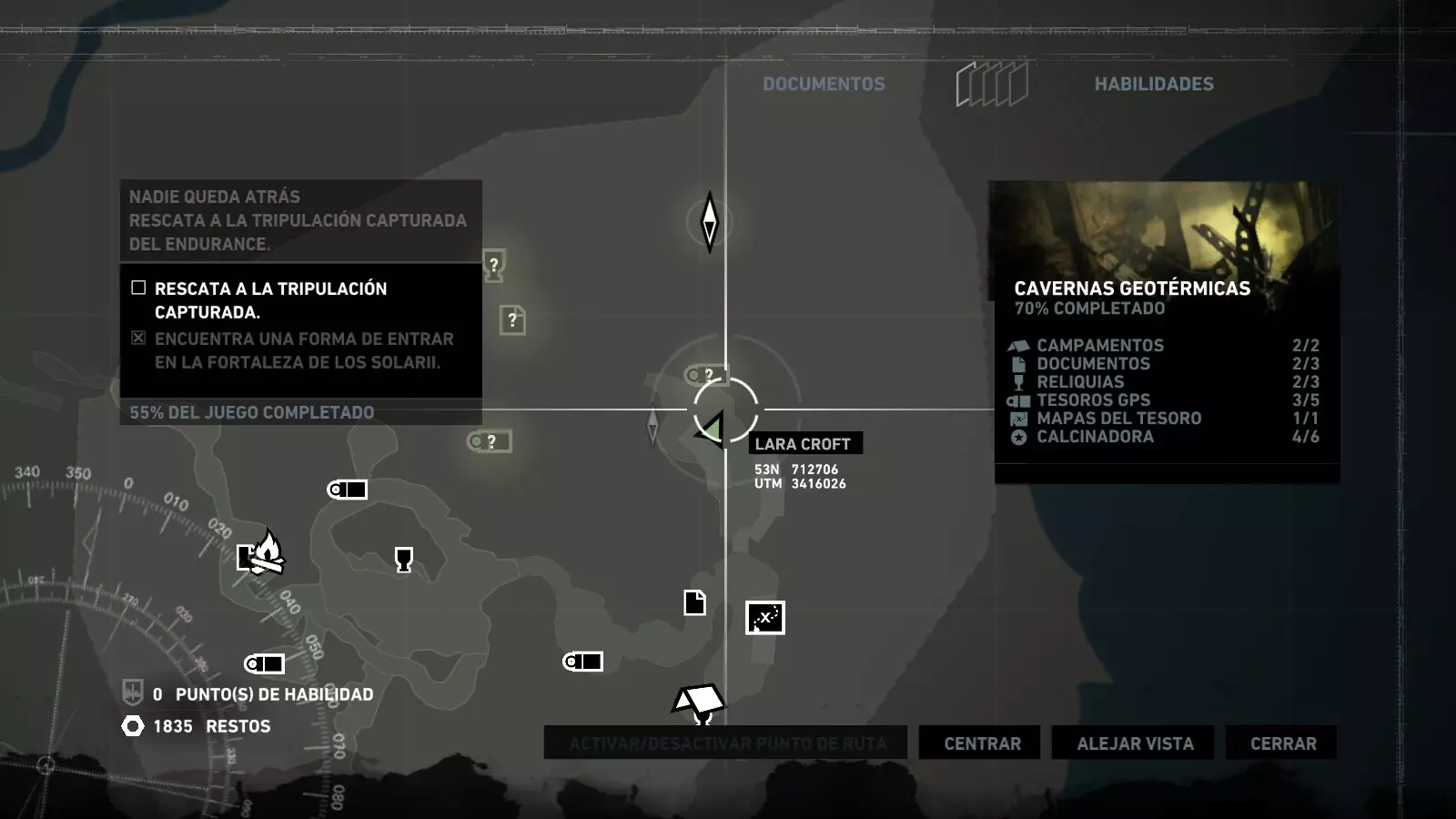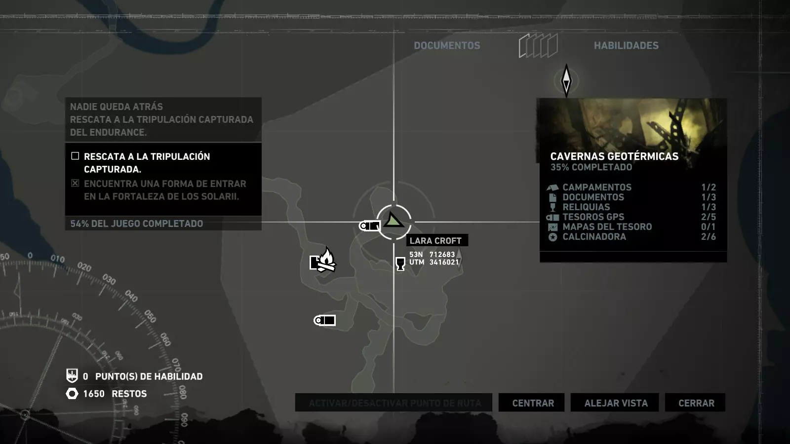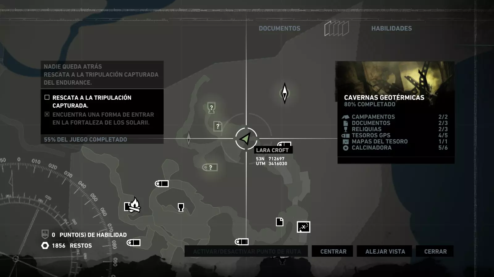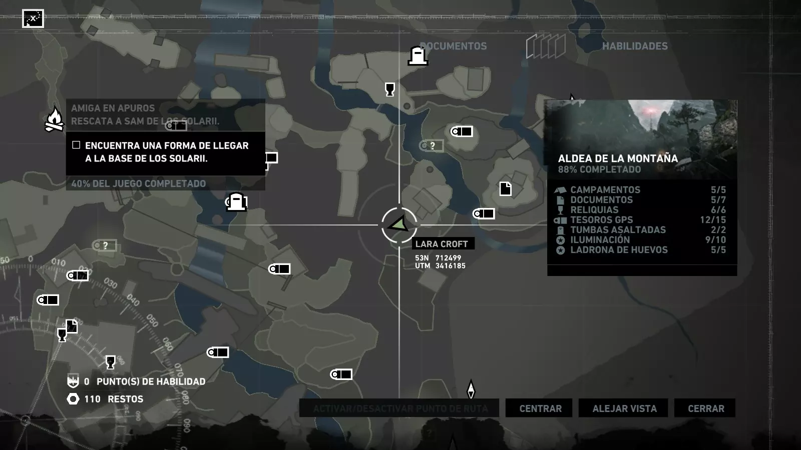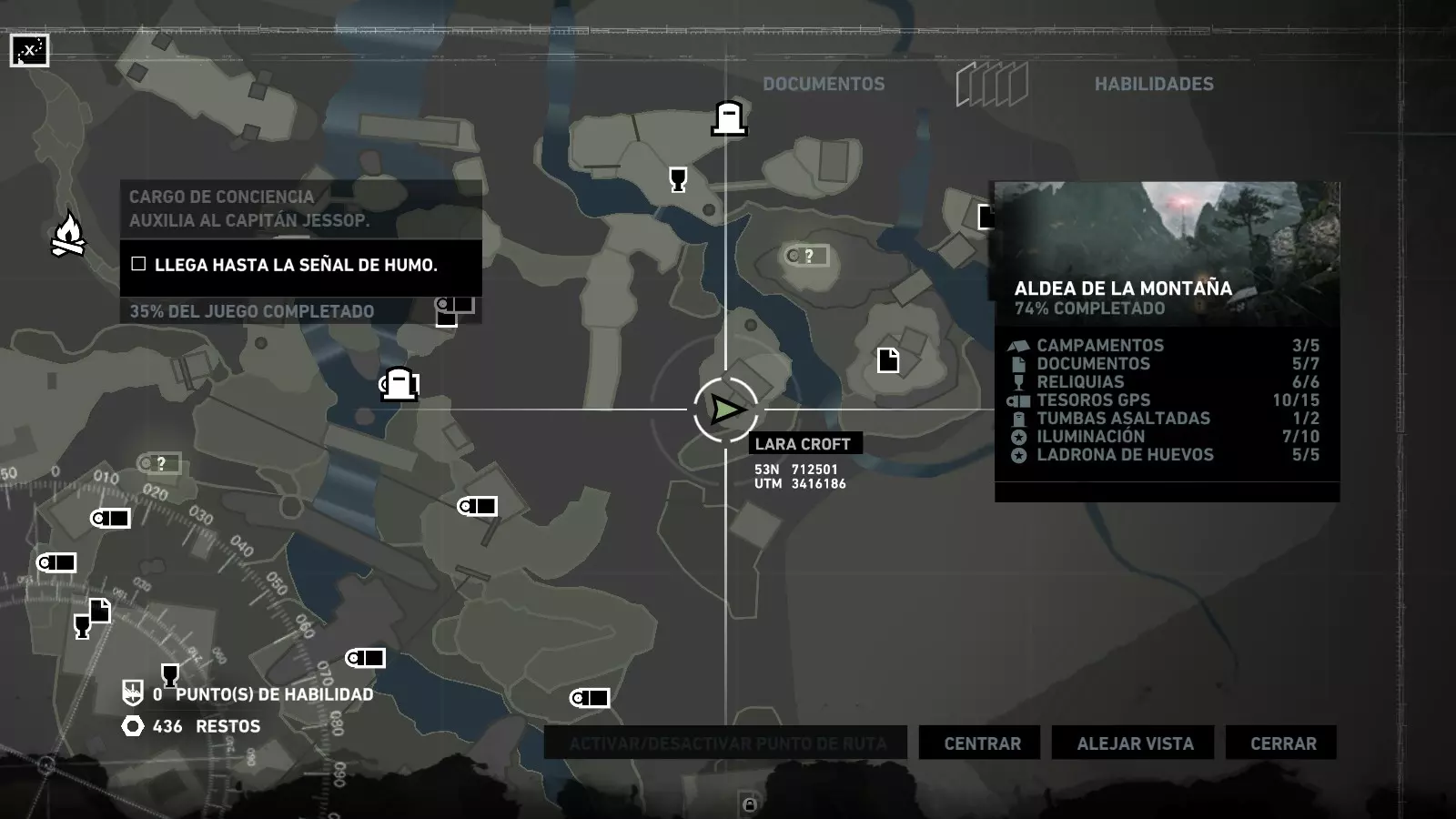 以下指南旨在帮助玩家轻松完成《古墓丽影》游戏中出现的各种挑战。每个挑战内容都配有地图图片以显示其位置,以及游戏内该位置的视角图,并附带文字说明如何到达该地点以及在游戏的哪个阶段进行。《古墓丽影》允许玩家随时返回之前的地点完成挑战,但本指南旨在让玩家在推进游戏进程的同时完成这些挑战。 简介 欢迎阅读我的《古墓丽影》挑战指南!本指南将指导你完成游戏中的各种挑战,帮助你找到或摧毁完成挑战所需的所有物品。 游戏中共有13个不同的挑战需要完成,包括收集蘑菇或鸡蛋、点燃雕像、摧毁海报或恐怖装饰品等。尽管游戏允许你在正常流程中未完成挑战时返回继续,但本指南旨在让你在游戏进程中直接达成100%完成度。因此,本指南将为岛屿的每个区域单独设立一个章节,说明需要完成的挑战以及它们的获取顺序;最后一个章节将按“时间顺序”整理各个元素,因为在某些情况下,由于我们没有必要的武器或工具,若不先经过其他区域,就无法完成某个区域的所有挑战。 每个元素将至少配有两张图片:其中一张是地图图片,根据劳拉·克劳馥的位置大致显示该元素所在的地点。在某些情况下,当挑战是收集或点燃附近的某个物品时,雷达的位置将指示离该物品最近的地方。在其他需要摧毁玩家位置远处物体的情况下,地图会通过绿色箭头显示劳拉的位置,而物体的位置则会用白色定位十字标记。 第二张图片会展示游戏中挑战所在位置的视角。需要说明的是,这两张图片是相关联的,也就是说,游戏内的视角与地图图片中显示的方向相对应。在某些情况下,如果相关物体难以看清,会有第三张图片,通过武器的缩放来更清晰地显示其位置。除了图片外,每个元素还会配有一段简短但清晰的说明,用于解释如何到达地图上指示的位置。 海岸森林 - 幽灵猎人 刚逃离食腐者巢穴,劳拉受伤又饥饿,她在森林中寻找避难所,同时继续追踪“坚忍号”同伴的踪迹。 在游戏的第一个区域,你的目标是找到并摧毁10个悬挂的图腾,这些图腾的中心有一个骷髅头。由于我们处于森林区域,且行动发生在暴风雨中或夜晚,有些图腾乍一看可能很难找到。 幽灵猎人1