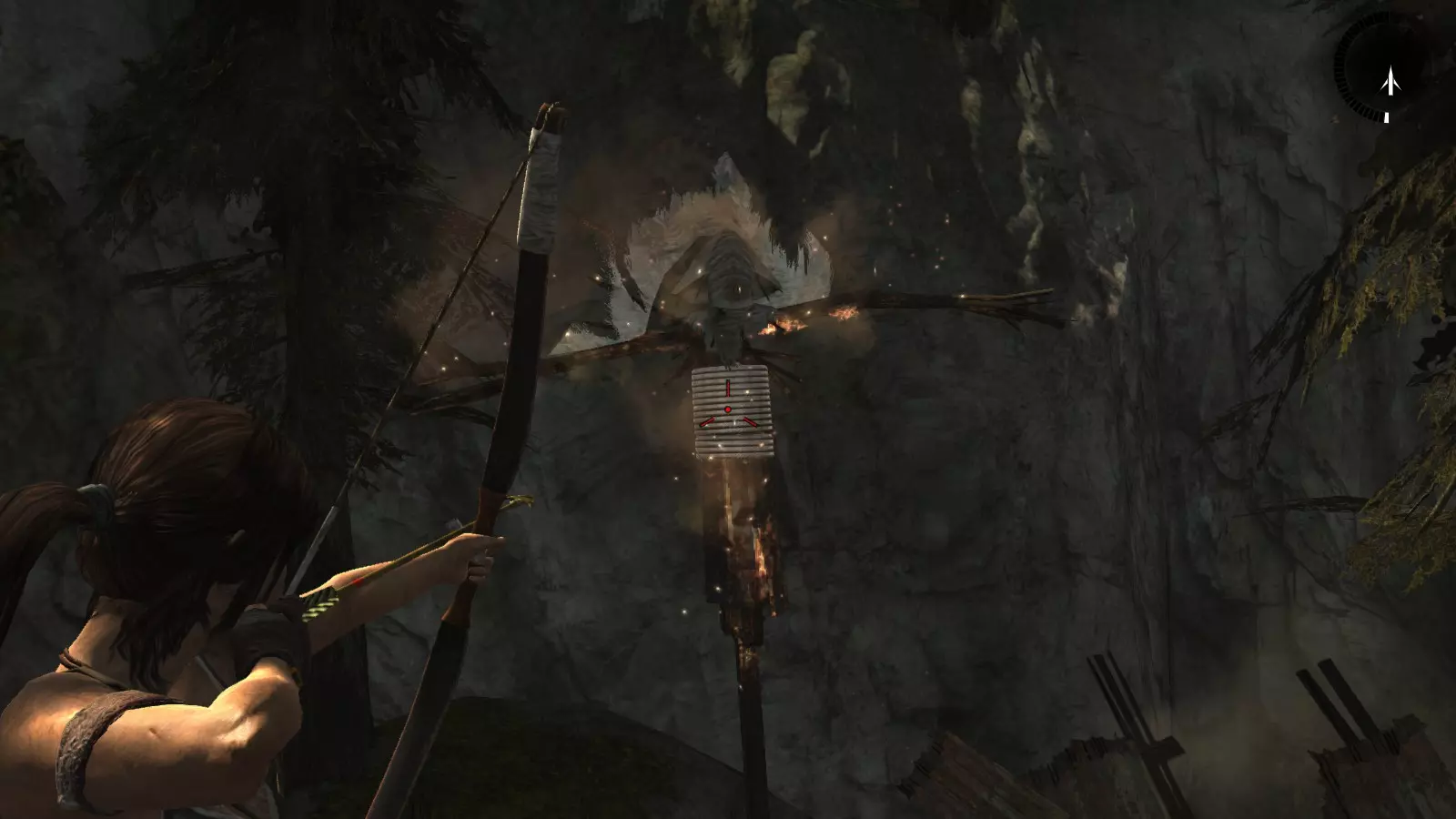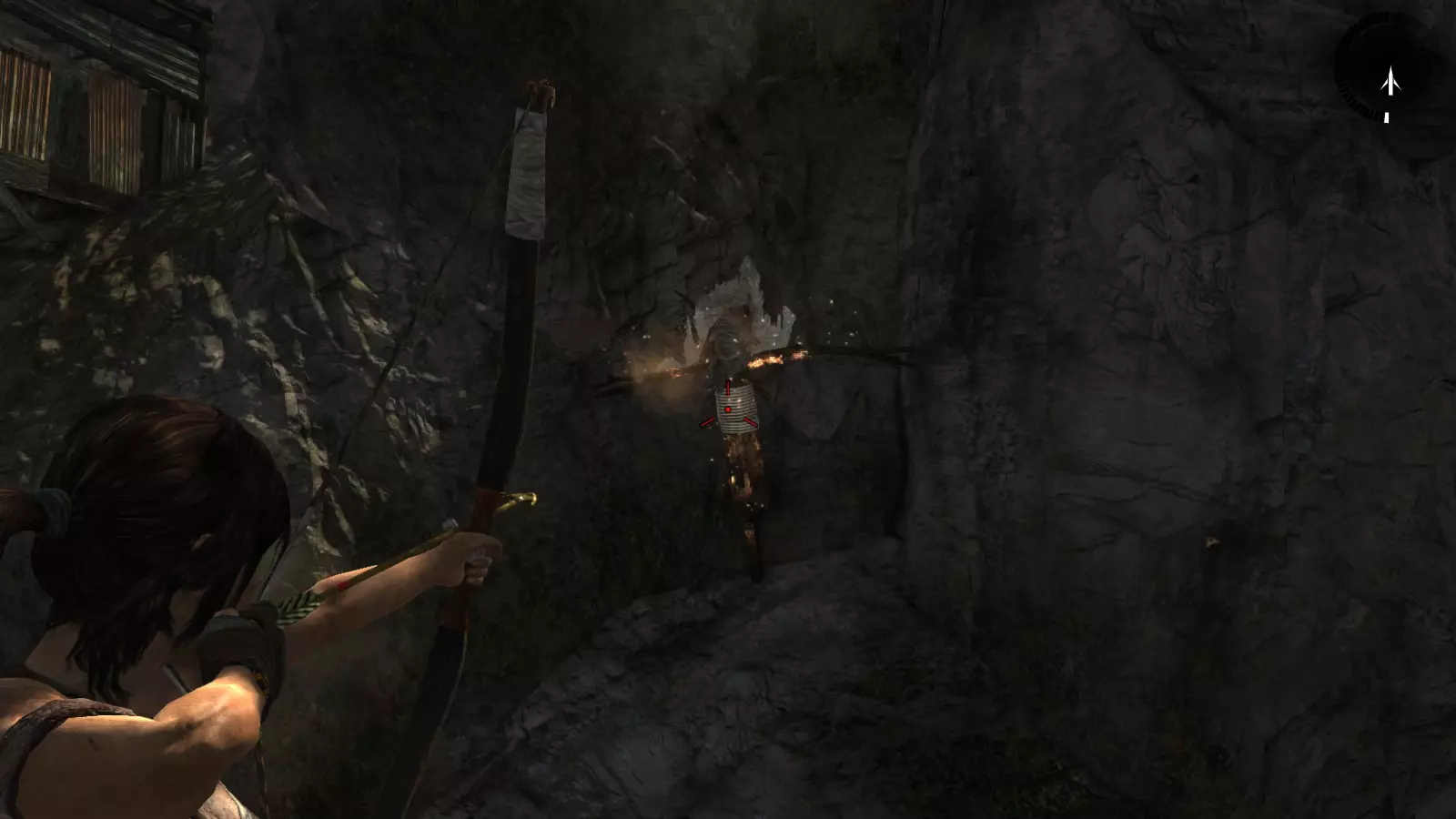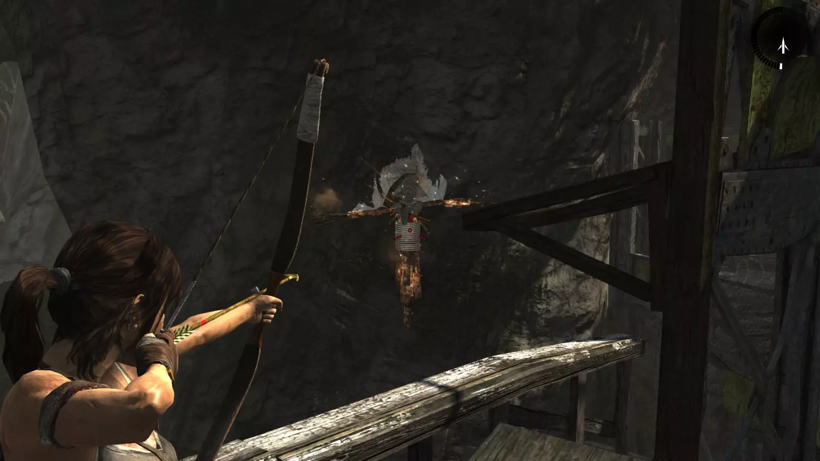 地热洞穴 - 焚烧者 在潜入索拉里堡垒并被捕后,劳拉成功逃脱,但代价是不得不直接跳入一个血湖。摆脱追兵后,她只装备着弓箭和沿途找到的少量箭矢,必须穿越充满易燃气体的地下洞穴,寻找“坚忍号”的其他同伴,然后再袭击堡垒寻找山姆。 在洞穴中穿行时,你会发现6个悬挂的袋子,需要用火箭将它们烧毁。要小心,尤其是在洞穴开始时,不要随意使用箭矢。在深入洞穴内部之前,箭矢是非常珍贵且稀缺的资源。 焚烧者1