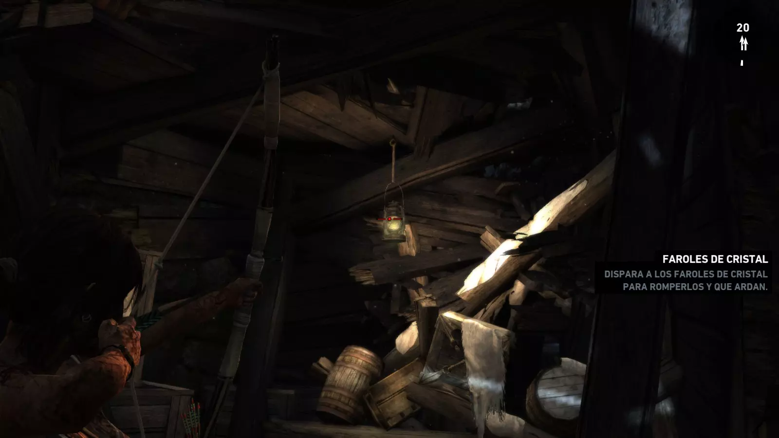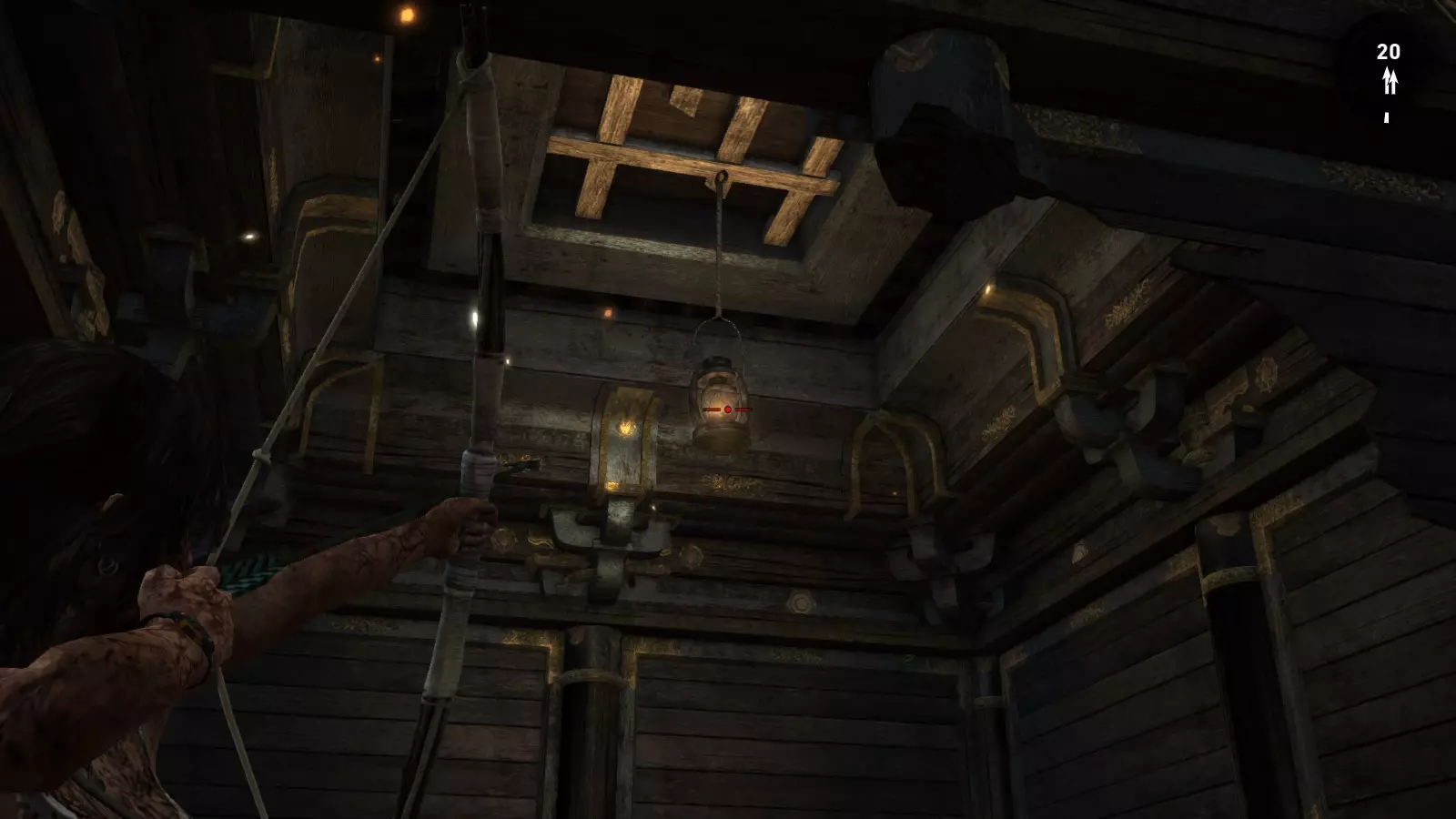 山中神殿 - 纵火狂 好不容易从弗拉基米尔手中逃脱并拿到手枪后,劳拉顺着梯子向上攀爬,来到一片神殿区域,躲避着那些正在屠杀“坚忍号”船员的太阳神庙成员。 在游戏的这个区域,目标是摧毁5个水晶灯笼。需要注意的是,整个区域内我们最多能找到7个水晶灯笼,因此无需摧毁所有灯笼即可完成挑战(而且摧毁额外的灯笼也不会提供额外经验),不过摧毁东西总是很有趣的。 纵火狂1