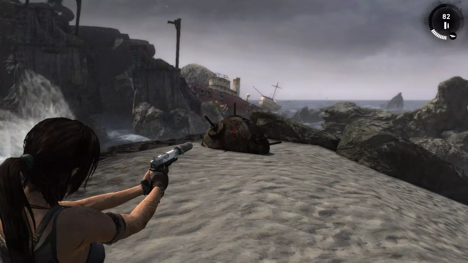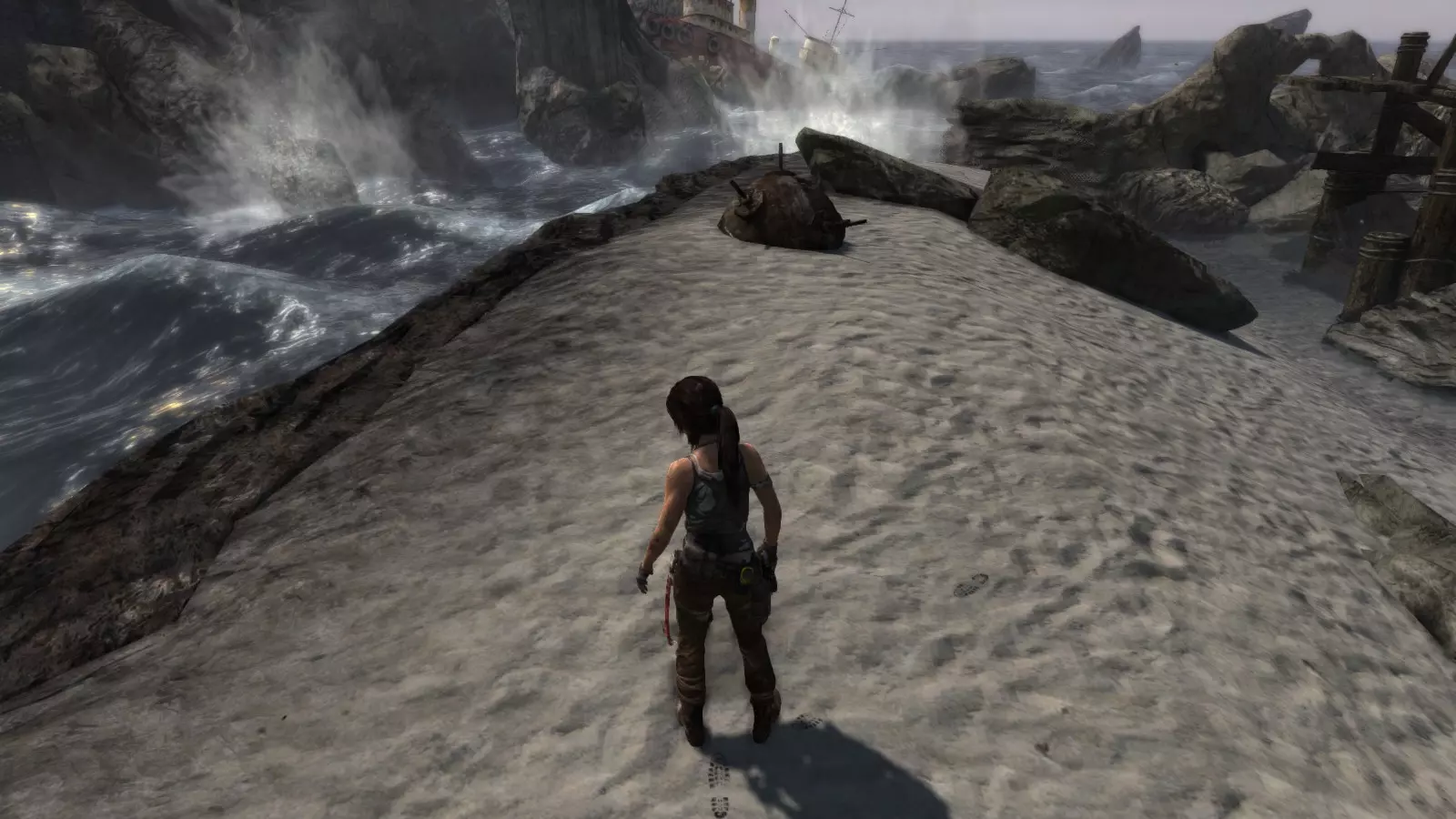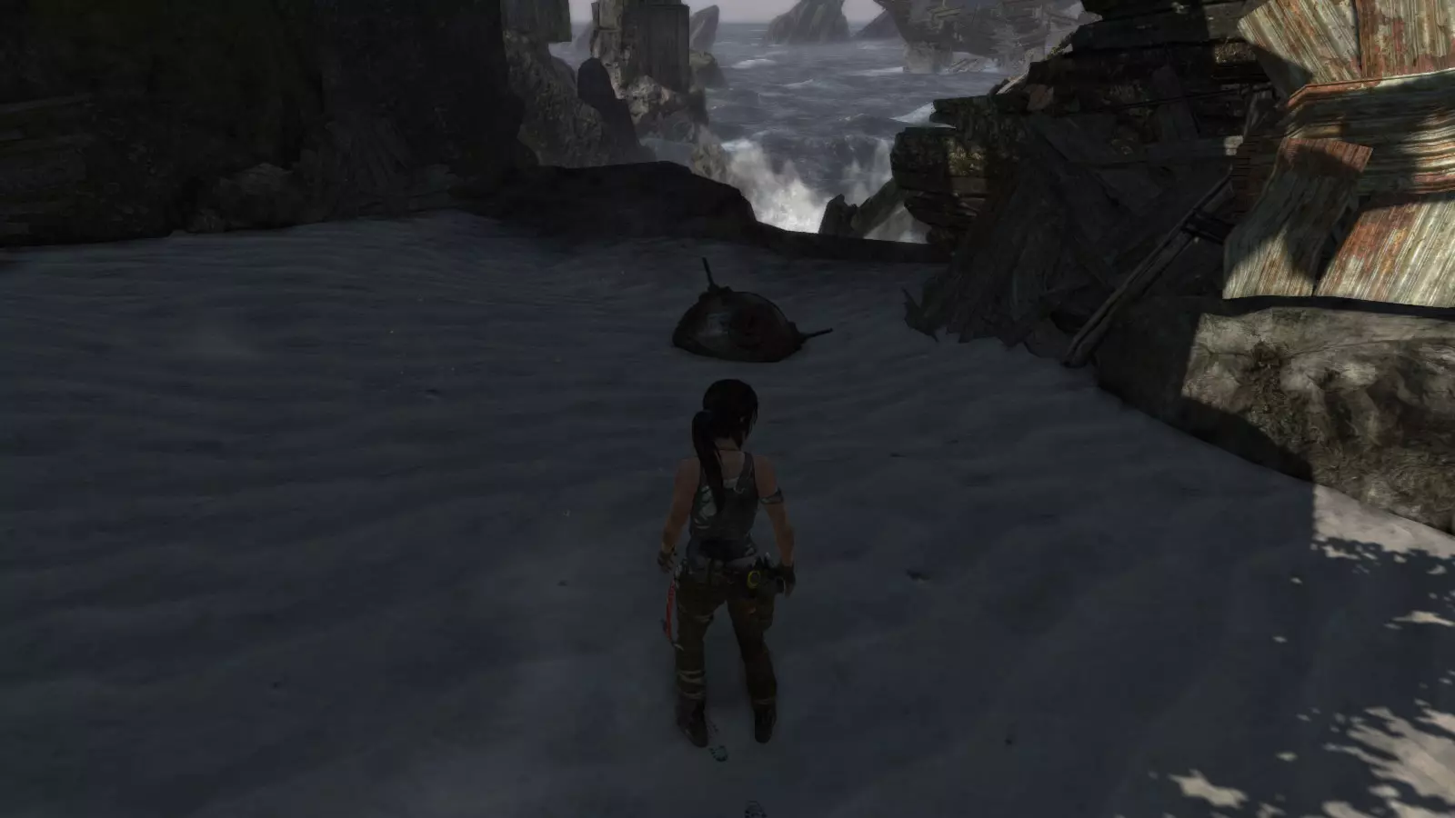 失事海滩 - 盗墓者 在惊险的缆车下行之后,劳拉抵达了海滩,她的同伴山姆、乔纳、亚历克斯和雷耶斯正在那里等她,他们正试图修理汽艇以便逃离这座岛屿。几个世纪以来,这个地方见证了数百起海难,许多失事船只的痕迹至今仍随处可见。 本次挑战的目标是找到散布在海滩上的5个失事船员坟墓。这些坟墓是小型土堆,上面插着一根木桩,木桩上放置着一顶旧头盔。由于该区域相当广阔,你需要在海滩上多探索一番,找到复合弓。没有复合弓的话,你无法进入东边更陡峭的区域去寻找亚历克斯,他正在“坚忍号”上寻找雷耶斯的工具。 古墓丽影1