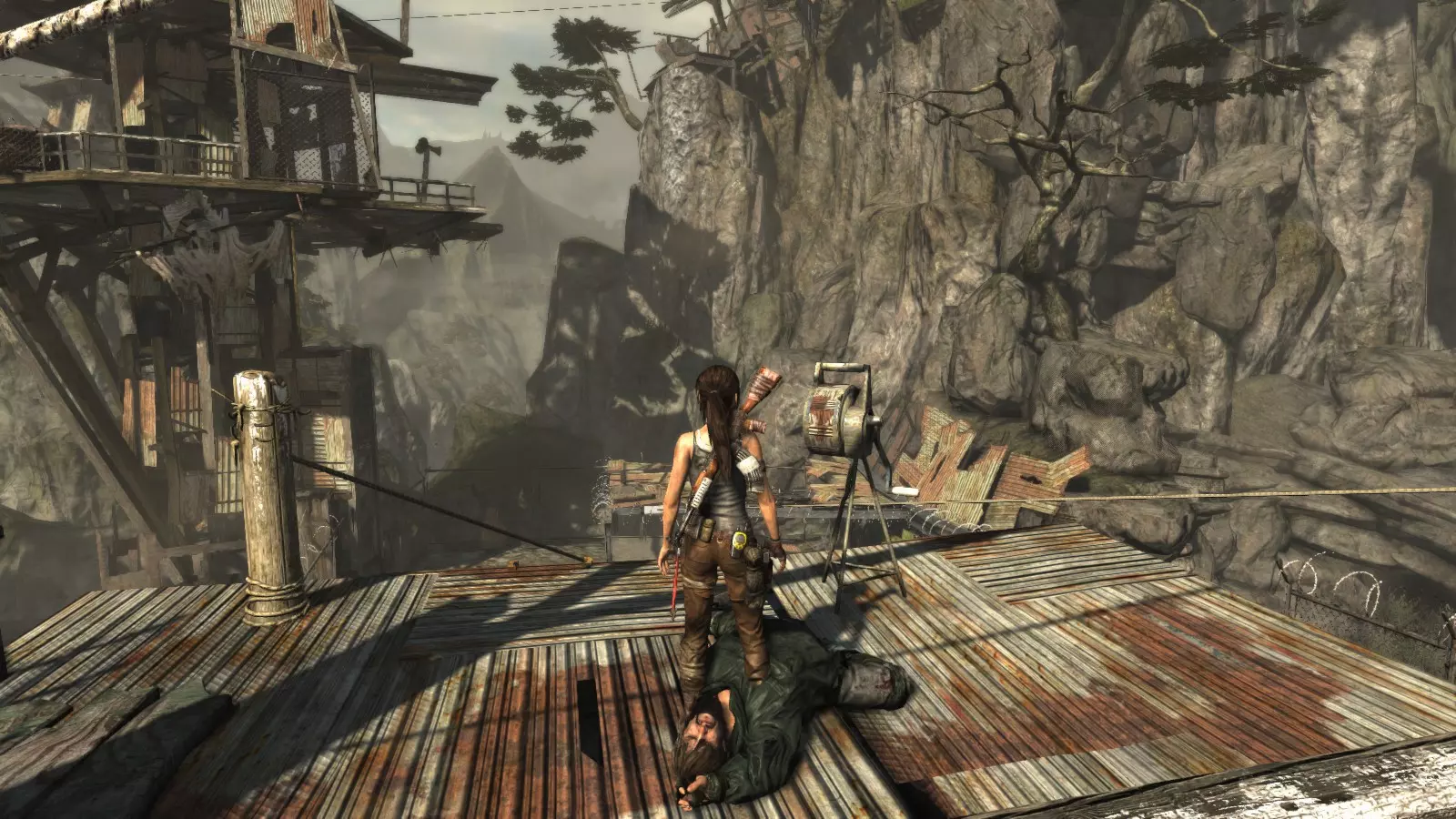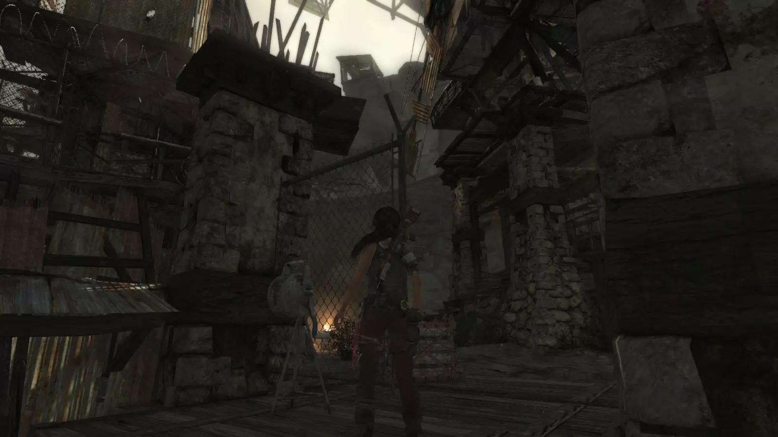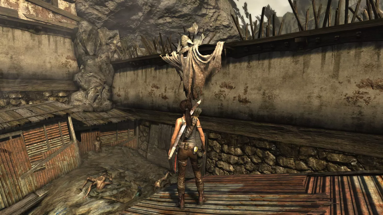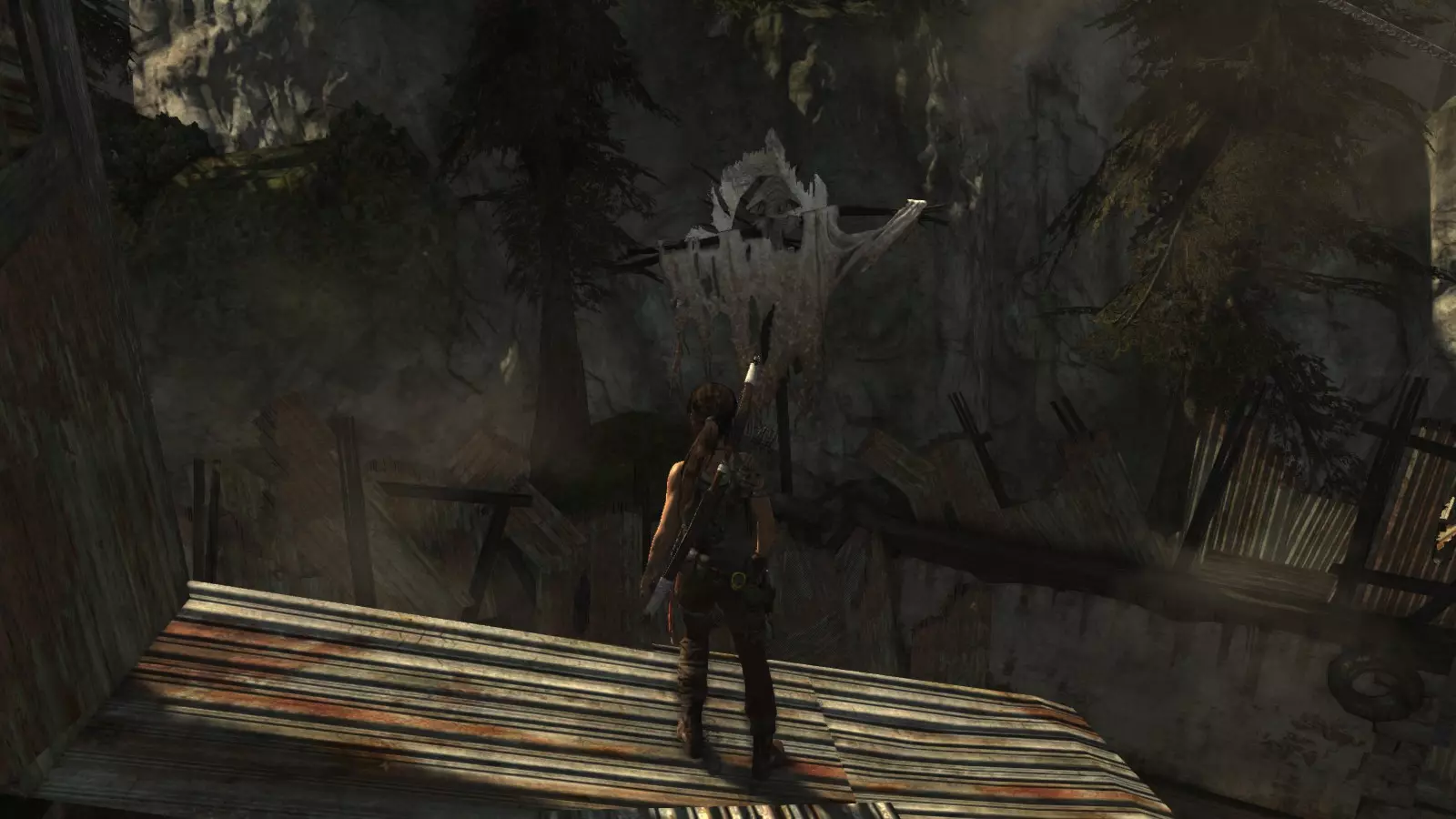 棚户区 - 安息 在经历了惊险的急流下降和降落伞着陆后,劳拉发现自己身处一个棚户区,旁边就是关押山姆和其他人的宫殿。她受了伤,在附近一架坠毁的直升机中寻找疗伤的方法。用一些略显极端的方法进行紧急治疗后,我们就可以开始探索这个棚户区了,从“直升机山”营地出发,你的武器库中会新增一件武器:火箭矢。 【安息】挑战要求摧毁5个由两根木头交叉和一些床单组成的十字雕像。要摧毁它们需要分两步进行:首先,我们必须使用火箭矢点燃覆盖它们的床单(这些雕像太高,无法使用火炬),然后,当主体树干暴露出来后,使用绳索箭矢拉动它们,使其倒下。 在整个棚屋村庄中,你会发现许多这类雕像,总共有9个,因此这个挑战很容易完成。Descanse en paz 1