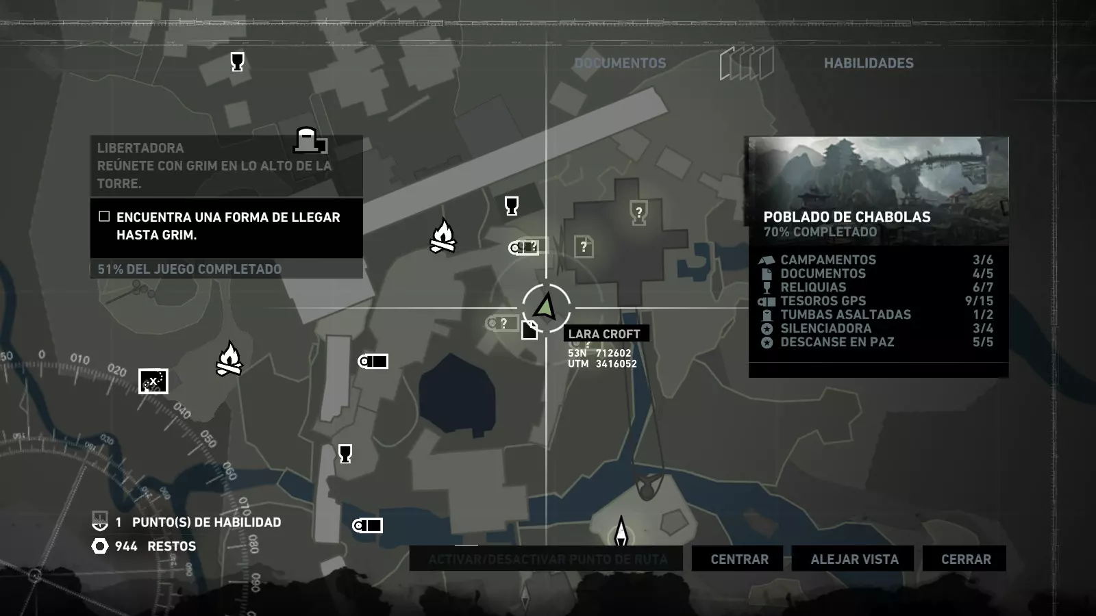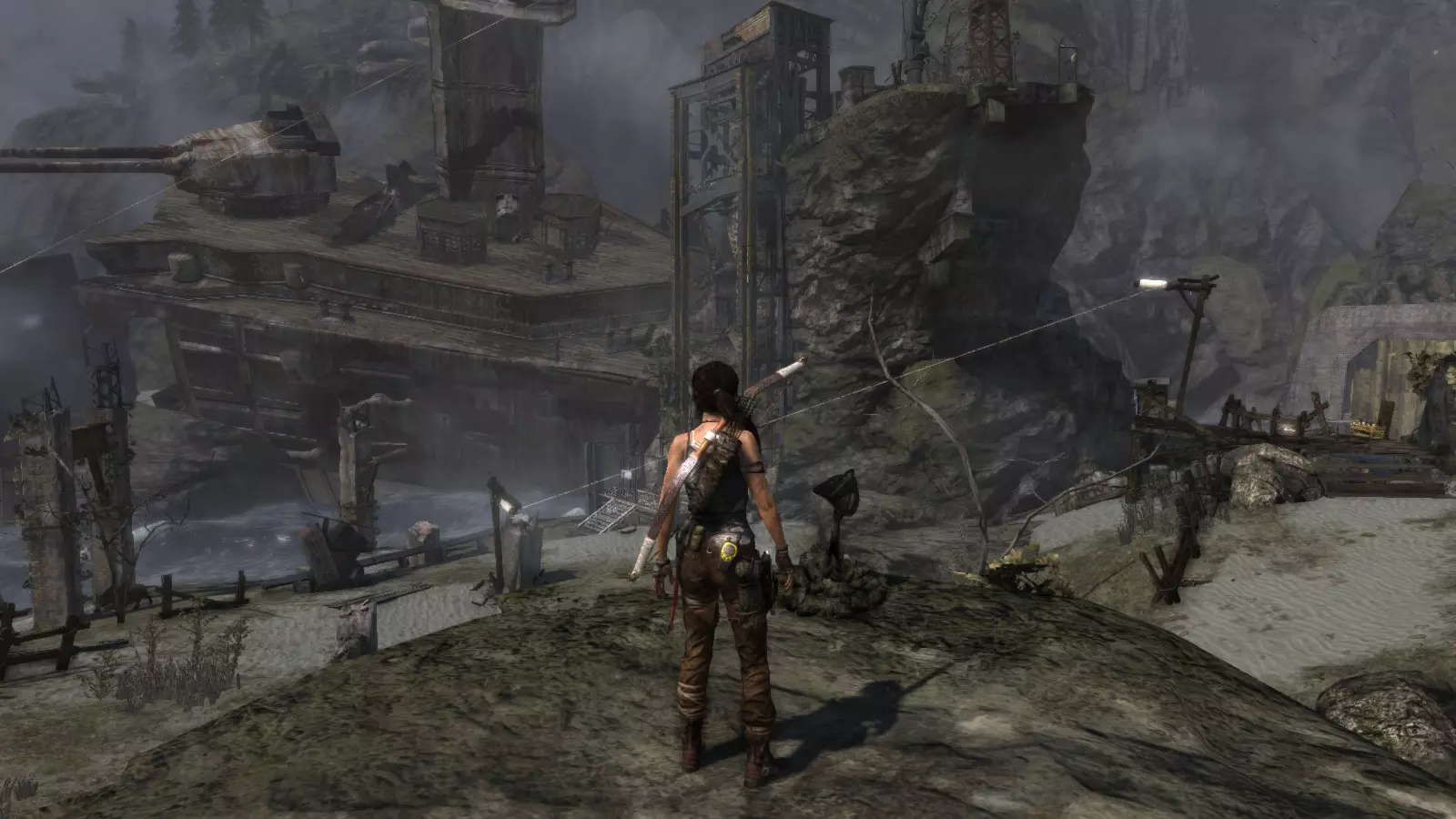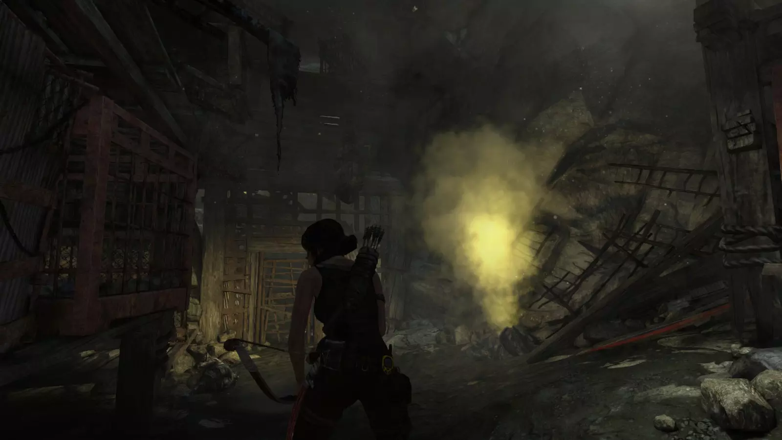 棚户区 - 安息 在经历了惊险的急流下降和降落伞着陆后,劳拉发现自己身处一个棚户区,旁边就是关押山姆和其他人的宫殿。她受了伤,在附近一架坠毁的直升机中寻找疗伤的方法。用一些略显极端的方法进行紧急治疗后,我们就可以开始探索这个棚户区了,从“直升机山”营地出发,你的武器库中会新增一件武器:火箭矢。 【安息】挑战要求摧毁5个由两根木头交叉和一些床单组成的十字雕像。要摧毁它们需要分两步进行:首先,我们必须使用火箭矢点燃覆盖它们的床单(这些雕像太高,无法使用火炬),然后,当主体树干暴露出来后,使用绳索箭矢拉动它们,使其倒下。 在整个棚屋村庄中,你会发现许多这类雕像,总共有9个,因此这个挑战很容易完成。Descanse en paz 1