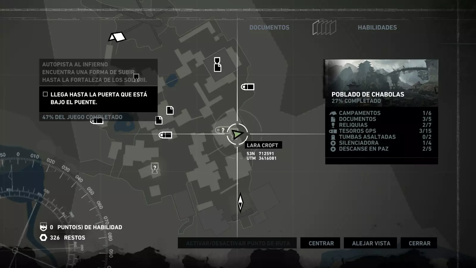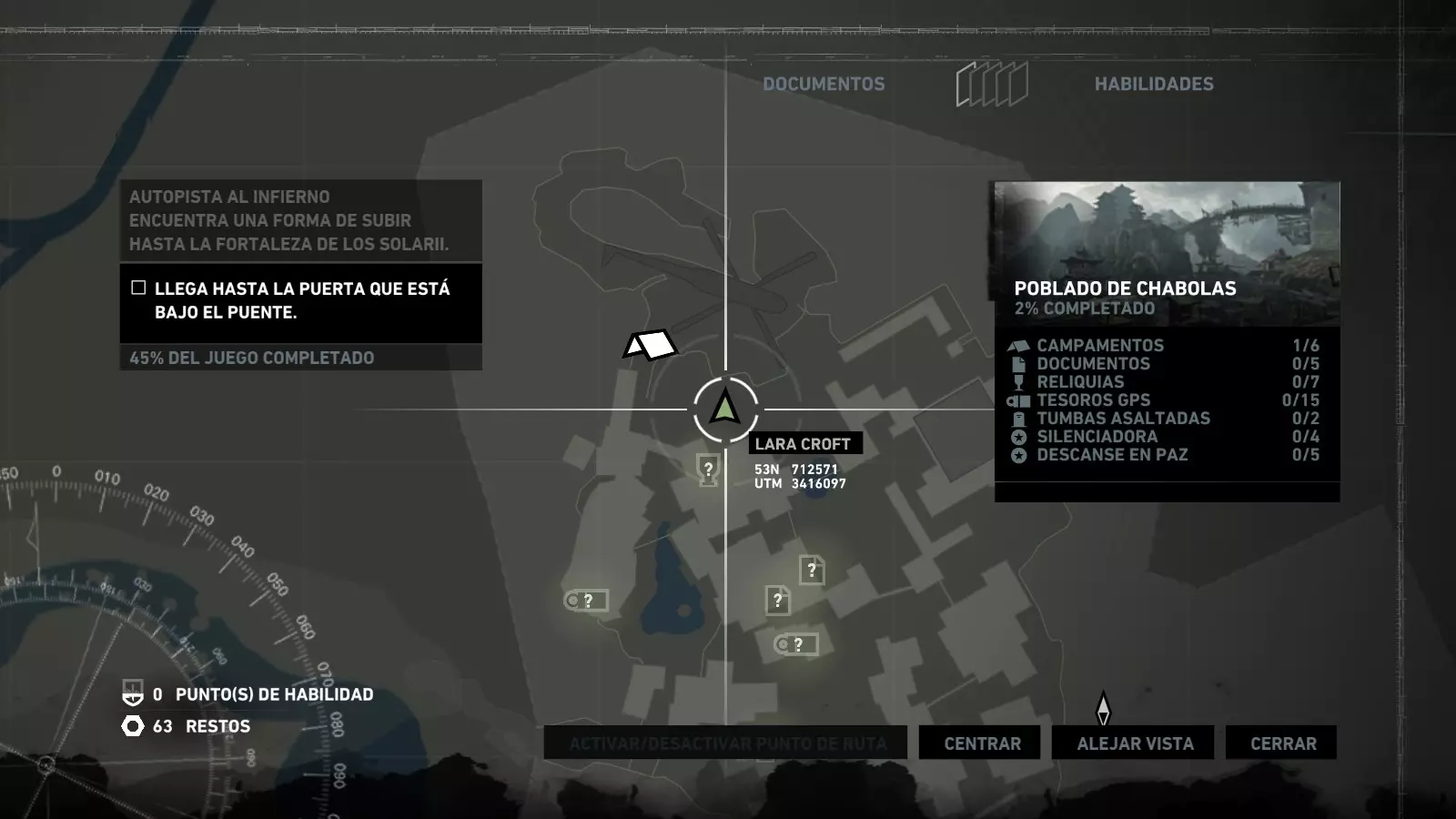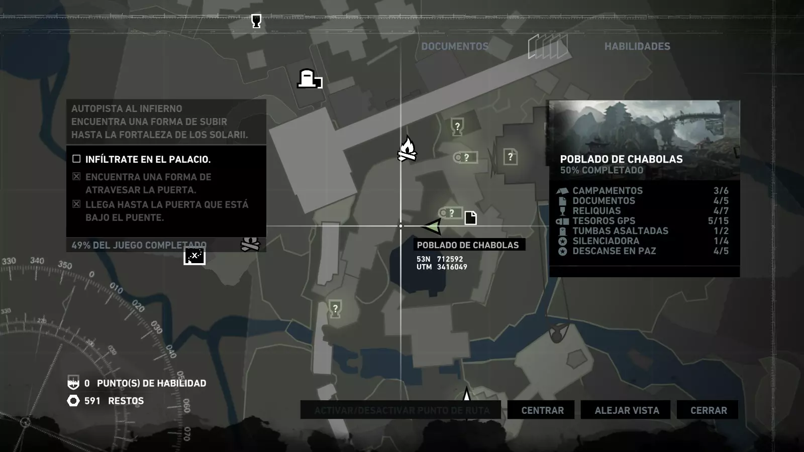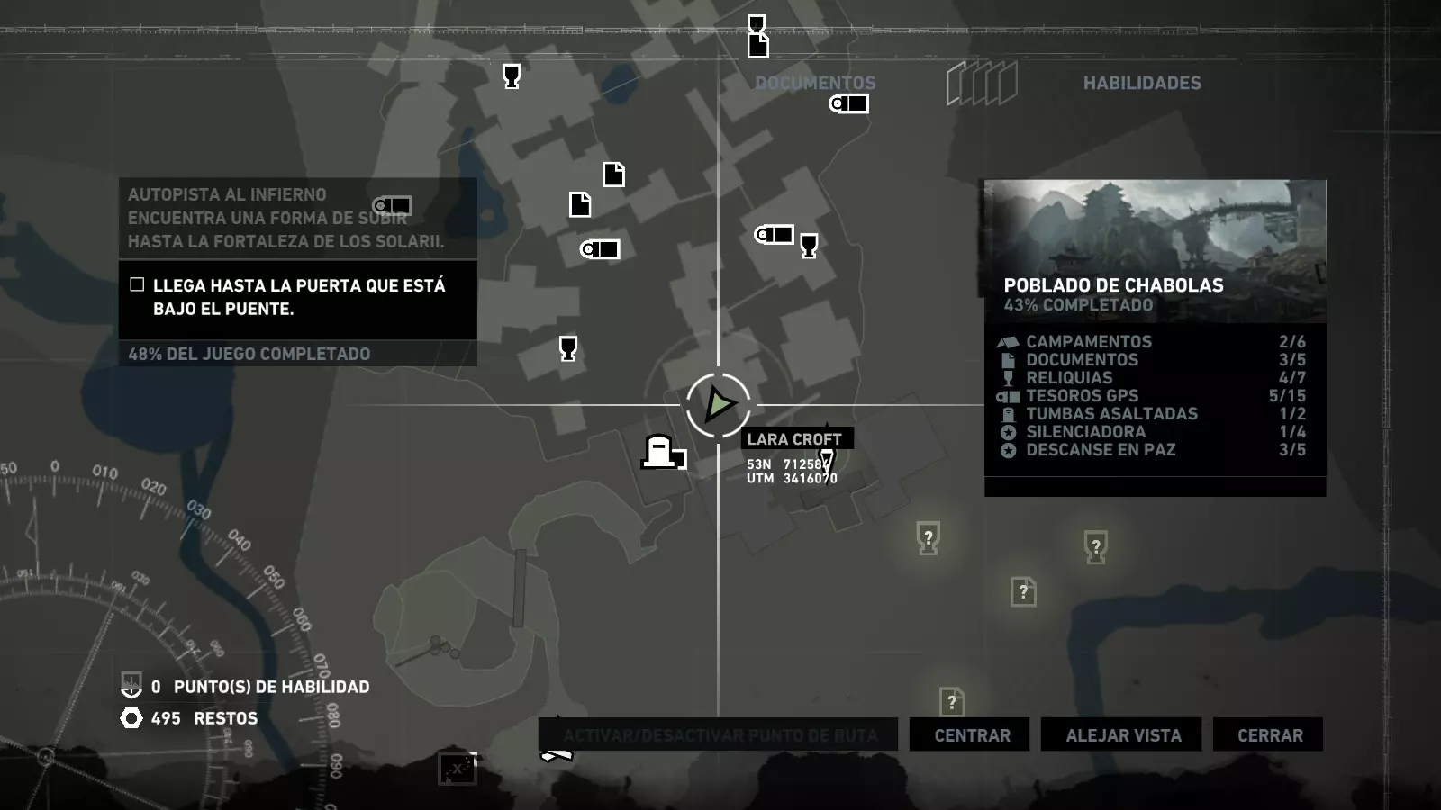 棚户区 - 安息 在经历了惊险的急流下降和降落伞着陆后,劳拉发现自己身处一个棚户区,旁边就是关押山姆和其他人的宫殿。她受了伤,在附近一架坠毁的直升机中寻找疗伤的方法。用一些略显极端的方法进行紧急治疗后,我们就可以开始探索这个棚户区了,从“直升机山”营地出发,你的武器库中会新增一件武器:火箭矢。 【安息】挑战要求摧毁5个由两根木头交叉和一些床单组成的十字雕像。要摧毁它们需要分两步进行:首先,我们必须使用火箭矢点燃覆盖它们的床单(这些雕像太高,无法使用火炬),然后,当主体树干暴露出来后,使用绳索箭矢拉动它们,使其倒下。 在整个棚屋村庄中,你会发现许多这类雕像,总共有9个,因此这个挑战很容易完成。Descanse en paz 1