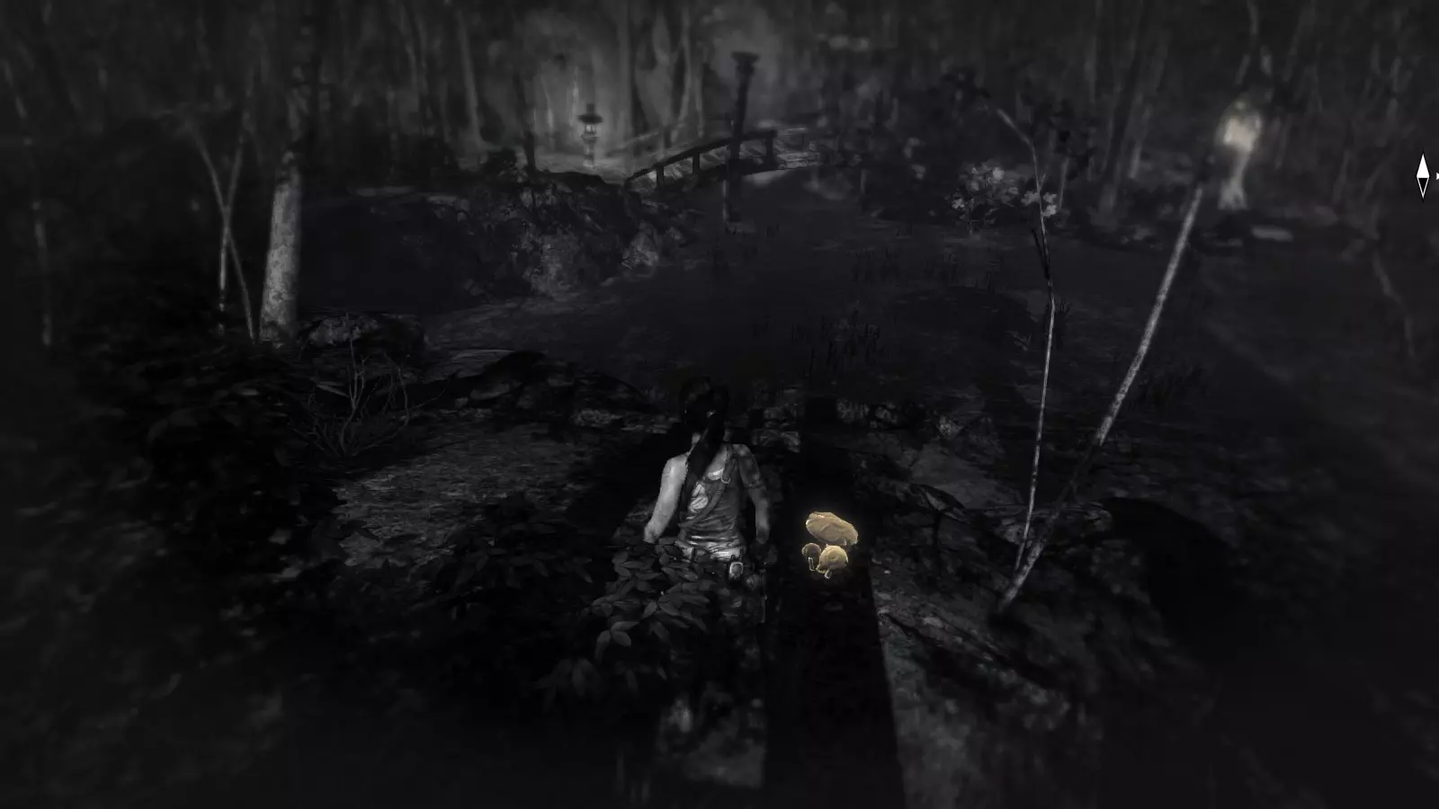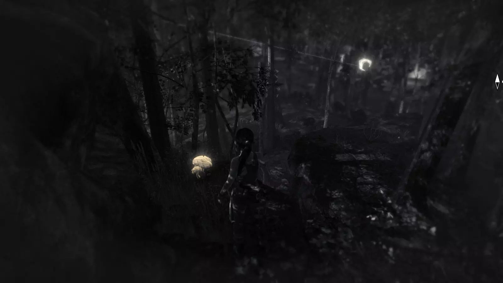 山顶森林 - 寻找蘑菇 救援直升机坠毁后,劳拉因罗斯的英勇牺牲而悲伤不已,她发现风暴的秘密就藏在岛屿中心河边的修道院里。但当她试图联系同伴却只得到一片沉默的回应时,她决定立即出发,穿越这片布满敌人的森林。 途中,你需要寻找并收集散布在整个森林中的10个蘑菇。由于这是在夜间进行的搜寻,而且蘑菇在森林中是非常常见的元素,很容易被忽略,因此需要睁大眼睛,从容前行才能找到它们。此外,森林几乎被索拉里守卫占据,因此建议在开始寻找它们之前先解决掉这些守卫,以避免不愉快的遭遇。黑夜和茂密的树林应该成为你的盟友,让你在他们甚至还没察觉到你的存在时就将其消灭,因为一旦被发现,不仅守卫会攻击你,狼也会。 寻找蘑菇1