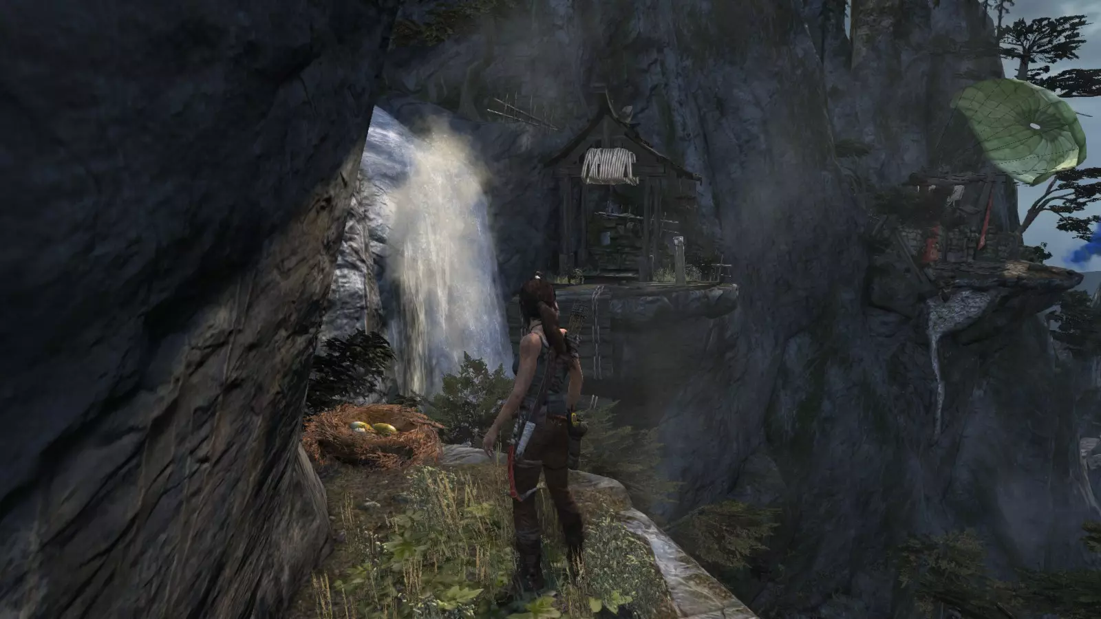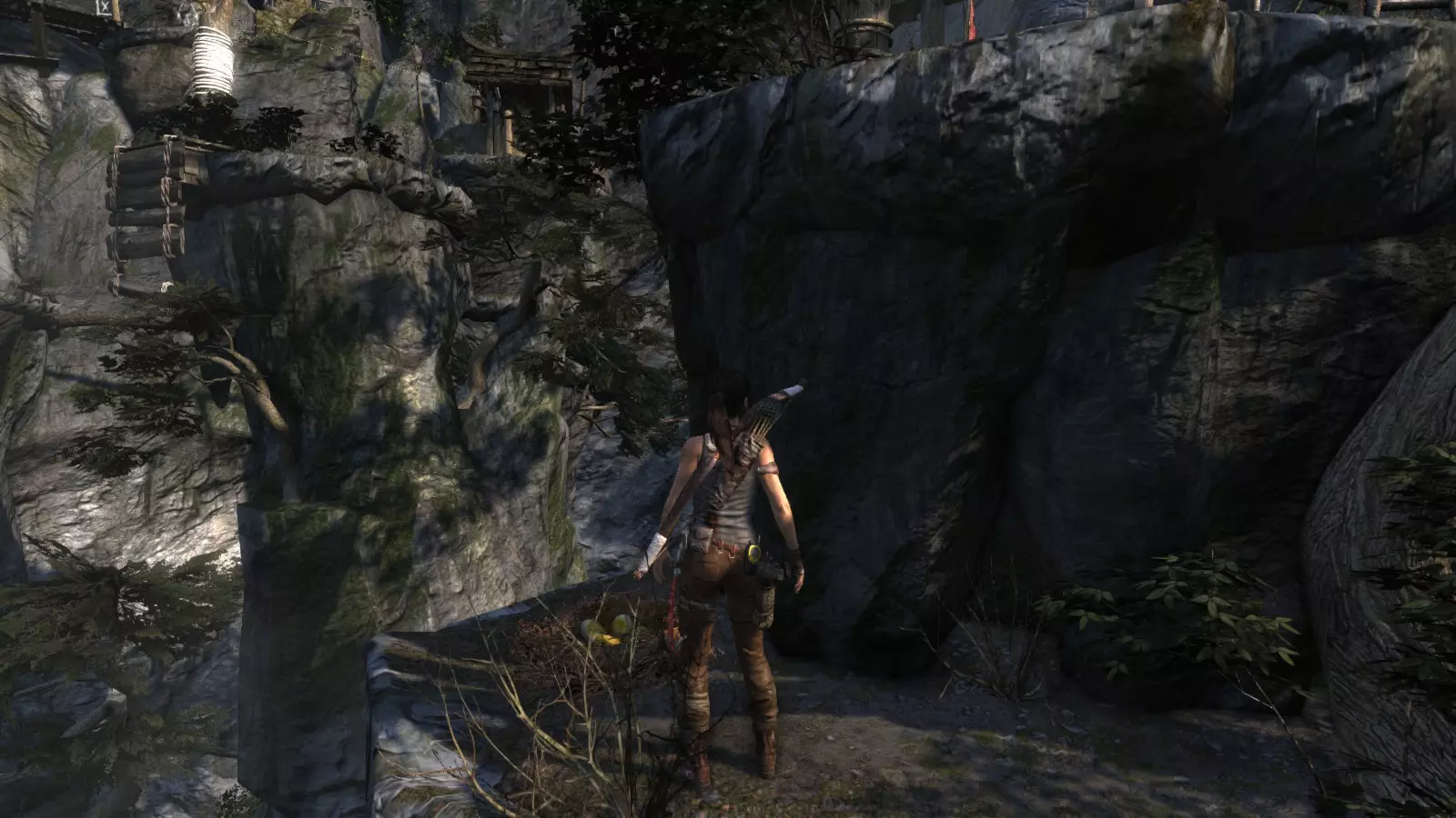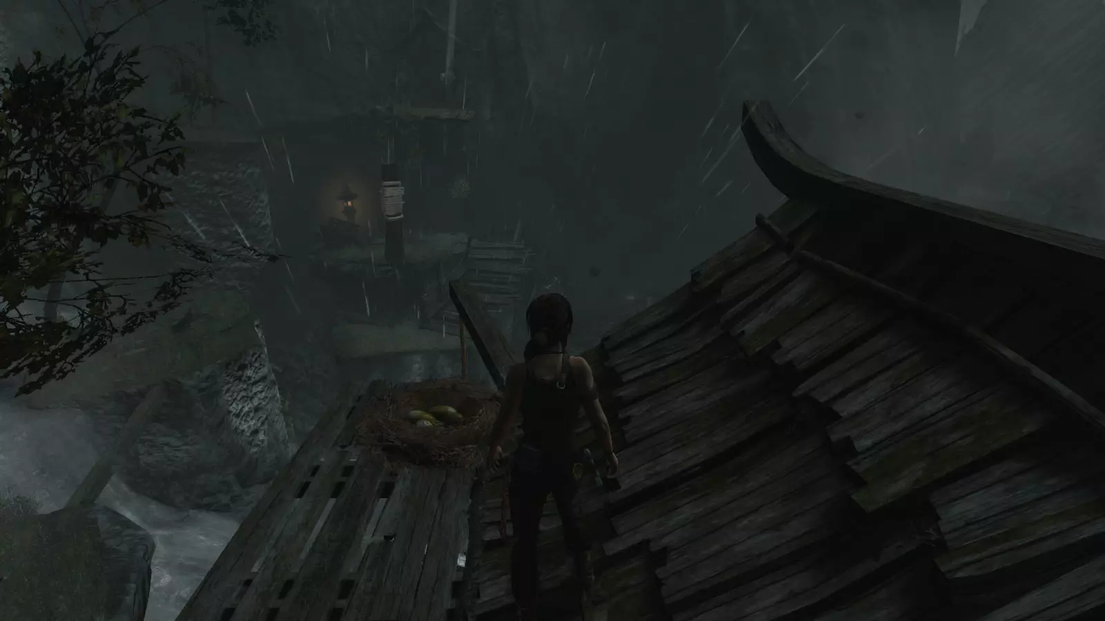 山村 - 偷蛋贼 与“光明”挑战类似,该挑战将在我们与罗斯在村庄重逢后开始。此挑战的目标是找到并偷走5个鸟巢中的蛋。可想而知,这些鸟巢不会在地面上,因此需要检查屋顶和悬崖突出部分。 要完成此挑战,你必须已获得冰镐和绳箭,因此只有在救援飞机事故之后才能完成。 偷蛋贼1