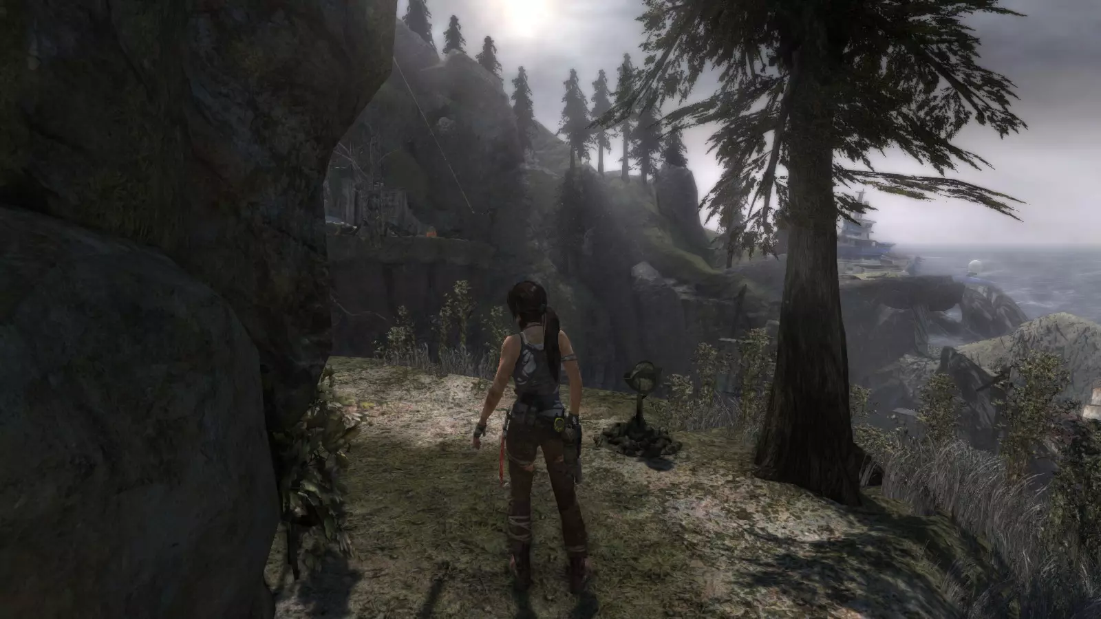 在葡萄牙古船上准备好装备,且乔纳交给你新弓后,你需要向东前往“坚忍号”寻找亚历克斯。途中你会经过一艘半损毁的船,然后到达一座类似瞭望塔的建筑,那里有几个敌人在等着你。如果你从右边的路绕到塔后,就能找到第四个古墓。