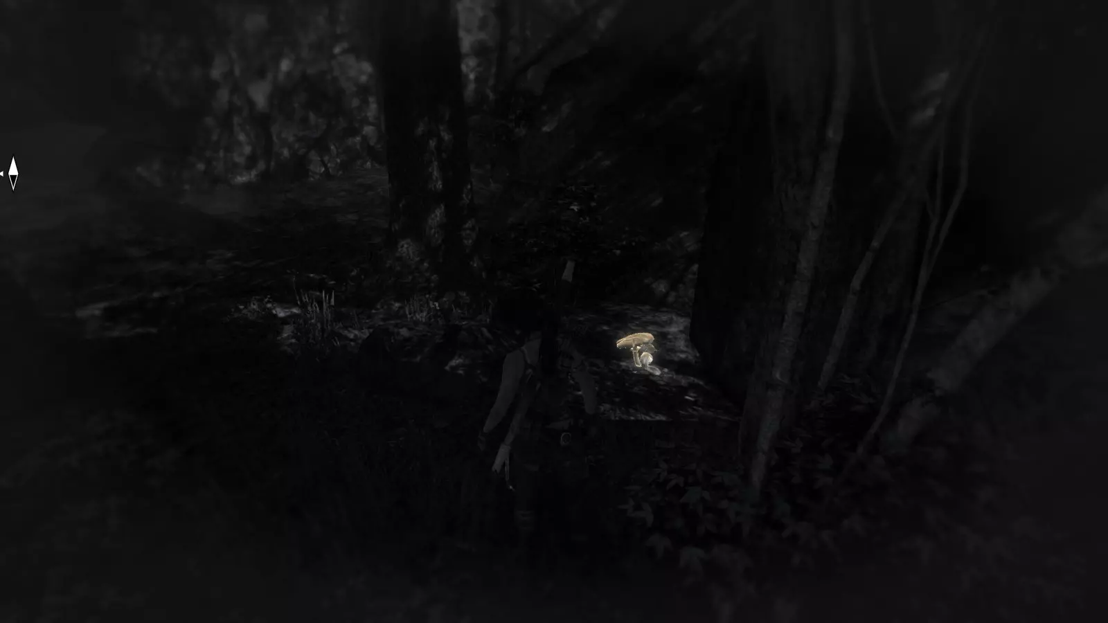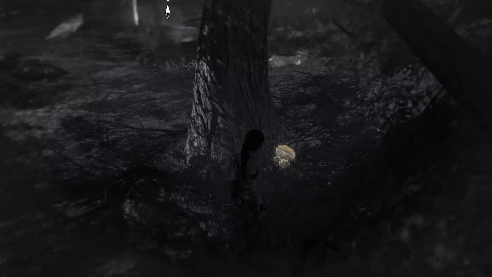 第二朵蘑菇也在直升机附近,但更靠东一些,在一棵粗树干后面。