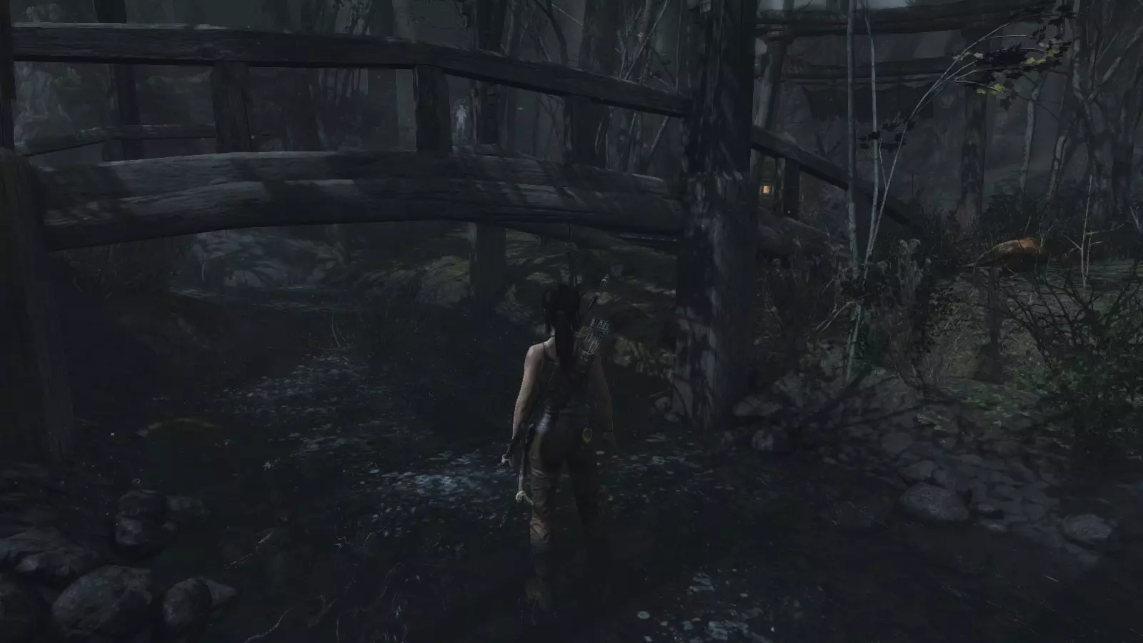 沿着河流走,当你来到用作桥的第二棵倒下的树旁时,向左转。查看其中一端,你就能找到它。