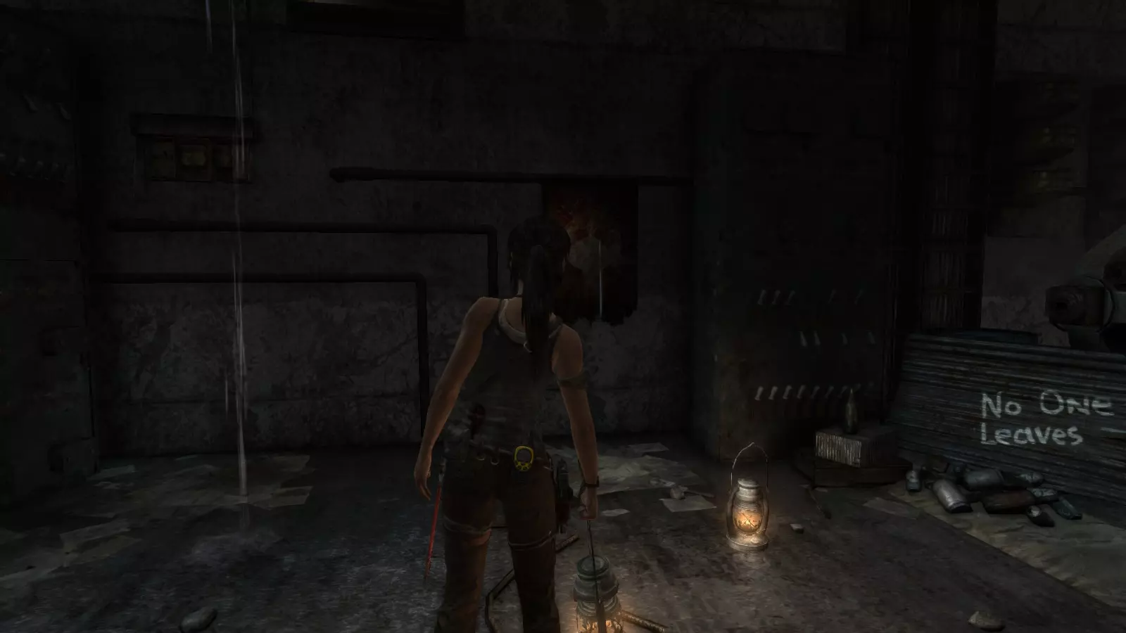 爬过通风口进入满是发动机的房间后,你可以捡起地上的一盏提灯,将其扔向第二个告示牌,该告示牌就在你进入的通风口旁边。