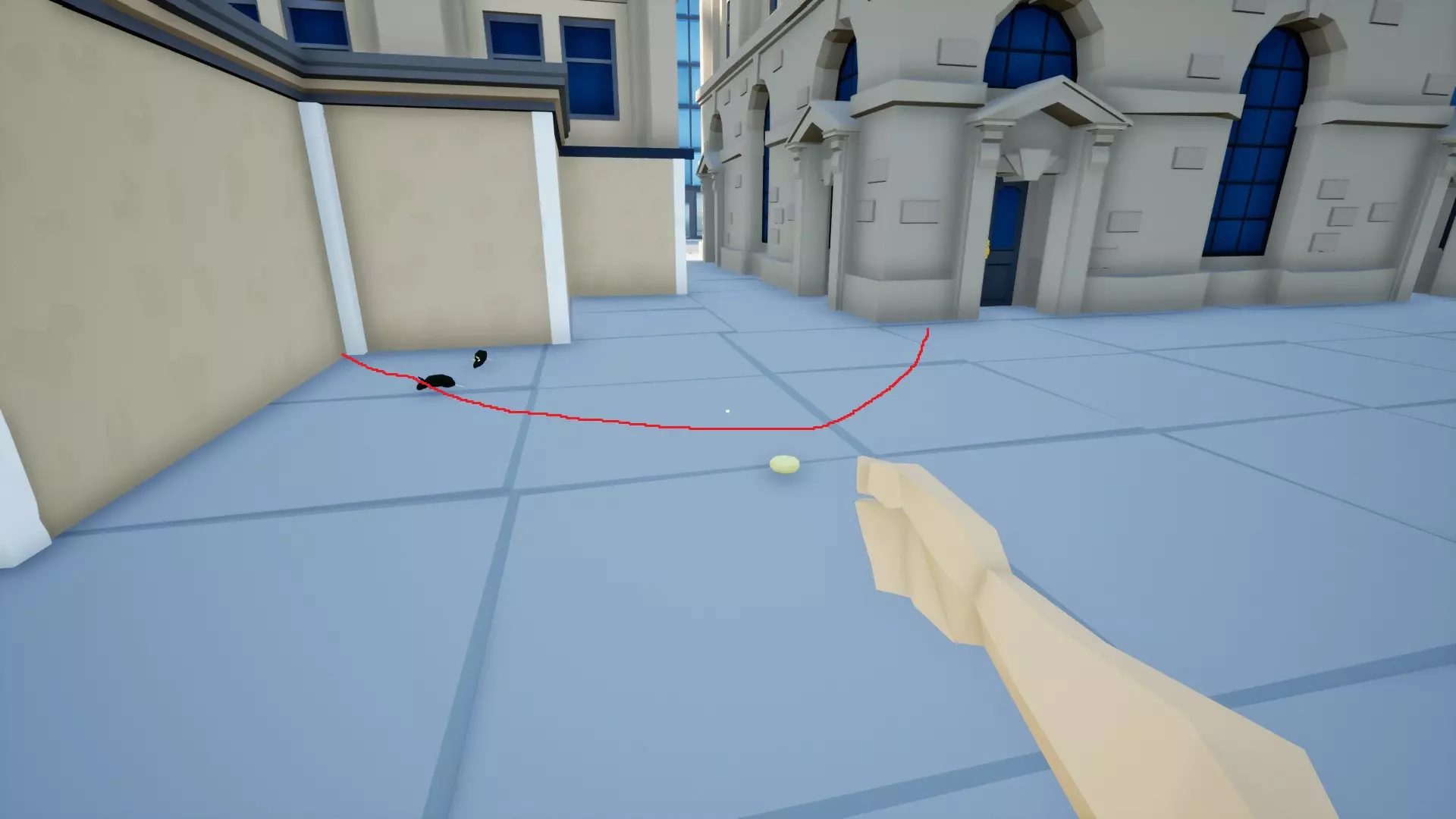 第二种方法是将食物抛到老鼠洞附近的一定高度,让食物掉落到地上并静止。老鼠跑出来的概率相当高:60%会跑出一只,35%不会跑出,4%会跑出两只,剩下的1%会跑出三只。这是极为罕见的事件。有效范围大约是距离墙上洞口10-15只老鼠的距离(已在图片中标出)。