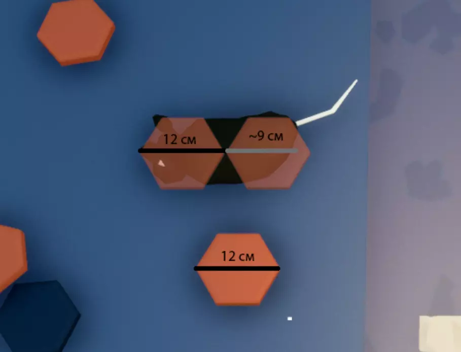 屋顶的长度 在游戏中它们的长度约为22厘米。我是通过一个直径平均为12厘米的炸肉饼得知这一结果的。