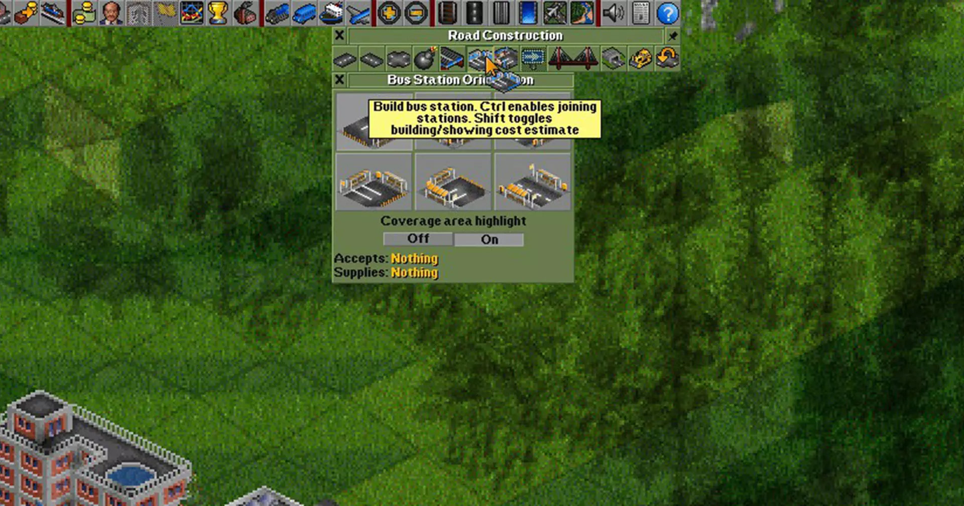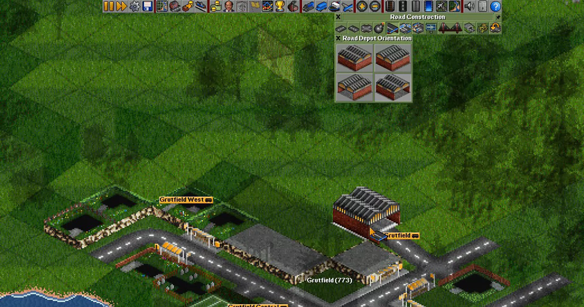 建造车辆 depot 现在我们需要放置道路 depot。 再次点击道路图标