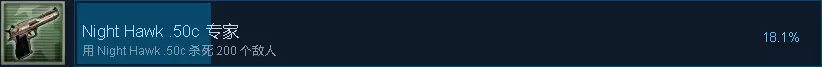 用一枚高爆手雷干掉拆弹者 BOT只拿刀,沙漠二先拿手枪打几枪后下包,然后躲在一个角落里,等着BOT来拆就炸就行,因为手雷伤害不是很高,所以可能得多试几次才行。 Weapon成就(共31个) 这部分可以用成就地图来解锁,但还是建议把这部分匀到之前的成就去同时做。 1. Night Hawk .50c 专家