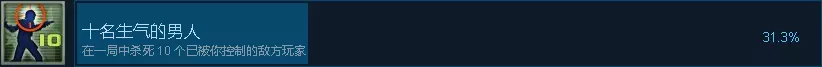 杀死一个控制你的敌方玩家 杀死总共20个控制你的敌方玩家 敌人击杀你四次算控制你,这时你会看见敌人成为了你的复仇者,不强求一定要不同名字的BOT,只要是控制你之后击杀就可以加进度 10.杀气凛人 11.毫不留情 12.十名生气的男人 13.控制并管理