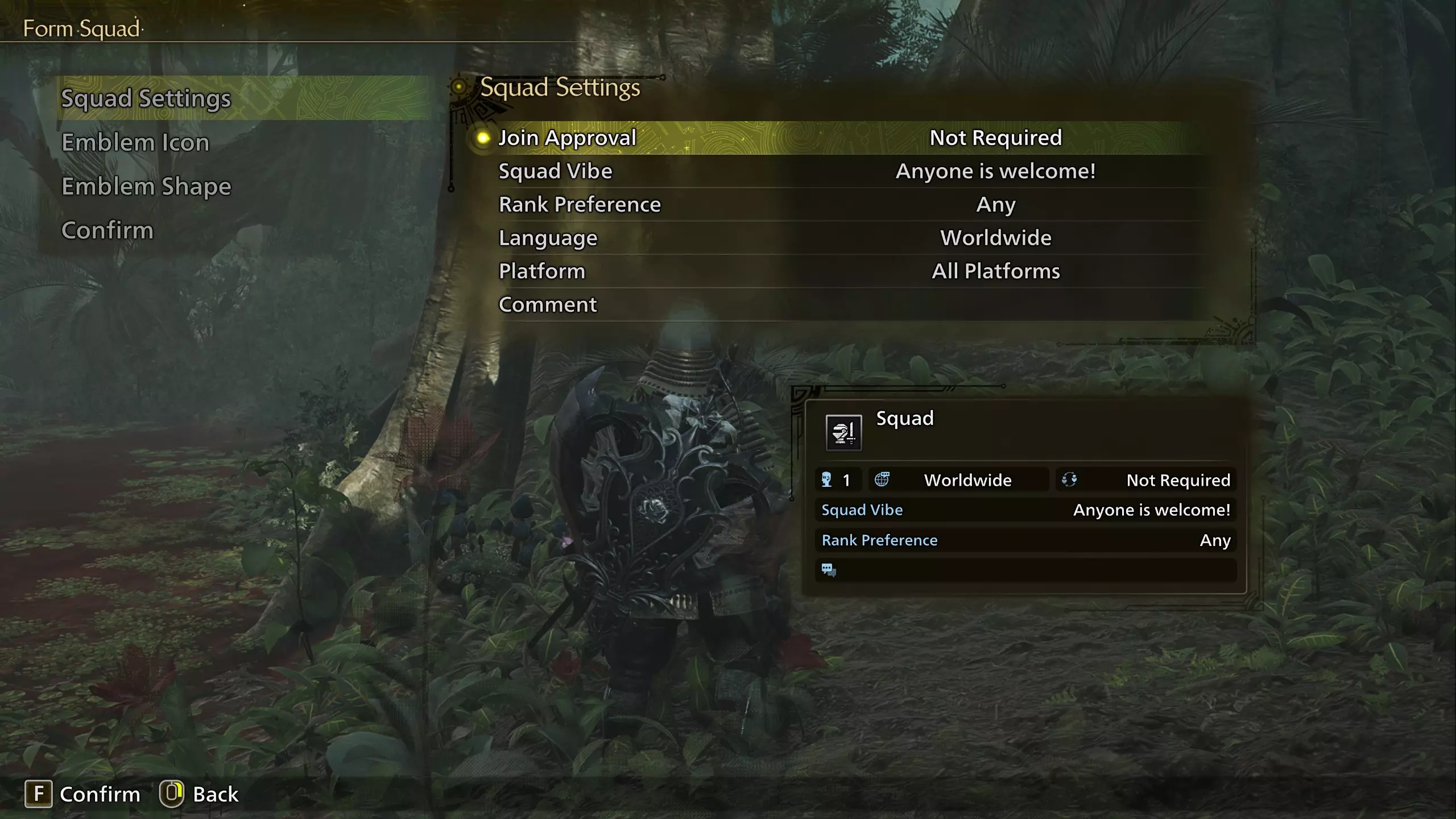 你将有机会创建小队设置、小队徽章和小队名称。作为小队队长,【加入审批】设置是最具影响的,即是否需要审批。如果不需要加入审批,那么你创建的基本上就是一个公开小队,任何人都可以通过条件搜索等方式加入。如果将加入审批设置为需要,那么你或小队副队长必须允许所有新成员加入小队。之后,你可以根据喜好设置小队氛围、等级偏好和其他设置。