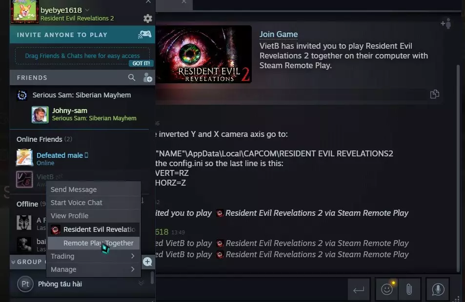 01 - 战役合作模式(使用远程同乐功能) 操作步骤:完成所有设置后,启动游戏。按下“Shift + Tab”打开Steam界面,右键点击好友名称,选择【远程同乐】。