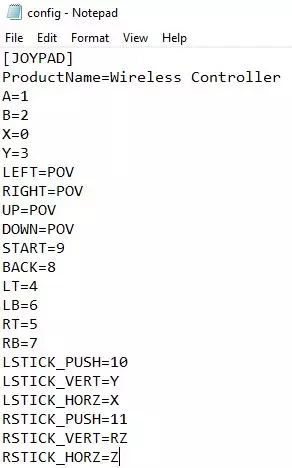打开config.ini文件,并按以下方式编辑【JOYPAD】部分: