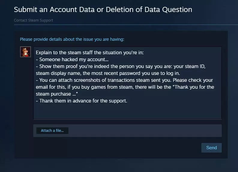 步骤5:提供详细信息,以便Steam工作人员能够帮助你。