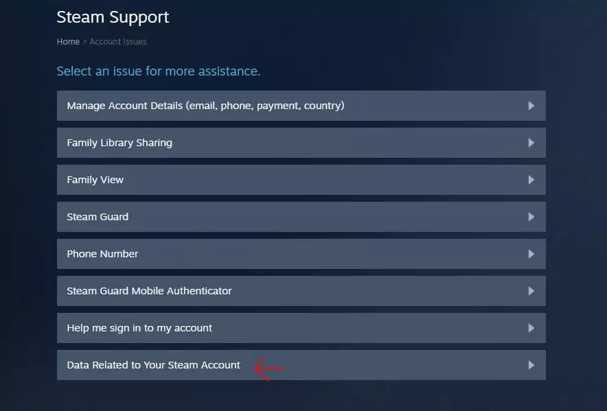 步骤3:选择与您的Steam账户相关的数据