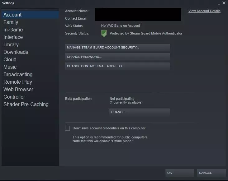 你可能需要向工作人员提供更多证据,以证明你是该账户的实际所有者。 就我而言,我甚至创建了第二个账户,专门向他们寻求帮助。 我通过Steam直接找回了登录账户的密码,只用了一天时间,简直是个奇迹。但你的情况可能不同,我知道这很糟糕,但请保持耐心。 我找回了我的账户,现在该怎么办?在这部分,我会分享我保护账户的方法。 点击Steam/设置。更改你的密码、电子邮件联系地址,为账户添加更多安全层。