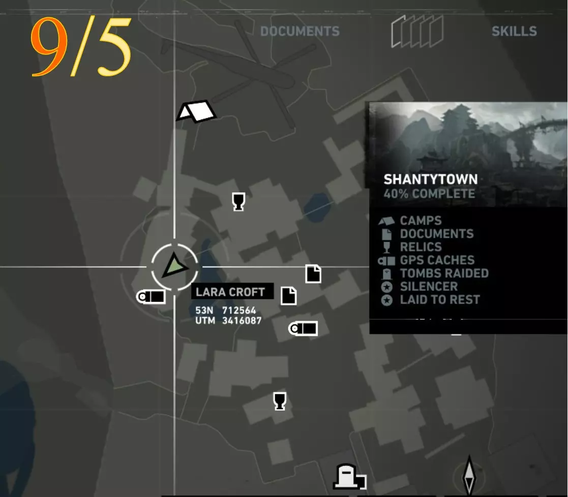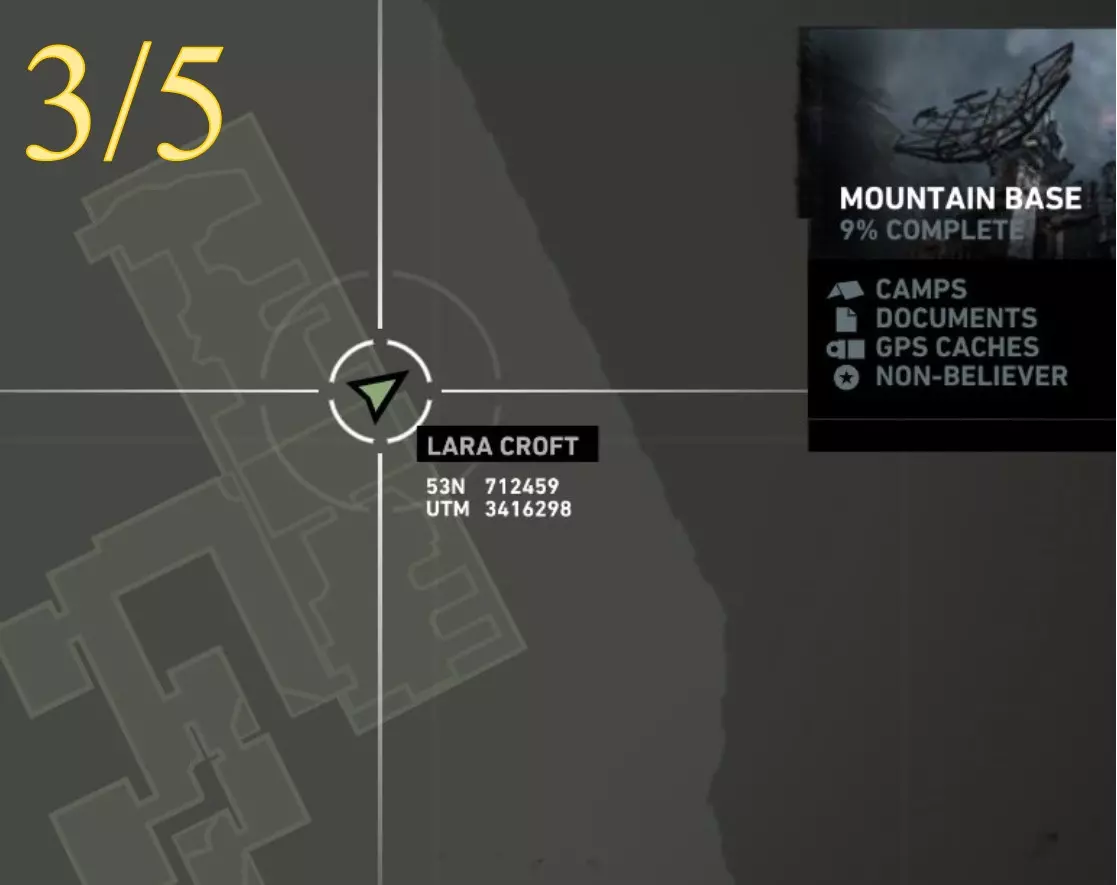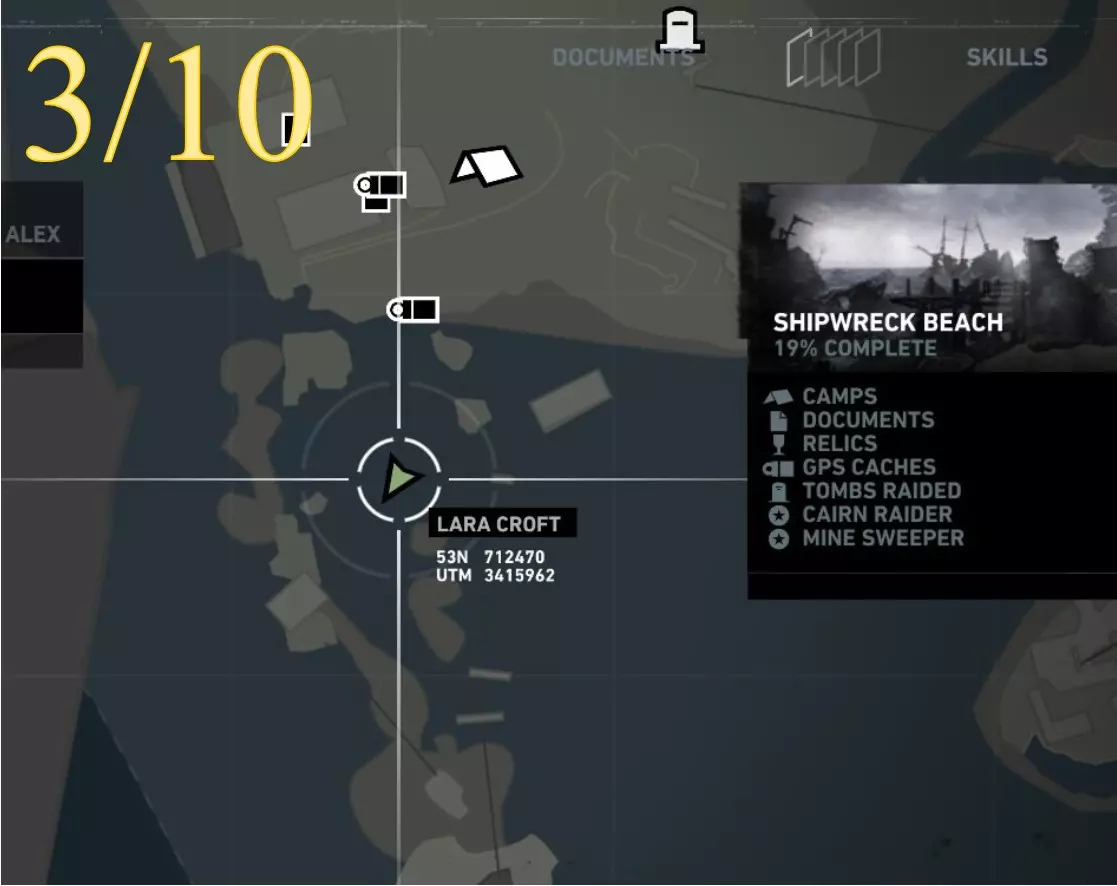 劳拉在地图A点的视角。使用生存本能模式(Q键)可以更清晰地看到目标。 截图B - 扫雷5/10