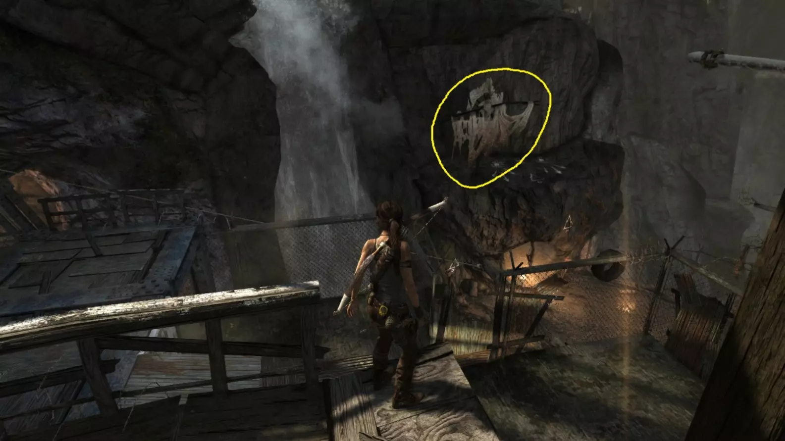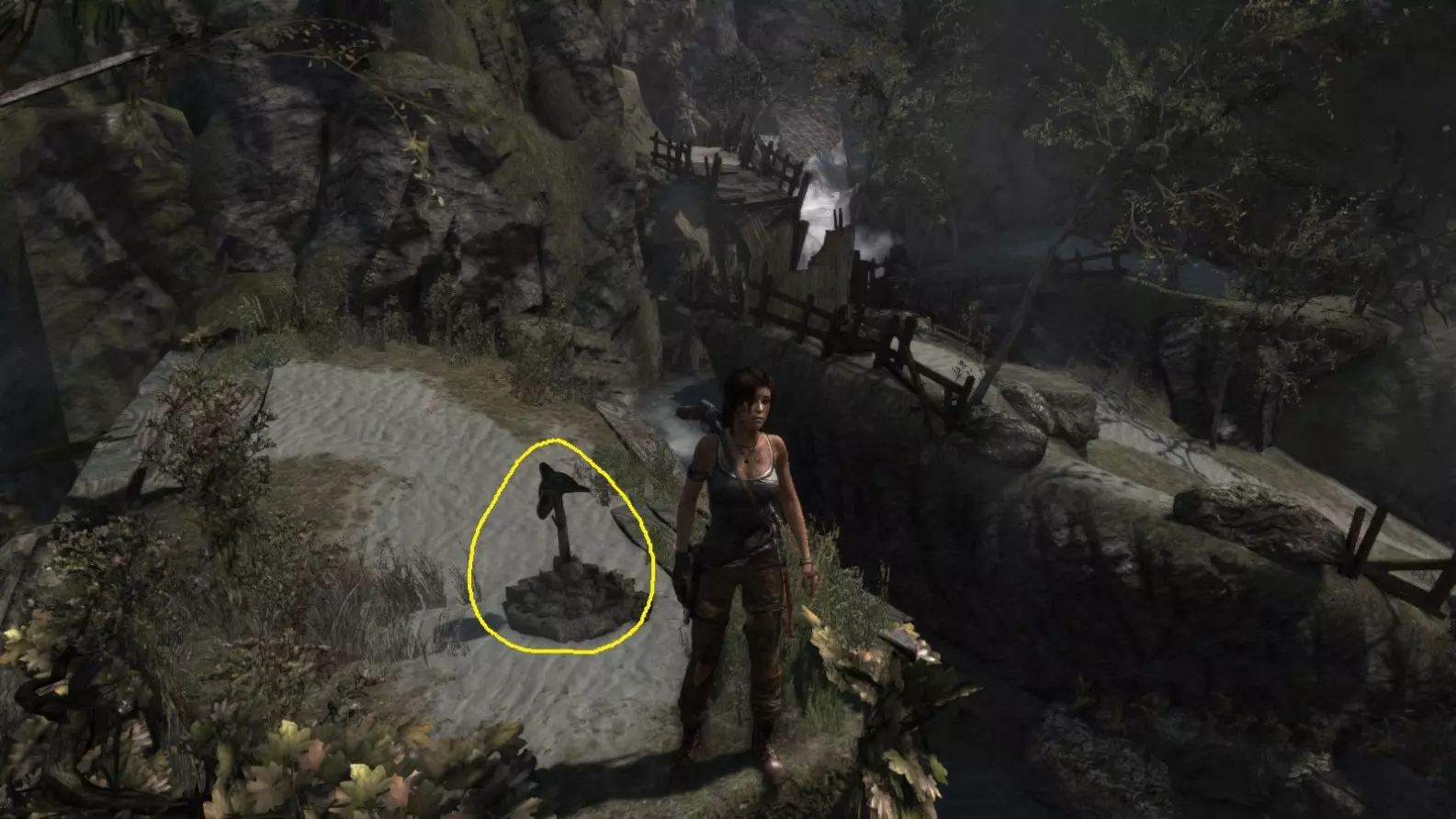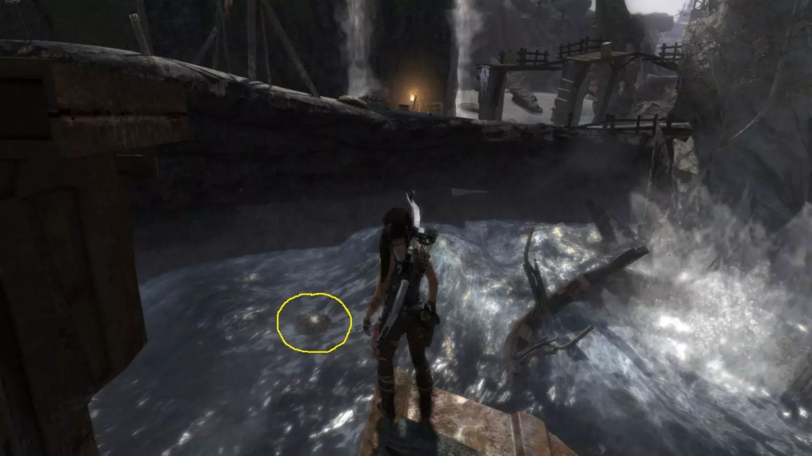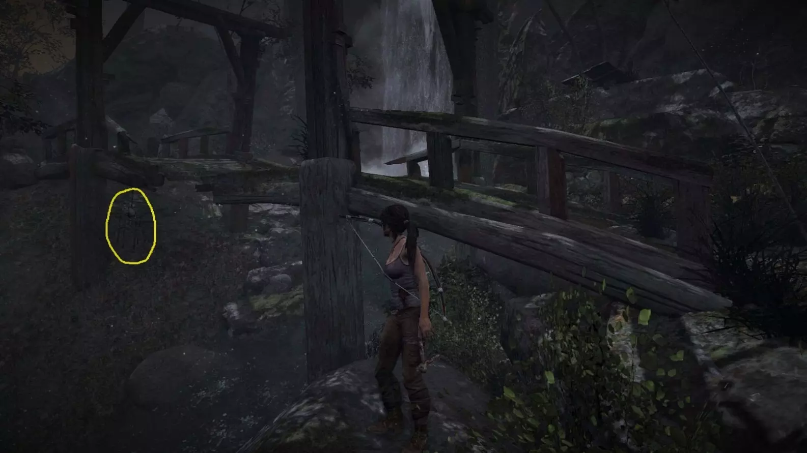 在劳拉被狼袭击的那座破损木桥(瀑布附近)。截图B - Ghost Hunter 6/10