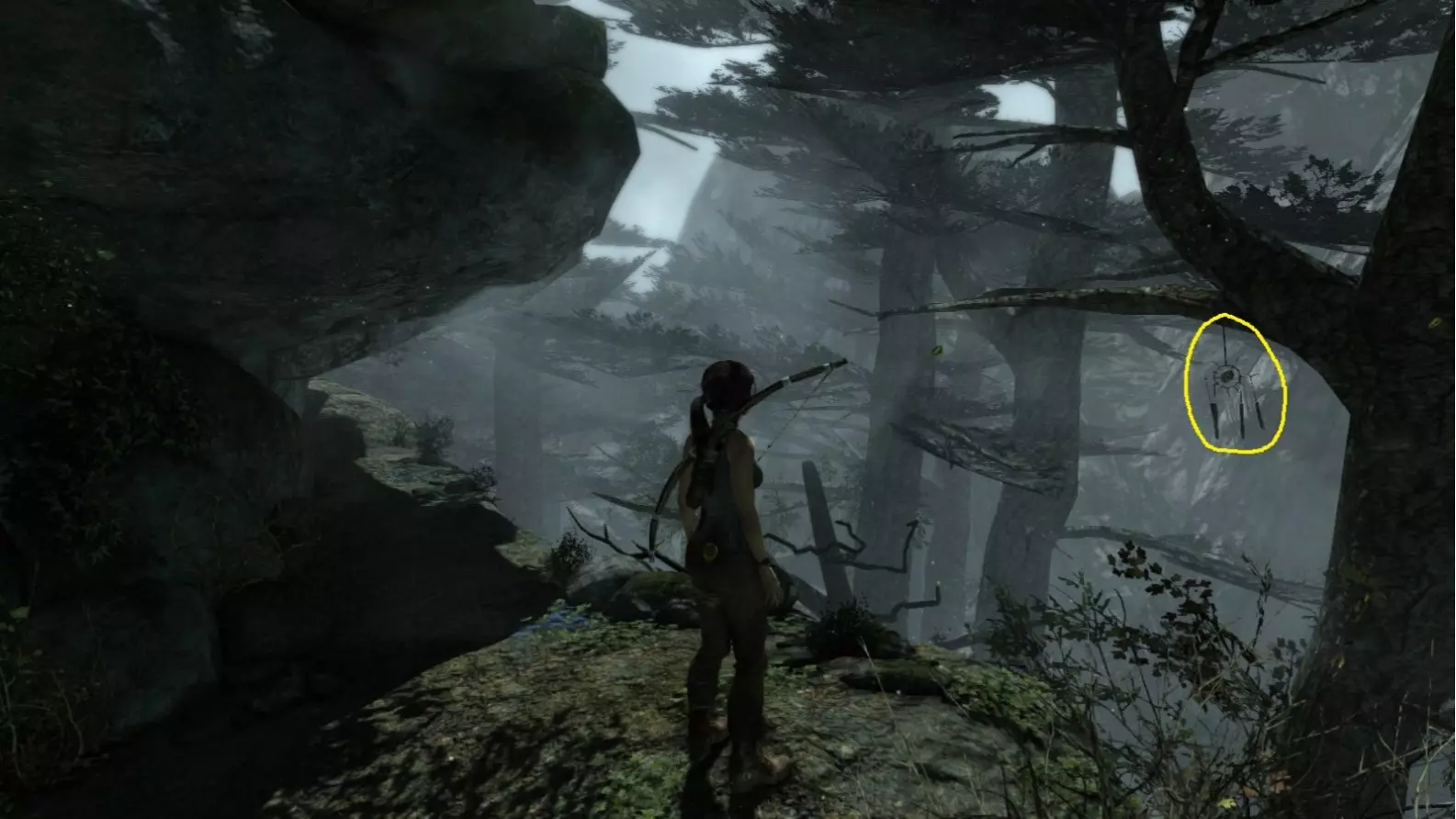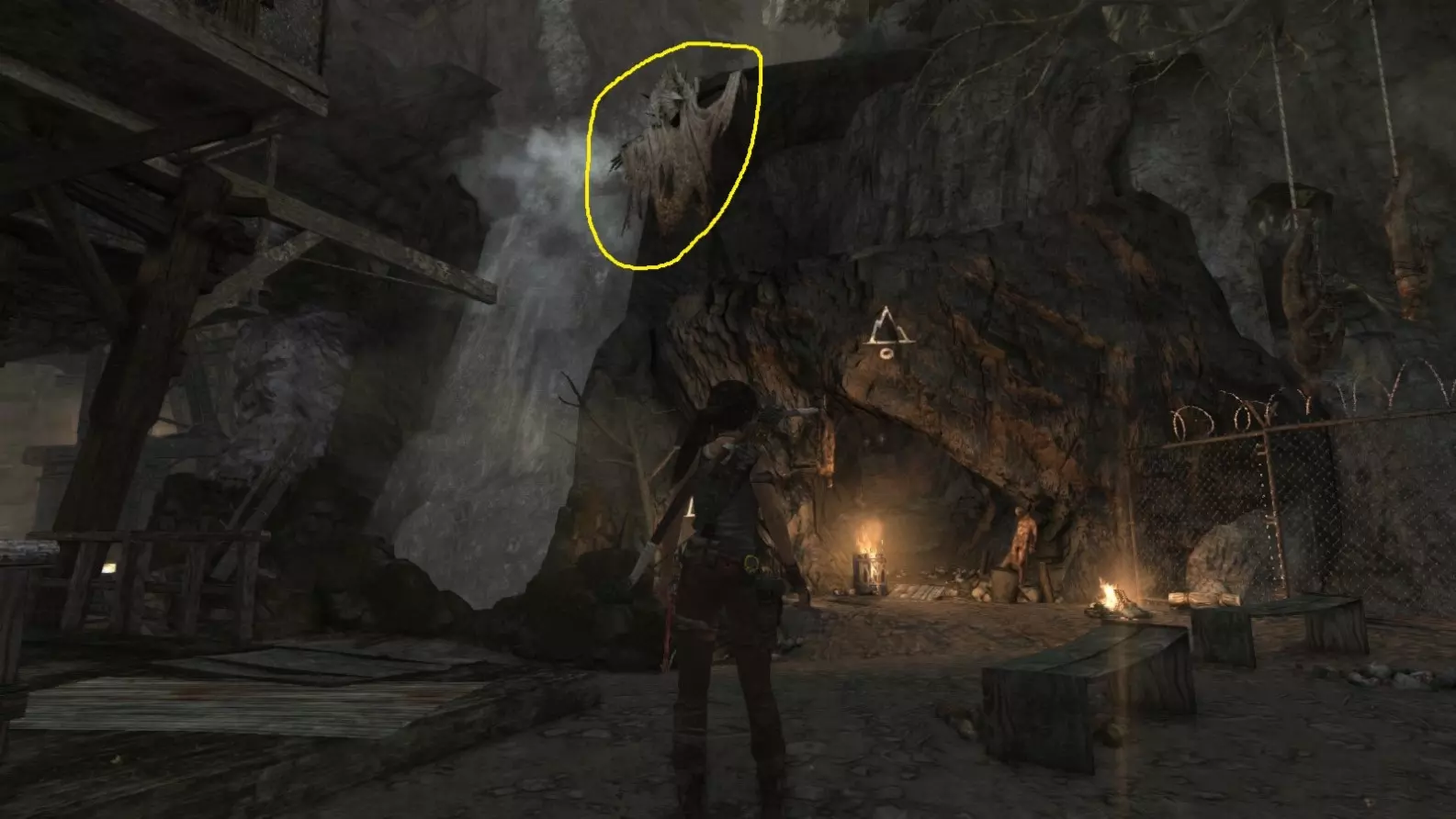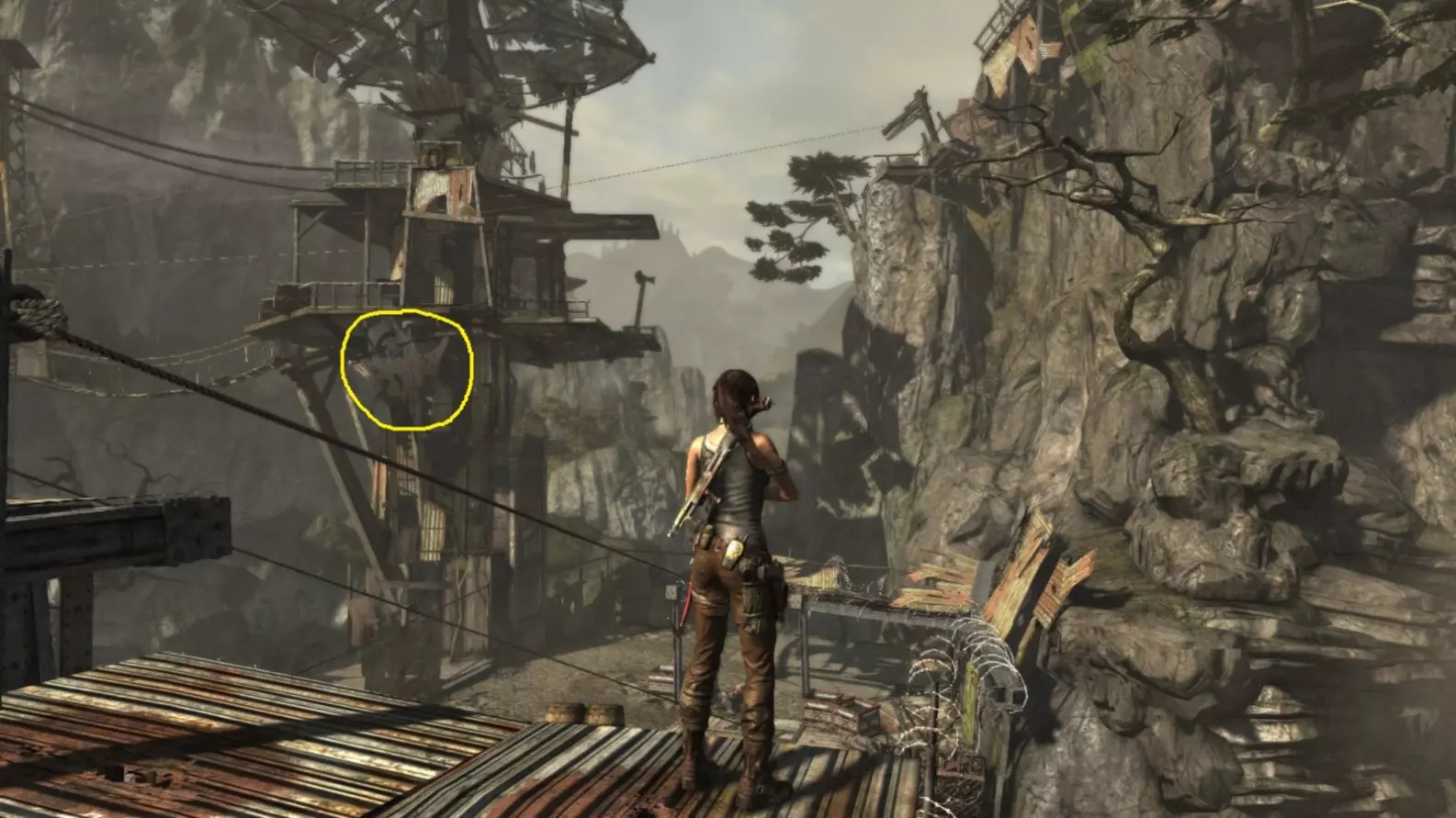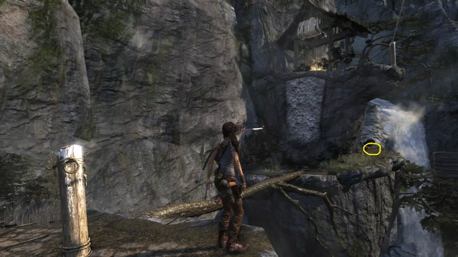 从雕像视角 6/10。上一张截图中劳拉站立的杆子已用白色圆圈标出。