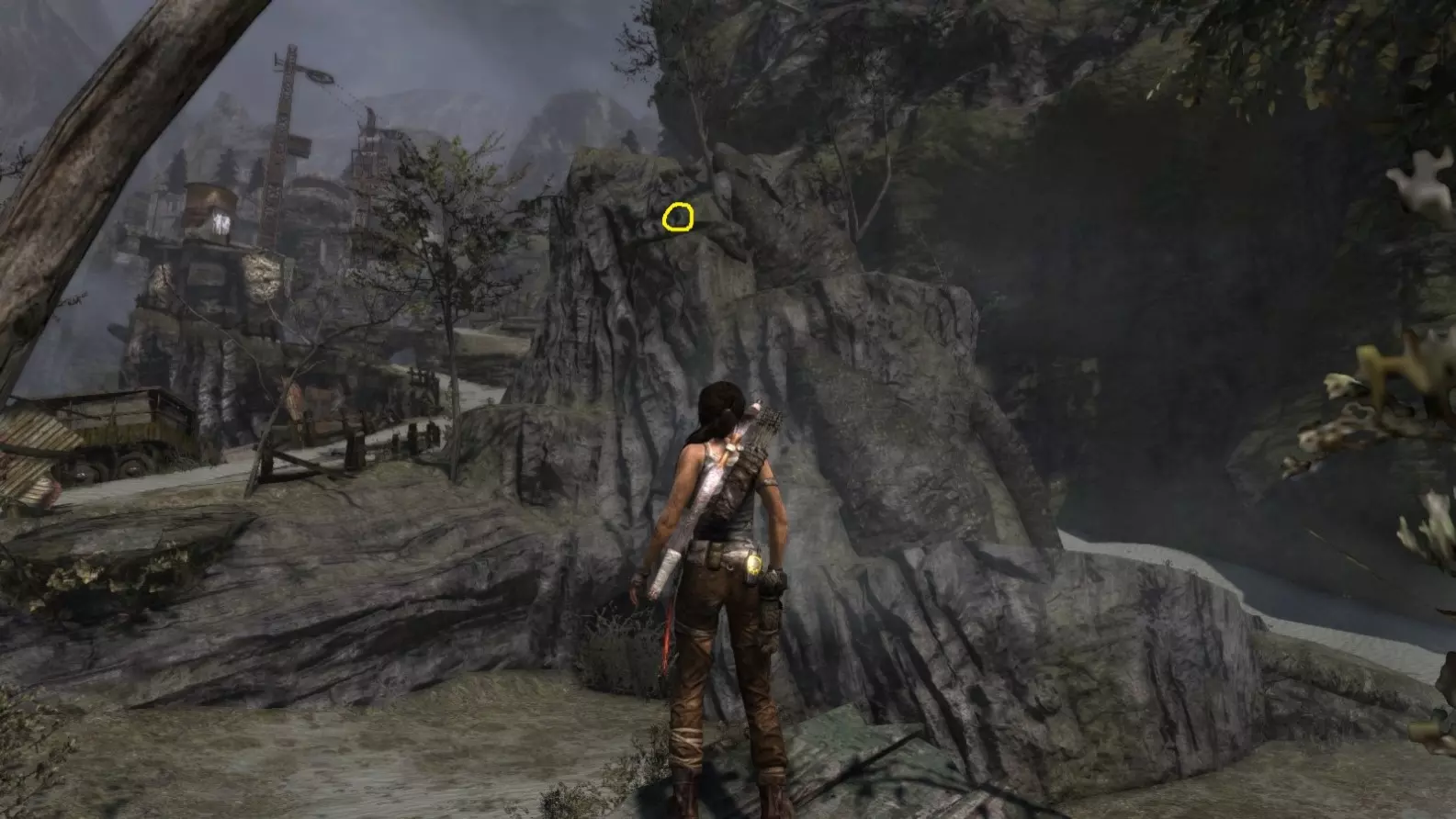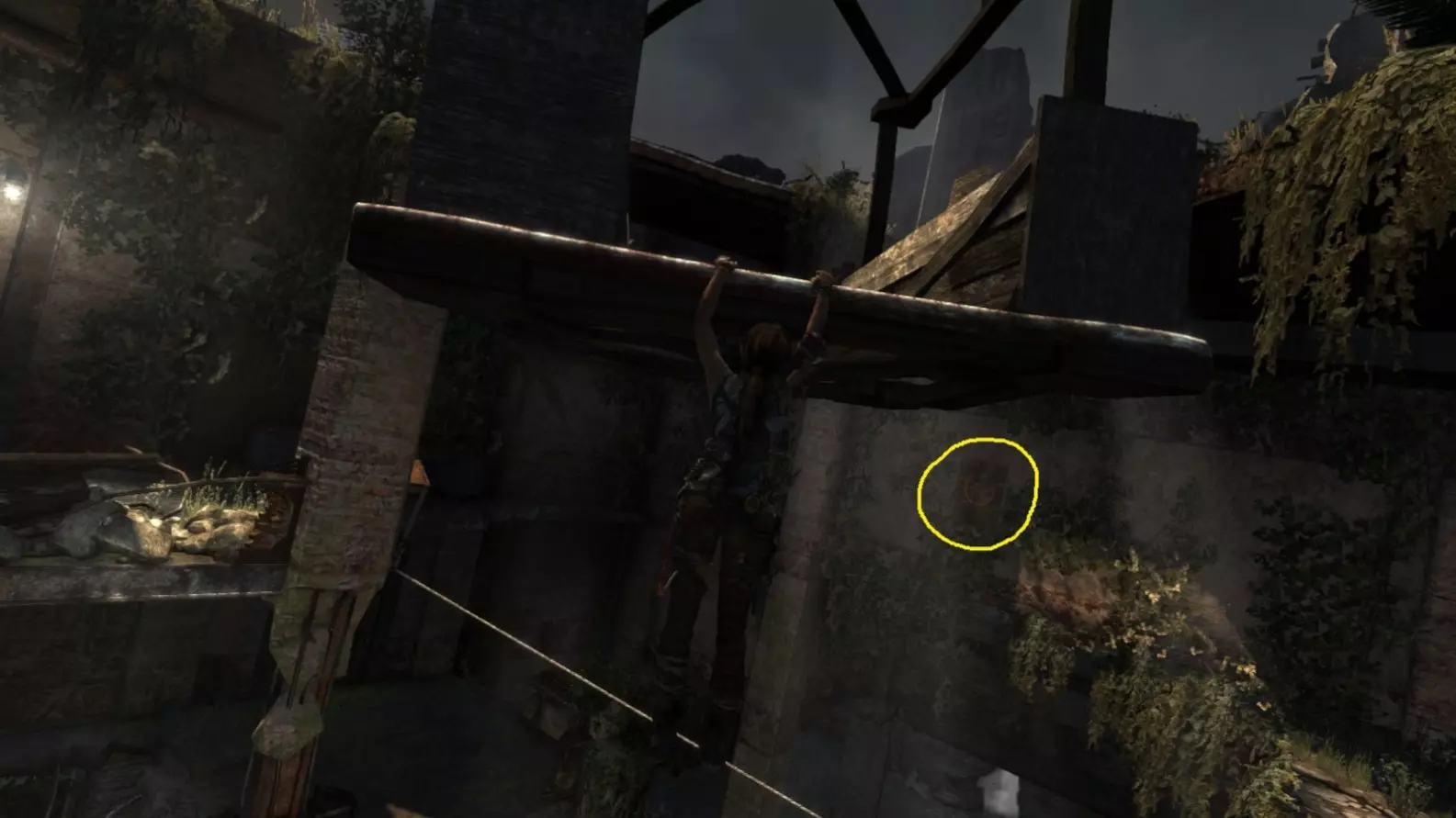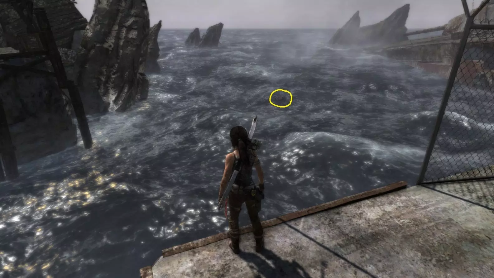 从雕像视角 6/10。上一张截图中劳拉站立的杆子已用白色圆圈标出。
