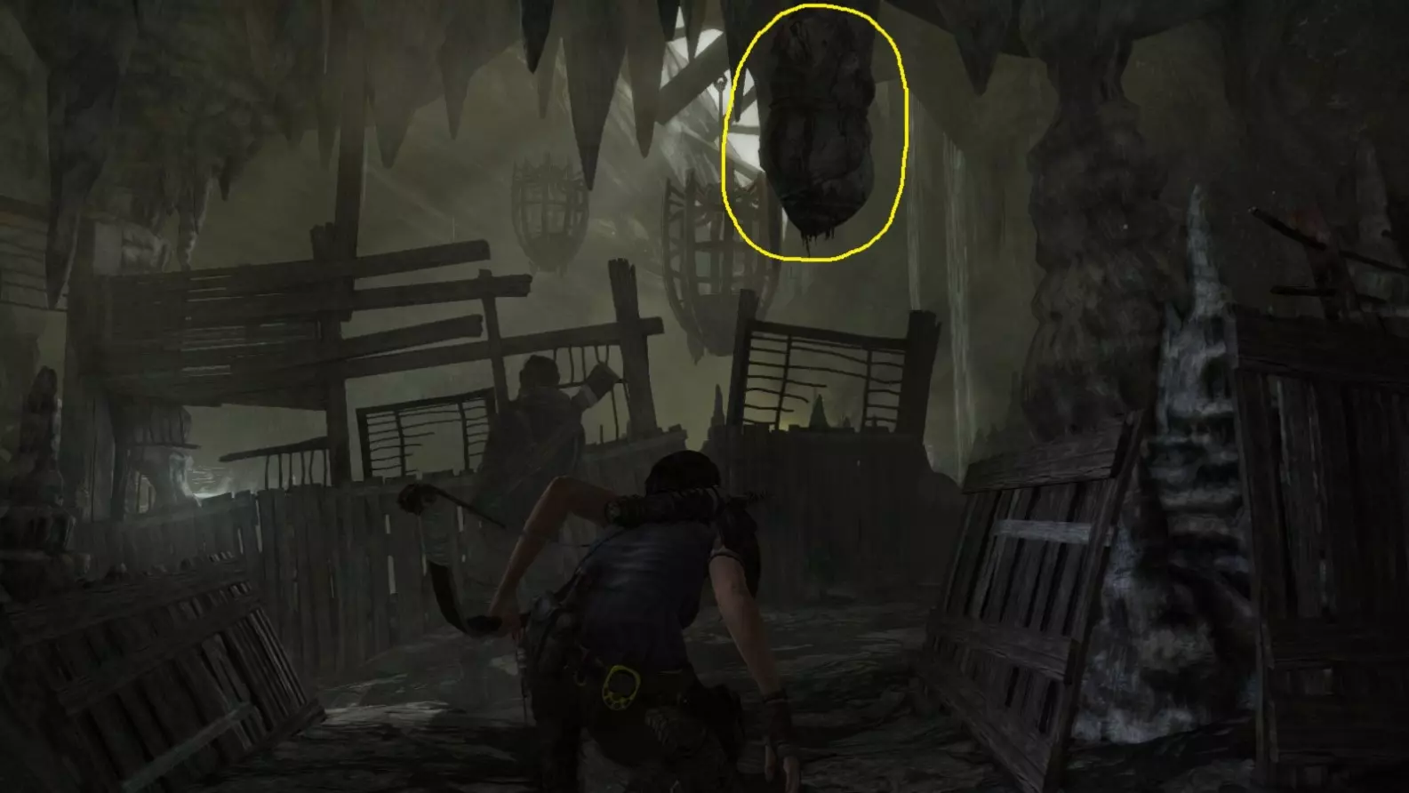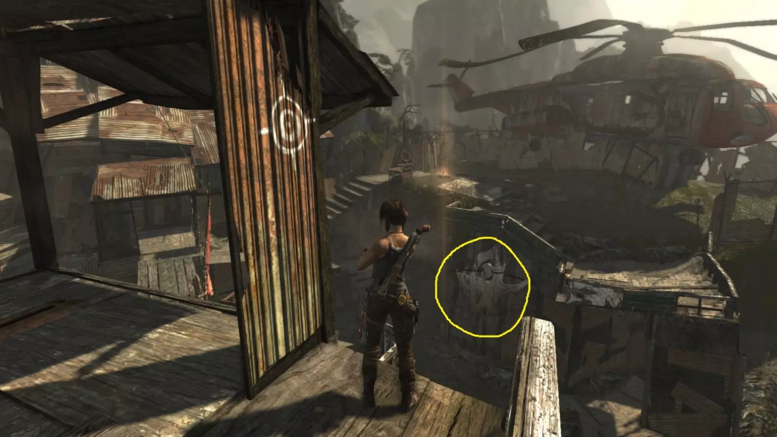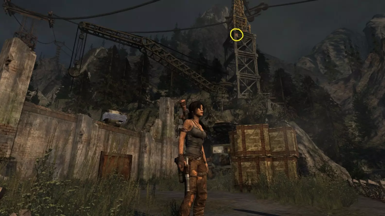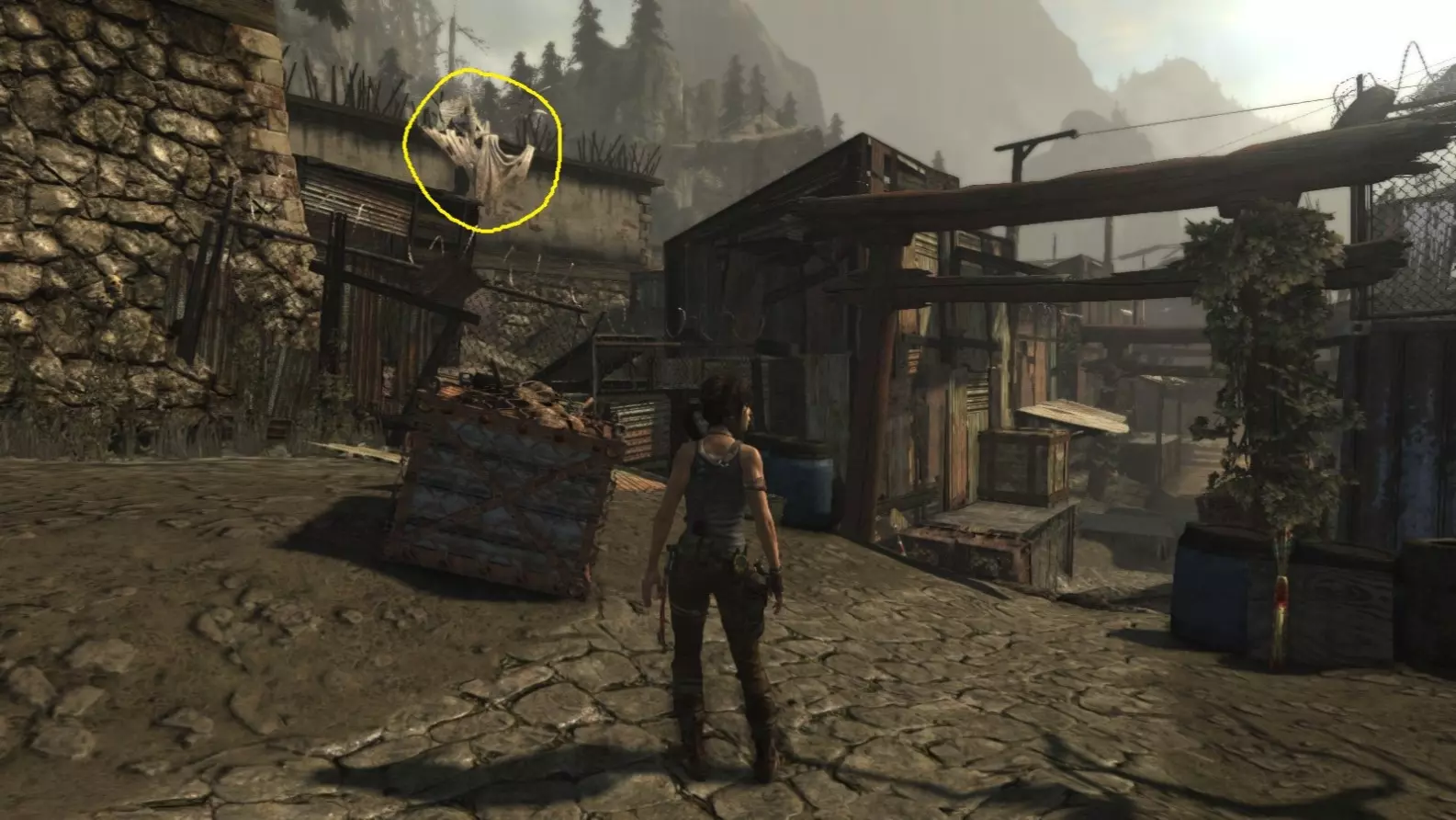 从雕像视角 6/10。上一张截图中劳拉站立的杆子已用白色圆圈标出。