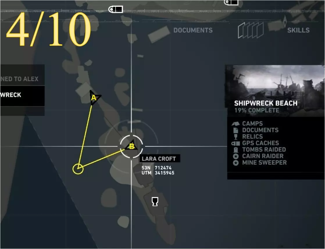 劳拉在地图A点的视角。使用生存本能模式(Q键)可以更清晰地看到目标。 截图B - 扫雷4/10