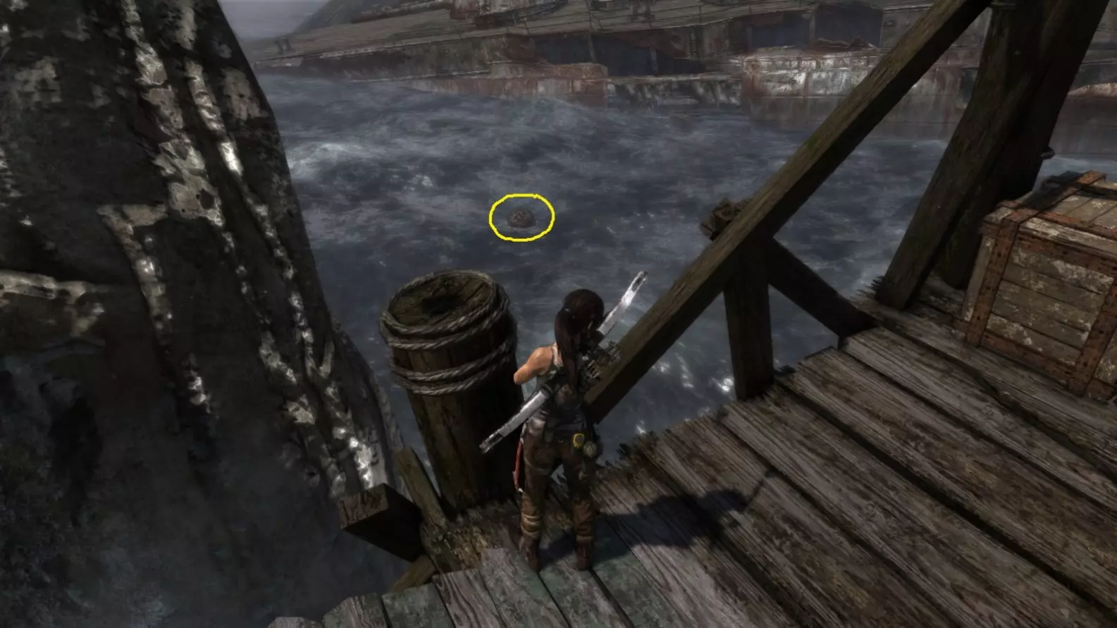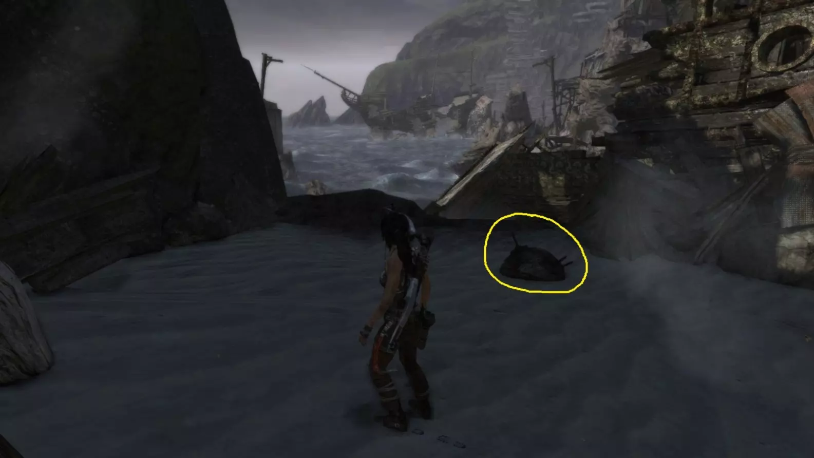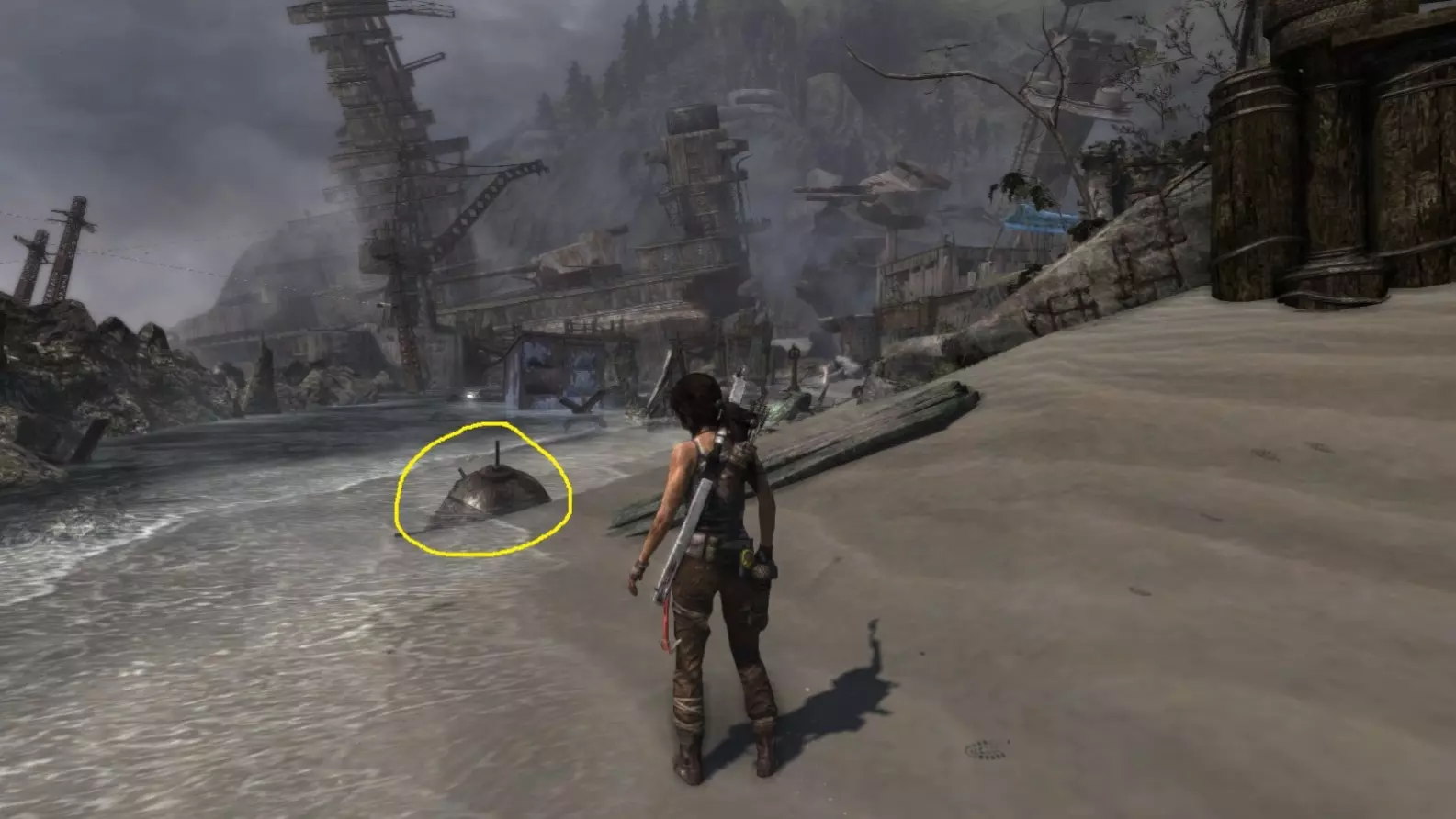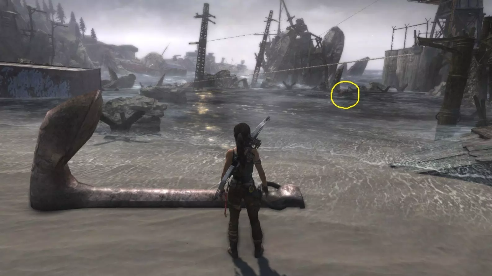 位于水中。劳拉可以直接蹚水靠近,但务必从远处射击。 截图B - 扫雷器 3/10