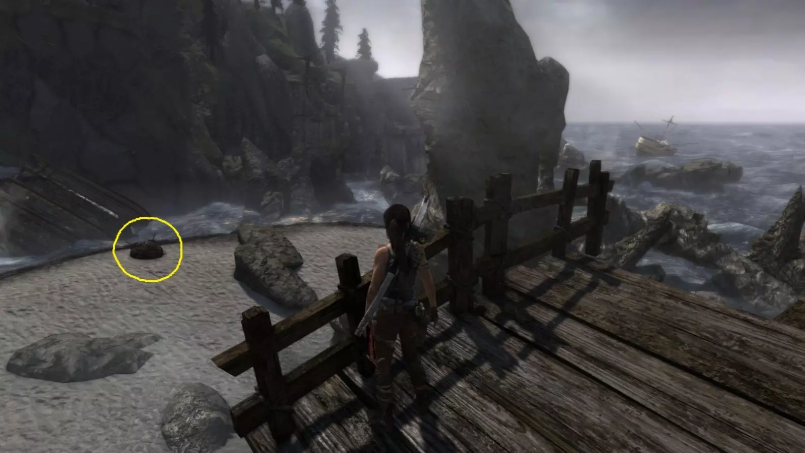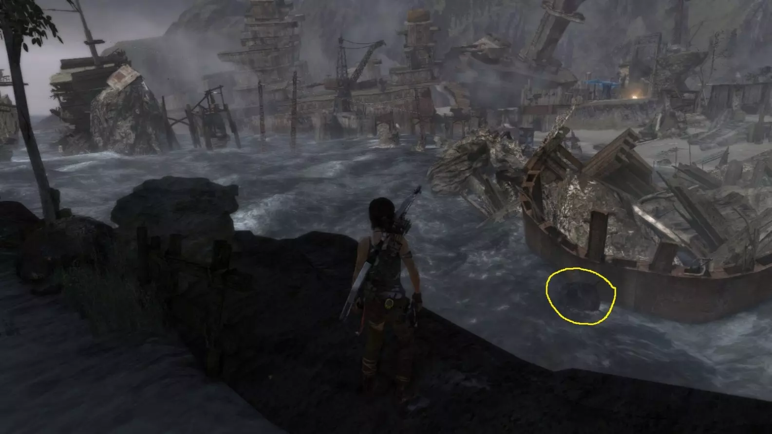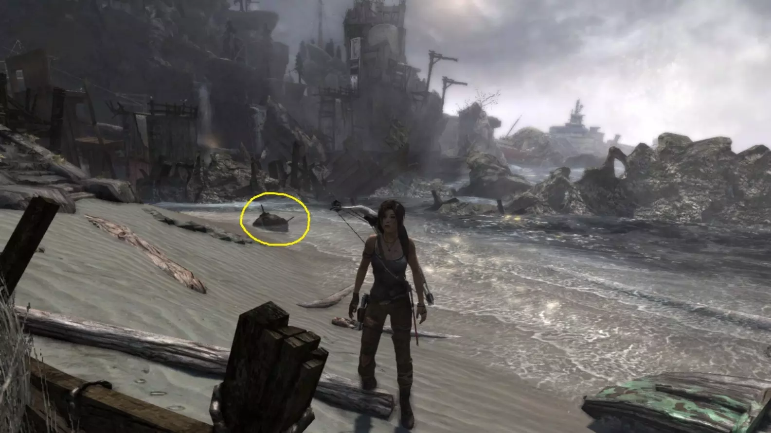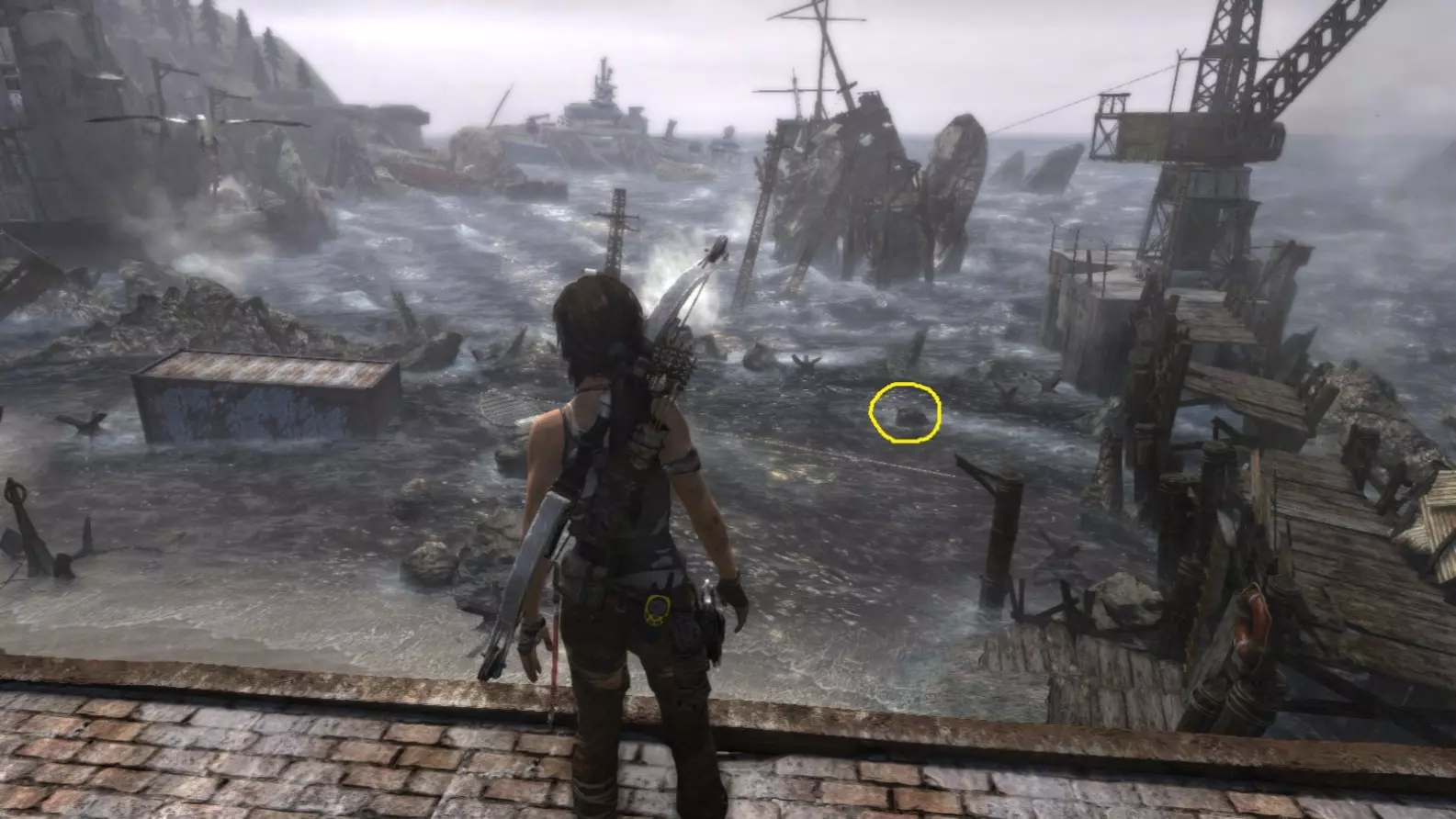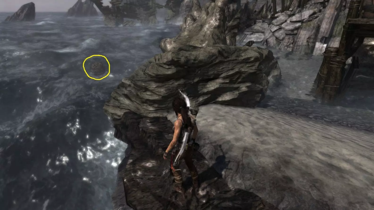 位于水中。劳拉可以直接蹚水靠近,但务必从远处射击。 截图B - 扫雷器 3/10
