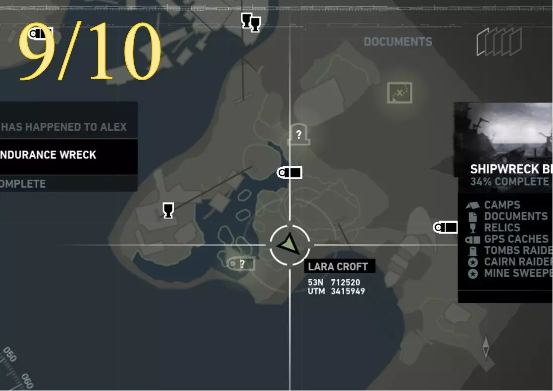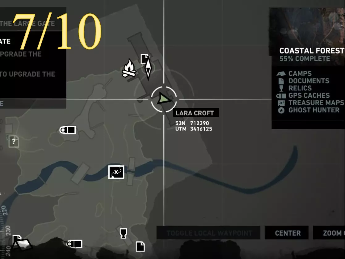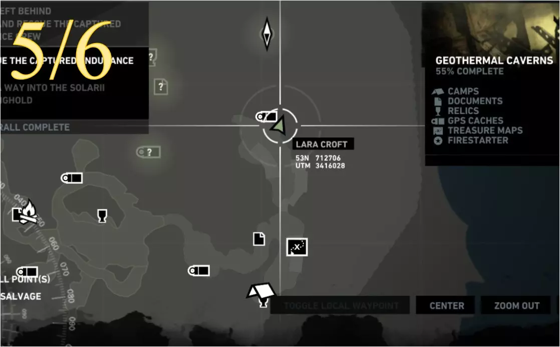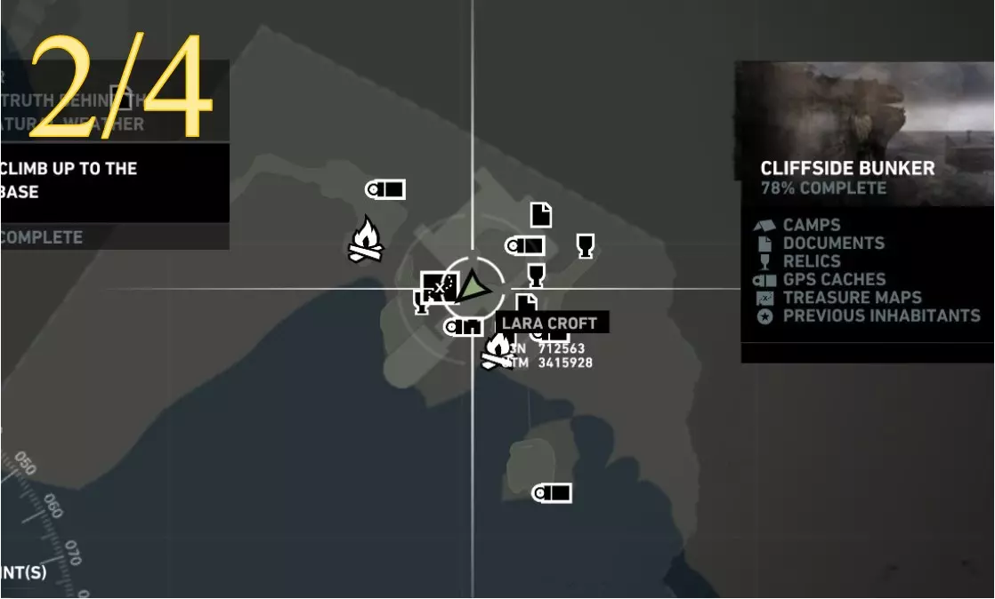 从更近处观察。 ***扫雷结束*** 挑战12:前任居住者 重要提示: 该区域没有基地(快速旅行)营地,只有日间营地。因此,若要从远处返回此处,劳拉需要快速旅行至相邻区域的基地营地:沉船海滩的幸存者营地。从那里她可以向东行进,返回悬崖地堡。