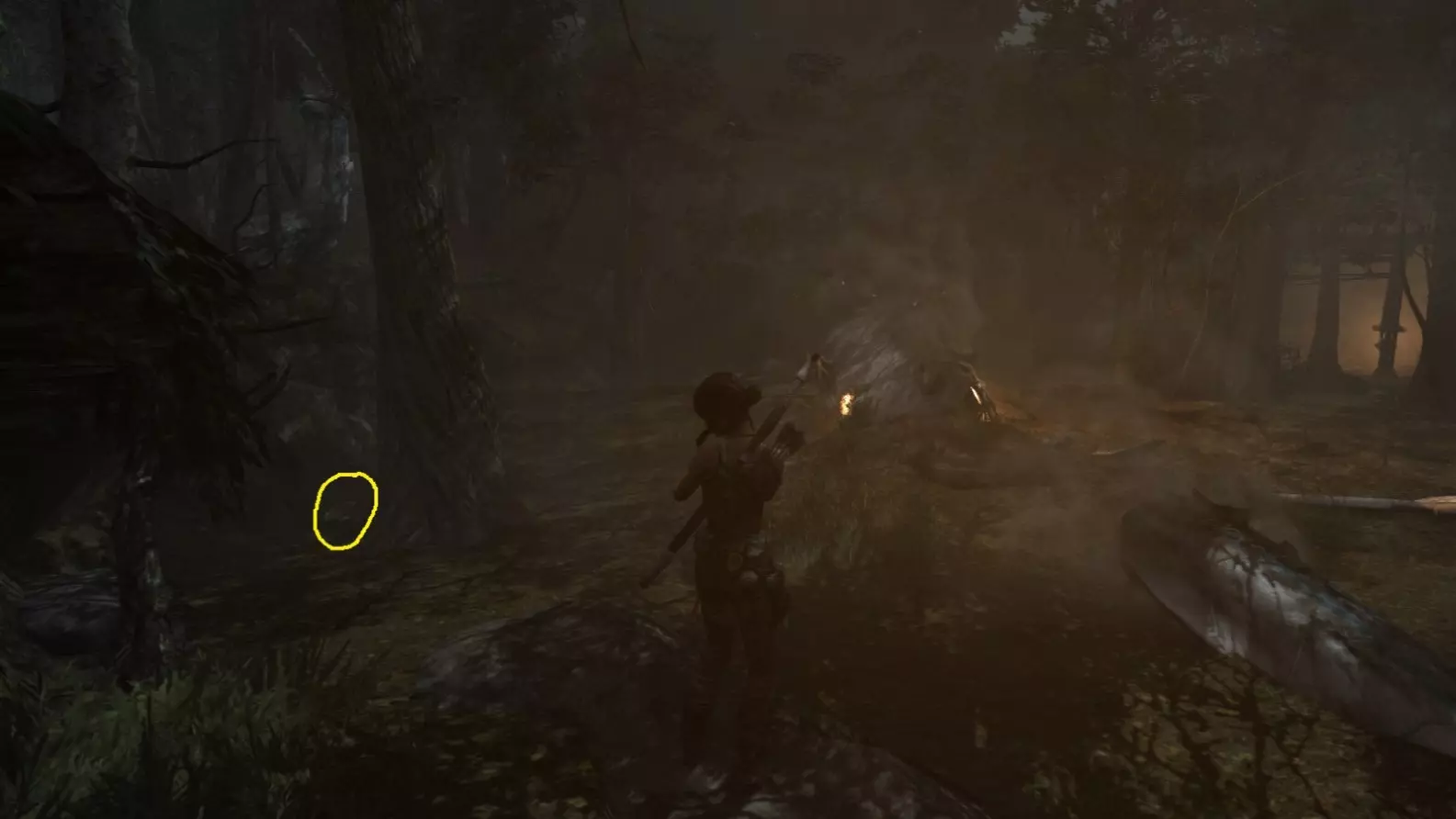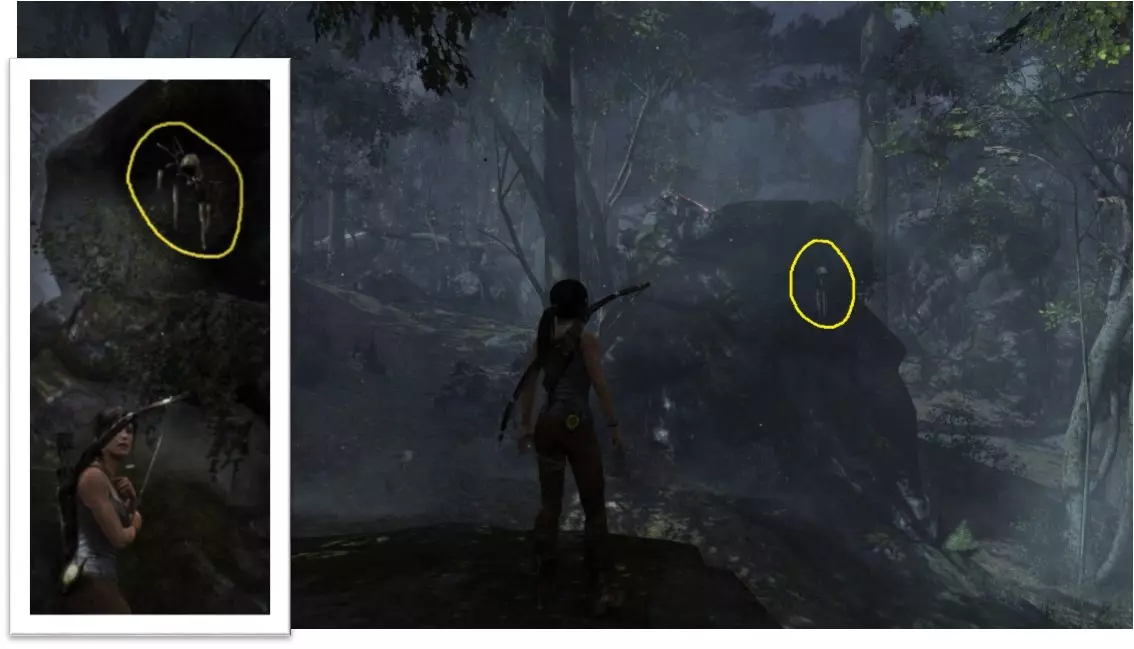 这是受伤的劳拉找到第一个营地之前的场景。她没有武器,暂时无法摧毁它。 截图B - Ghost Hunter 1/10