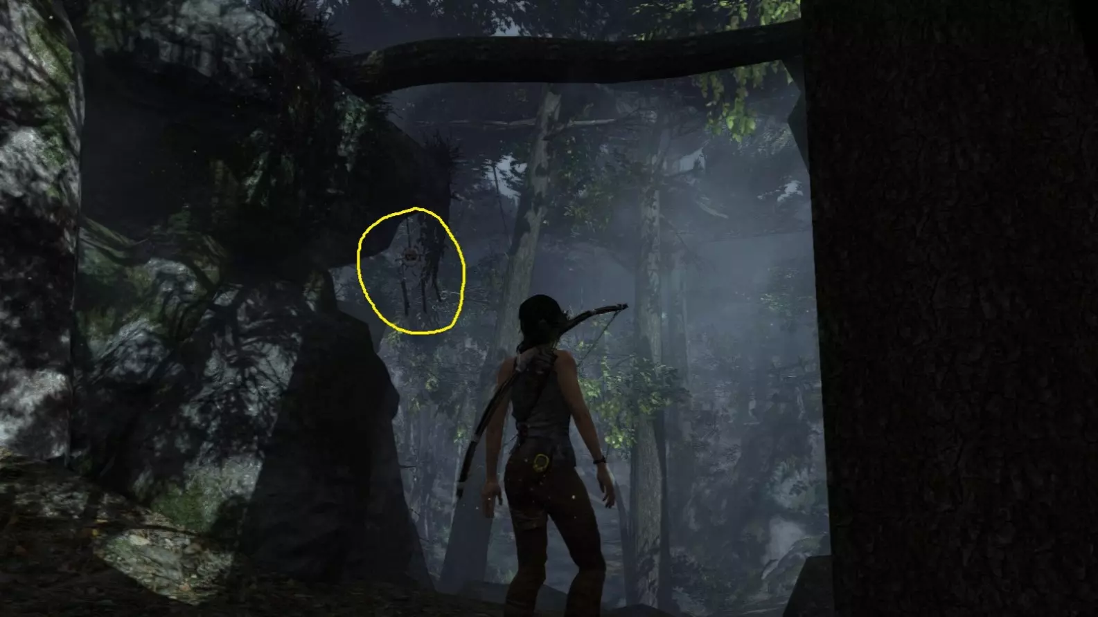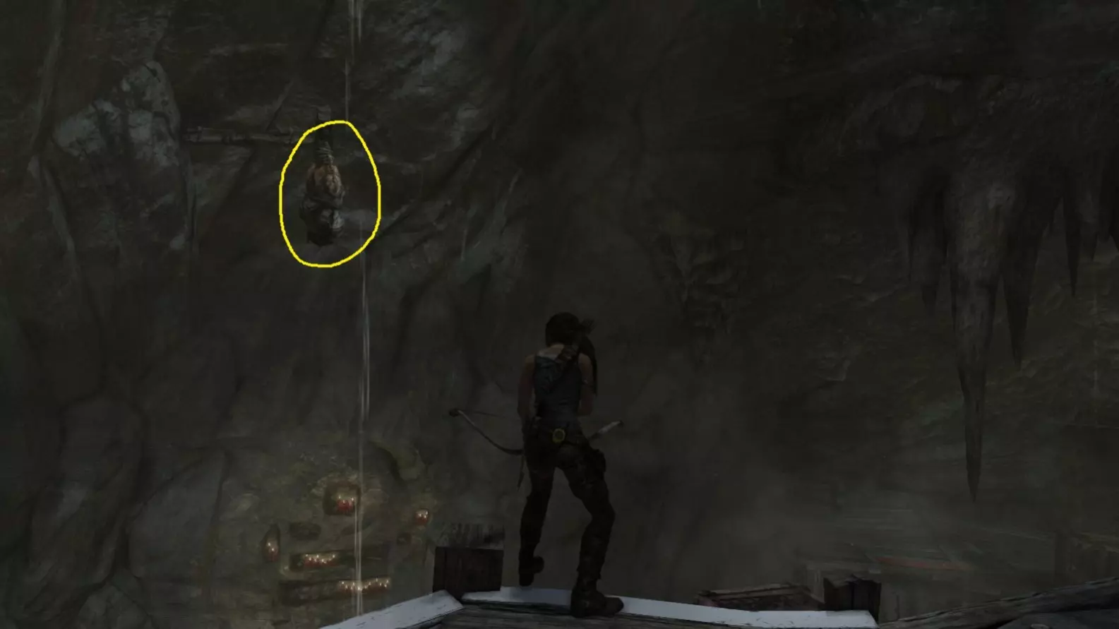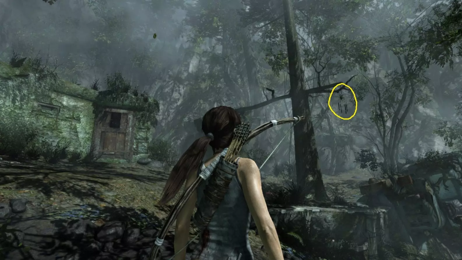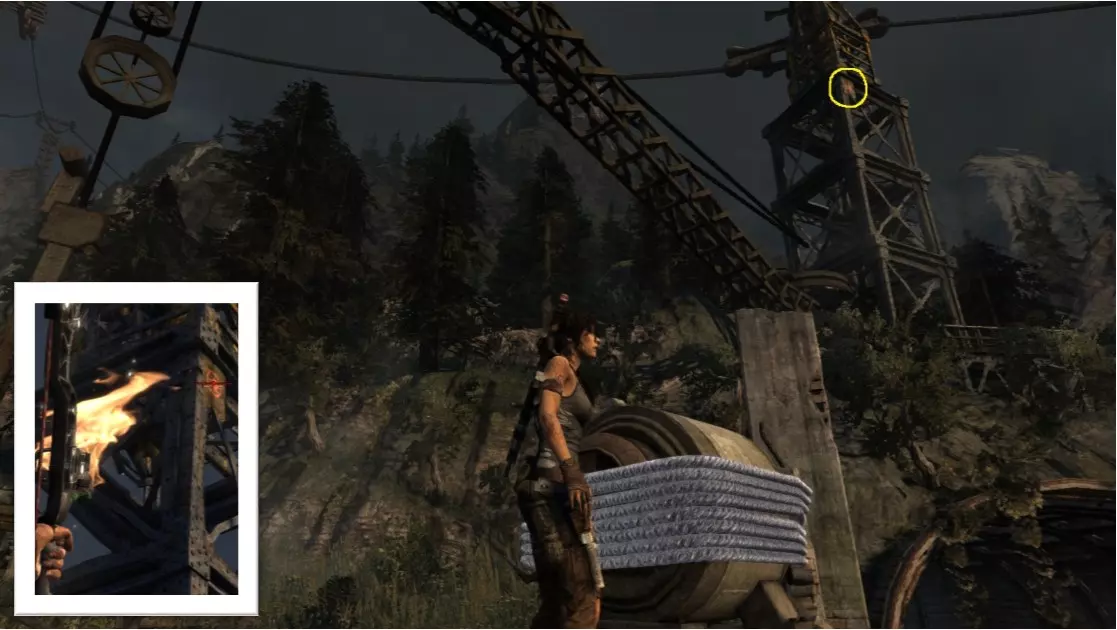 同一个地点,但在劳拉找到弓箭并返回之后。用弓箭射击它。