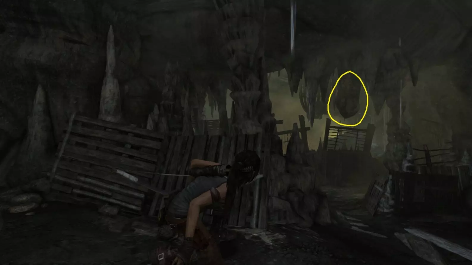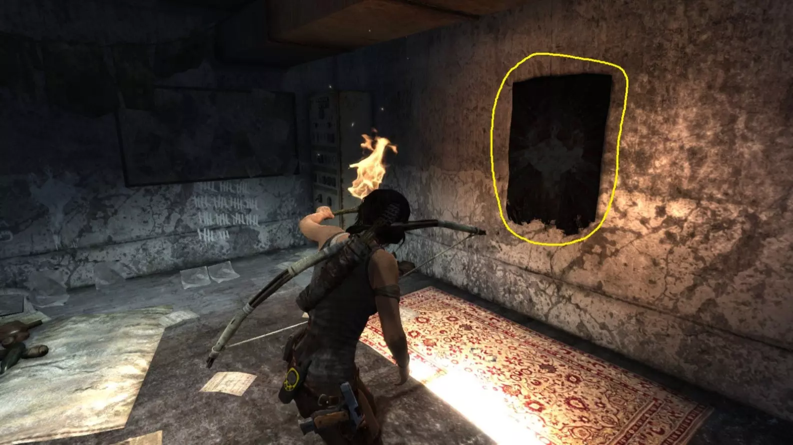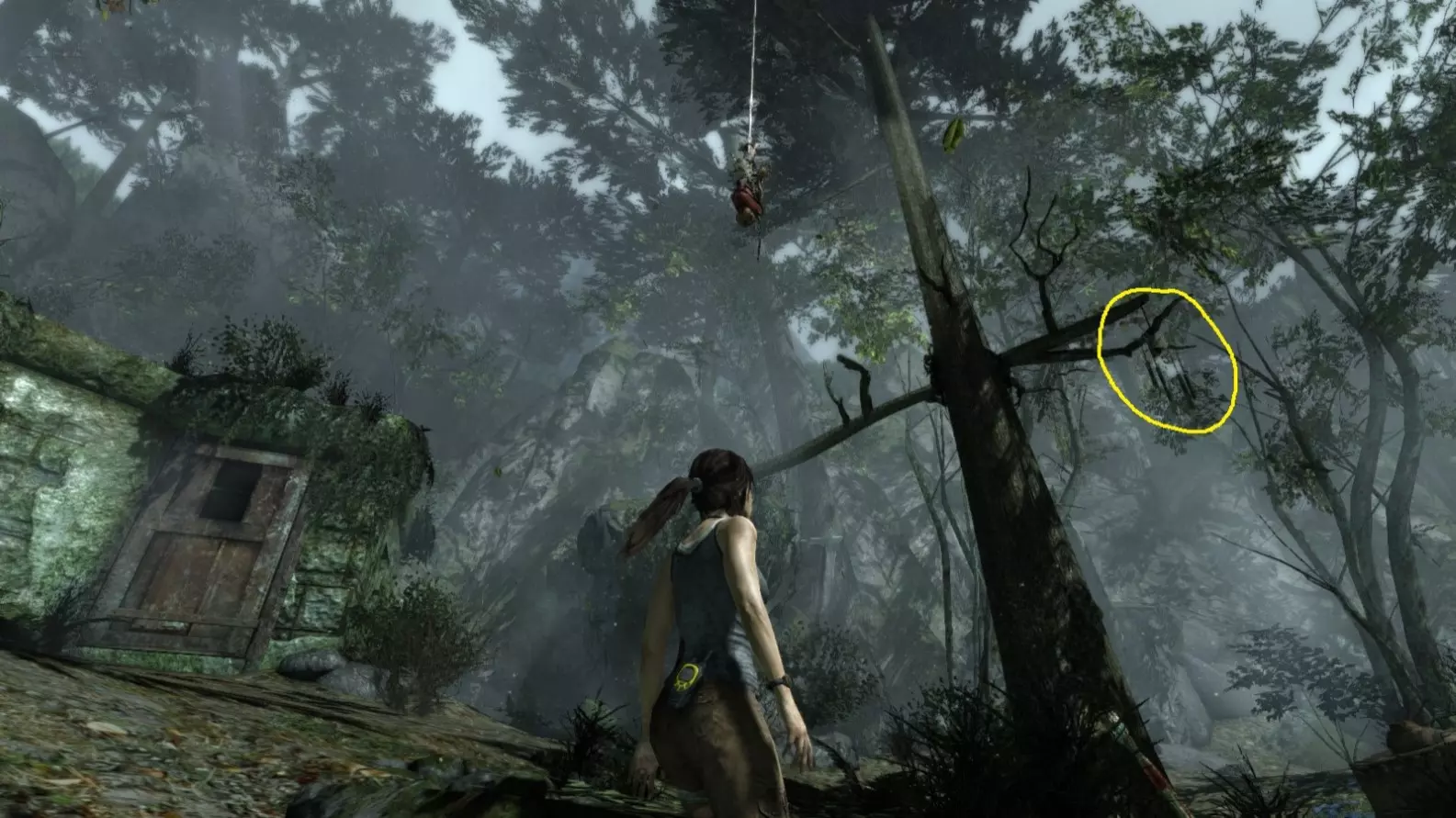 同一个地点,但在劳拉找到弓箭并返回之后。用弓箭射击它。