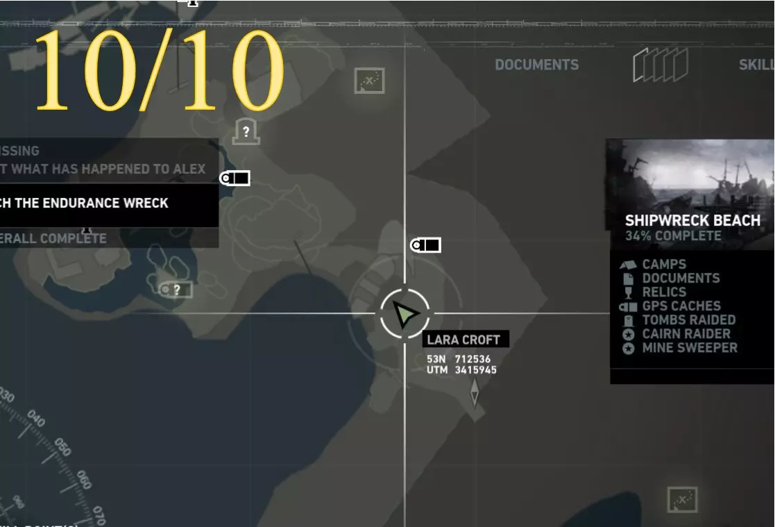 扫雷舰-10号目标 区域:沉船海滩 最近的基地营:幸存者营地 寻找并摧毁(射击) 地图位置
