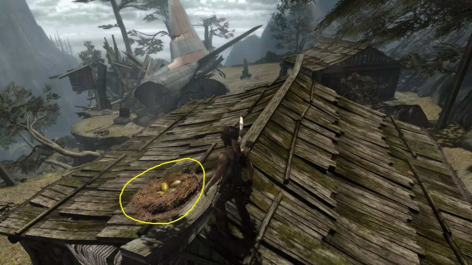 劳拉站在【Egg Poacher 5】所在的屋顶上。关卡的这个较高区域在关卡开始时无法进入,但之后的飞机失事改变了这一情况。 截图B - 照明 10/10