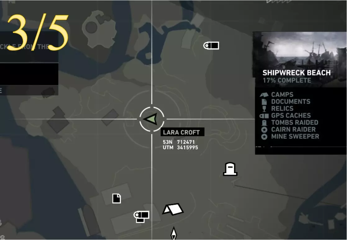 凯恩掠夺者 - 目标3 区域:沉船海滩 最近的营地:幸存者营地 寻找并调查 地图位置