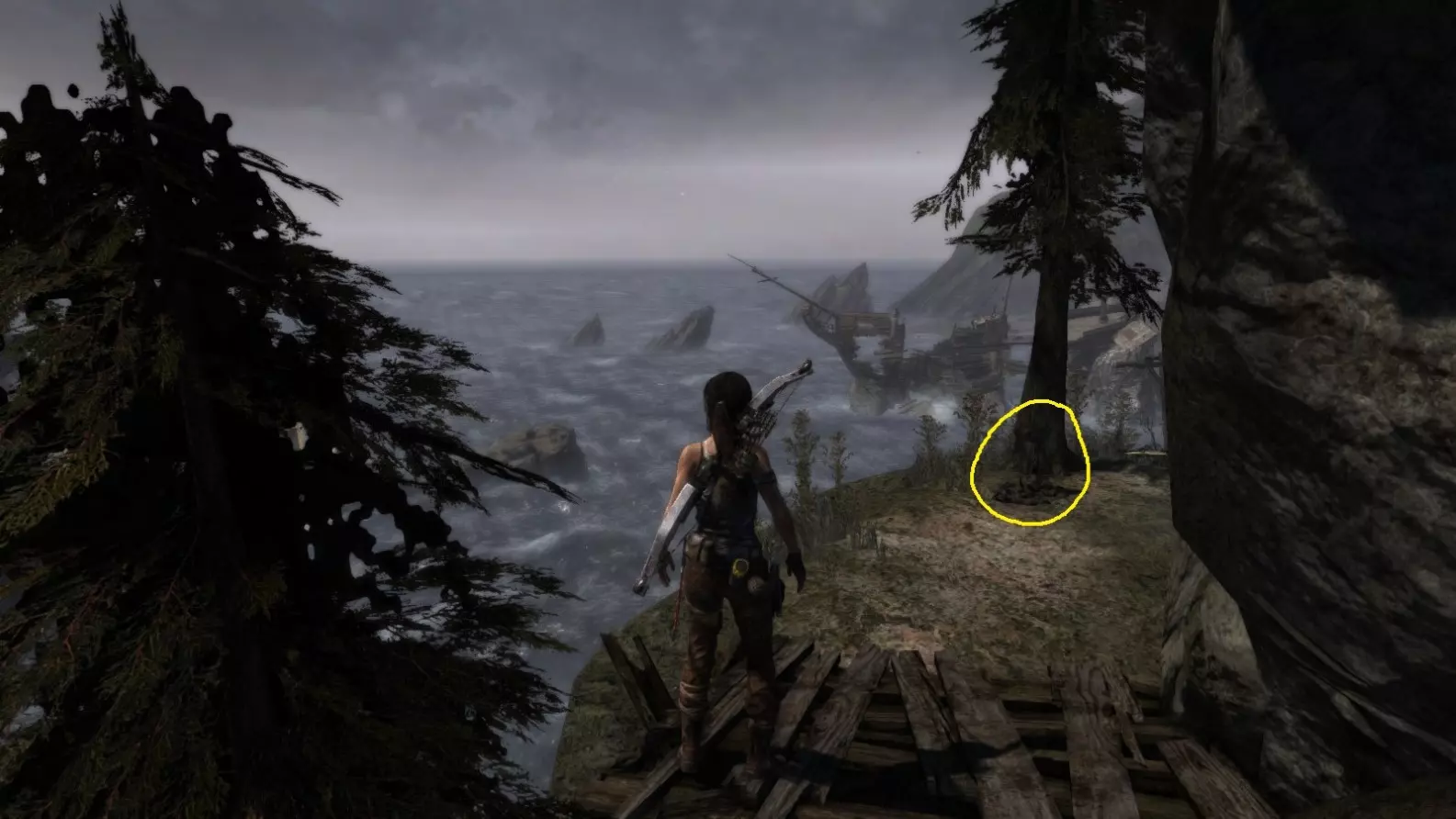 位于一棵树附近的悬崖上,俯瞰大海。截图B - 凯恩掠夺者 5/5