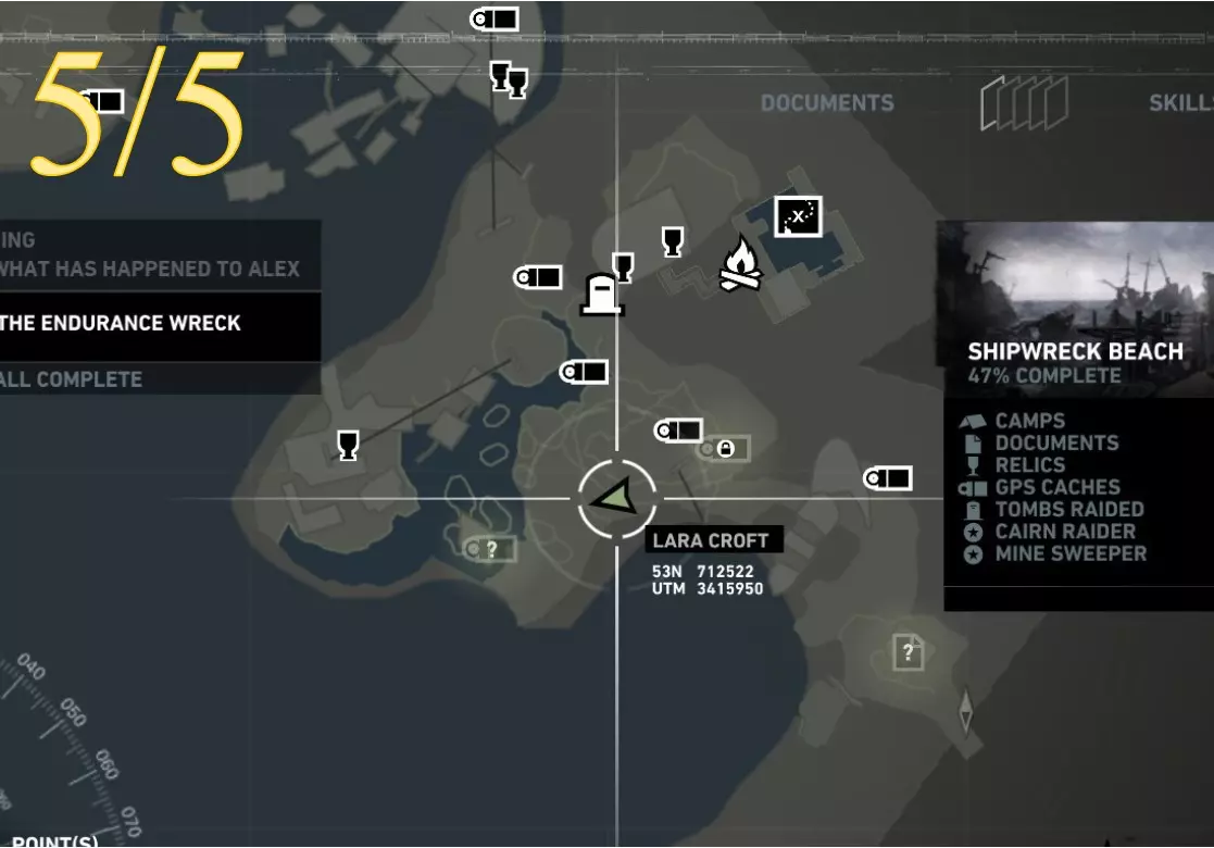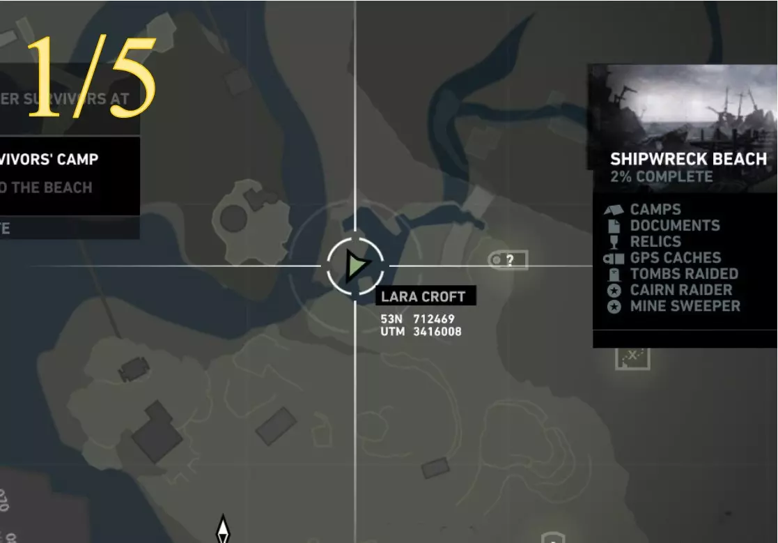 凯恩掠夺者 - 目标5 区域:沉船海滩 最近的营地:幸存者营地 寻找并调查 地图位置