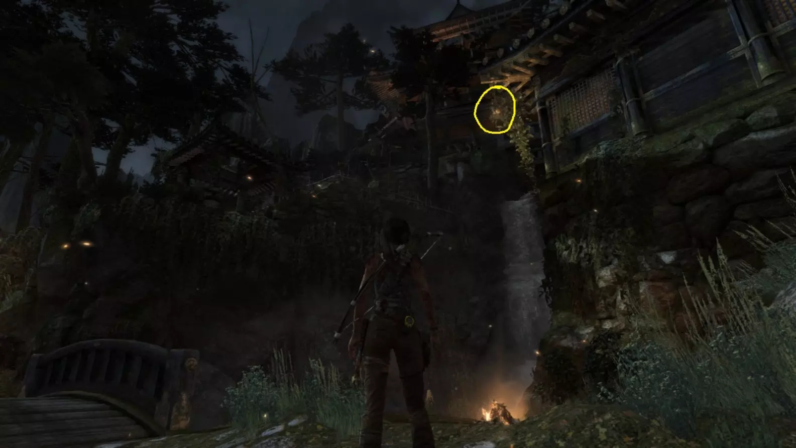 这个位置高得多。位于较大建筑旁边,在瀑布旁的悬崖上。 截图B - 照明 2/10