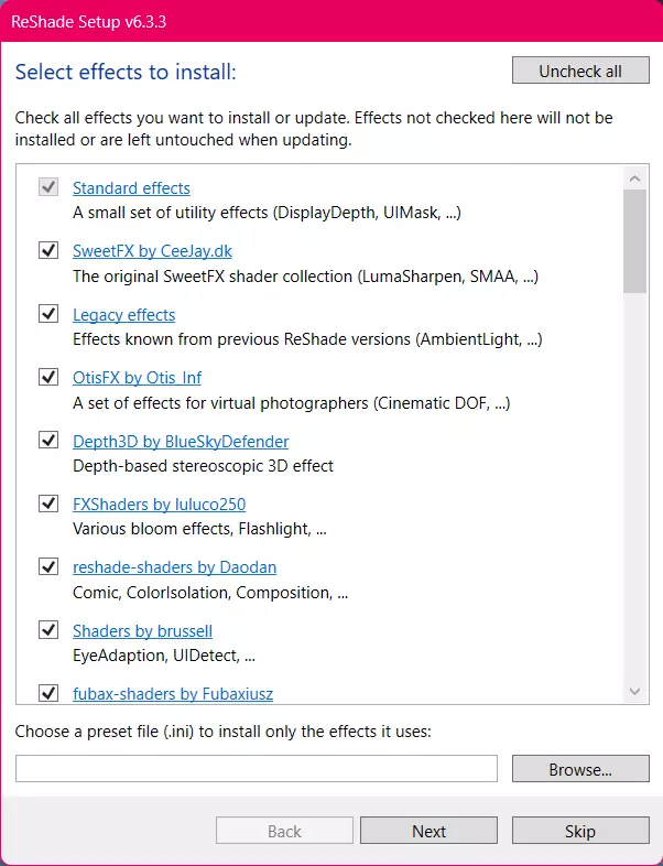 3.2 当出现提示时跳过预设选择,并勾选所有效果包。